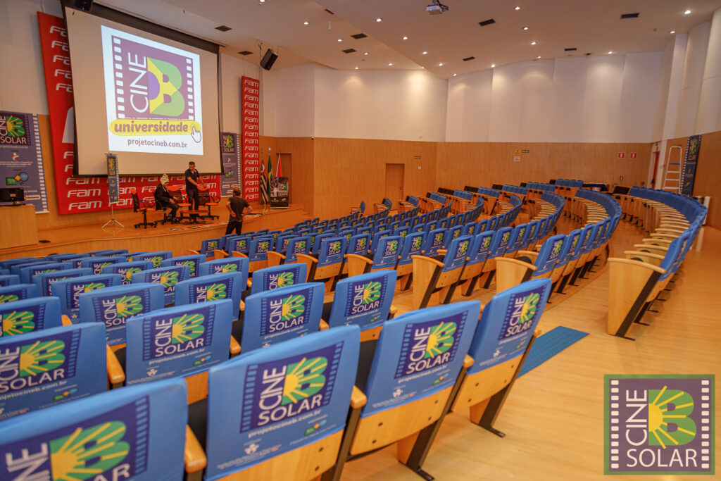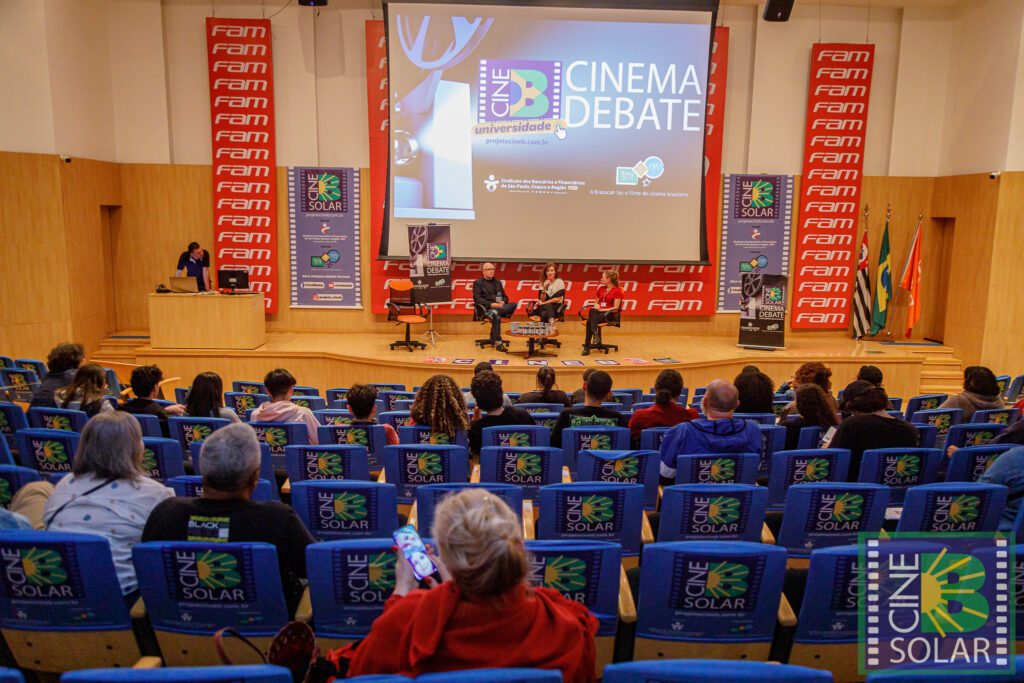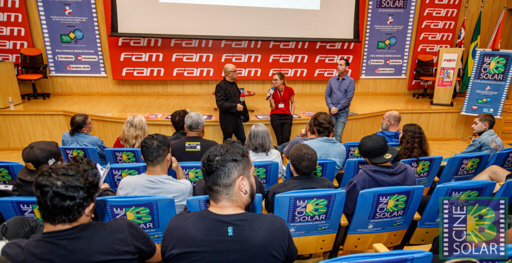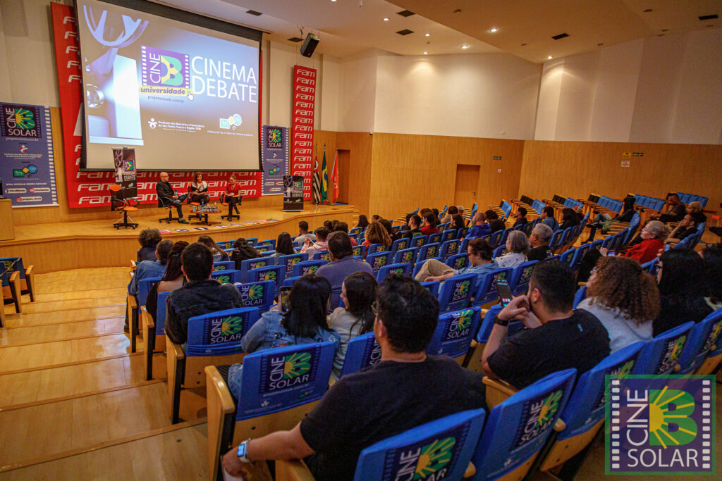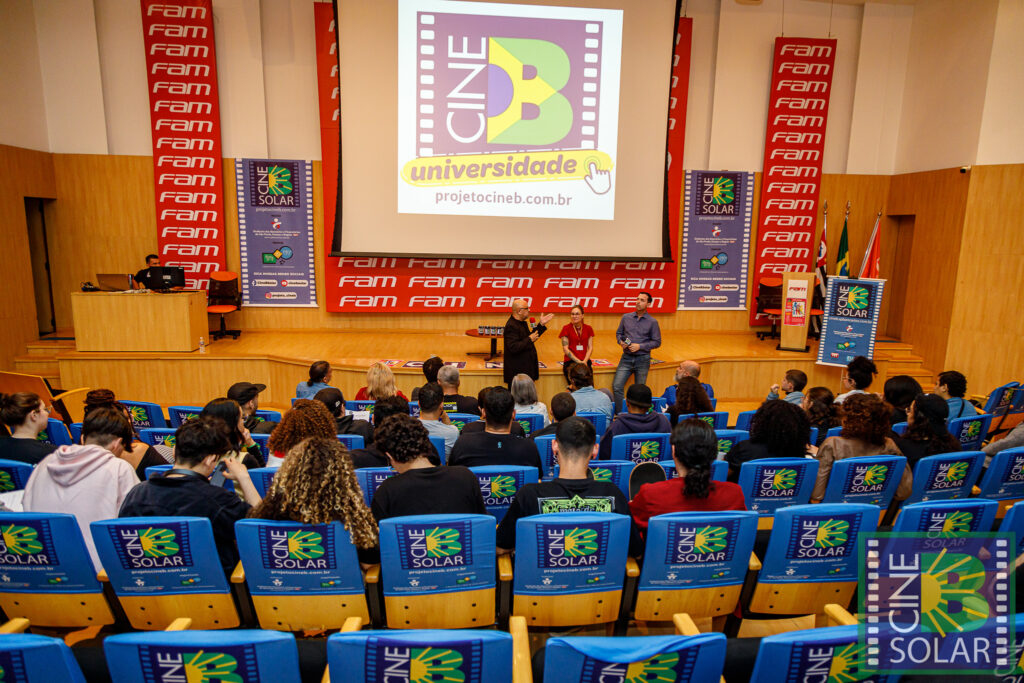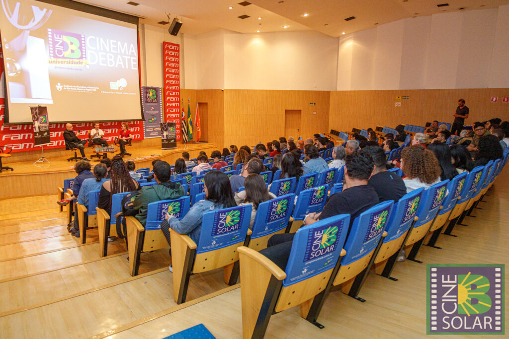O CineB Solar, projeto idealizado pelo Sindicato dos Bancários de São Paulo, Osasco e região, e produzido pela Brazucah, exibiu na noite do dia 27 de abril o documentário na programação da 7a semana de Comunicação, Artes e Design do Centro Universitário das Américas – FAM, e promoveu encontro entre os alunos e a produtora executiva do filme, Diana Maia. O filme foi exibido no moderno auditório do campi da Augusta, com a presença de mais de 70 estudantes.