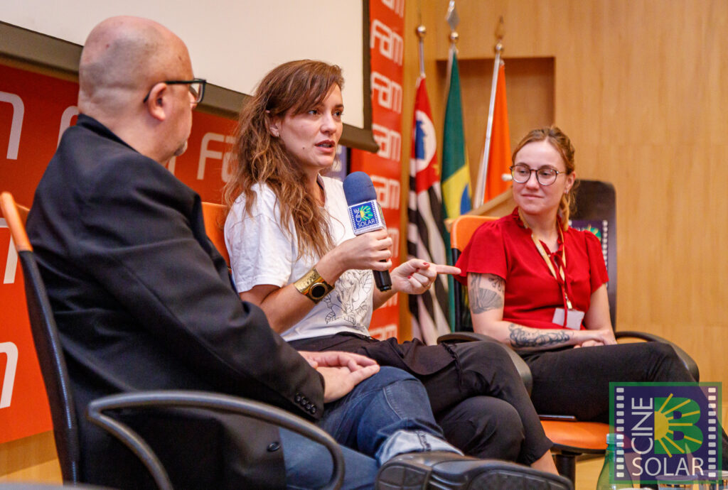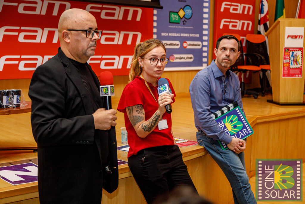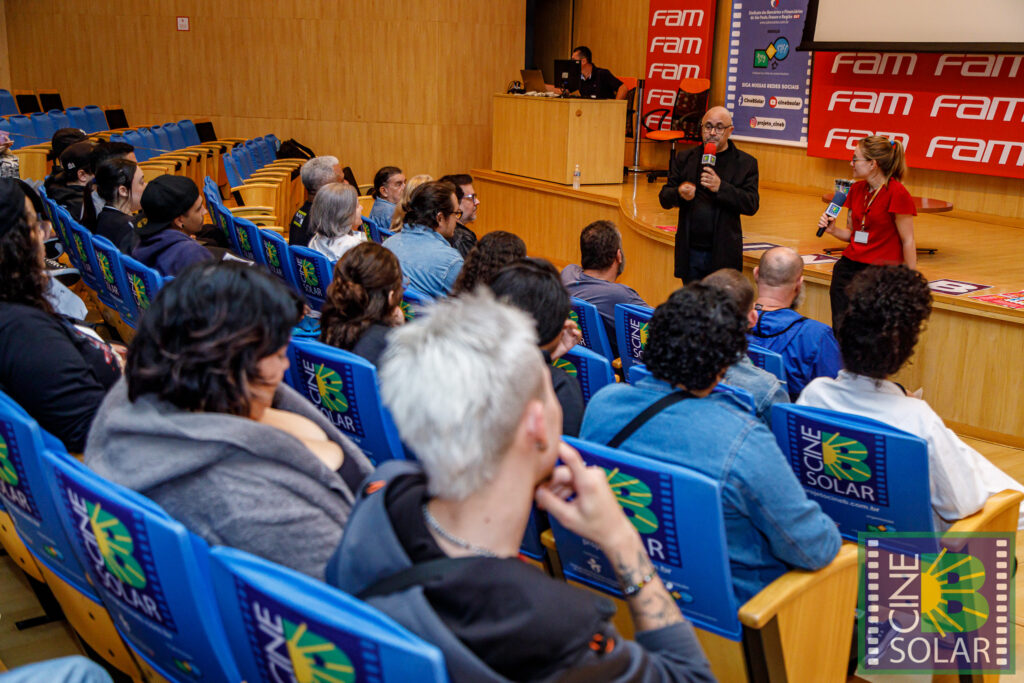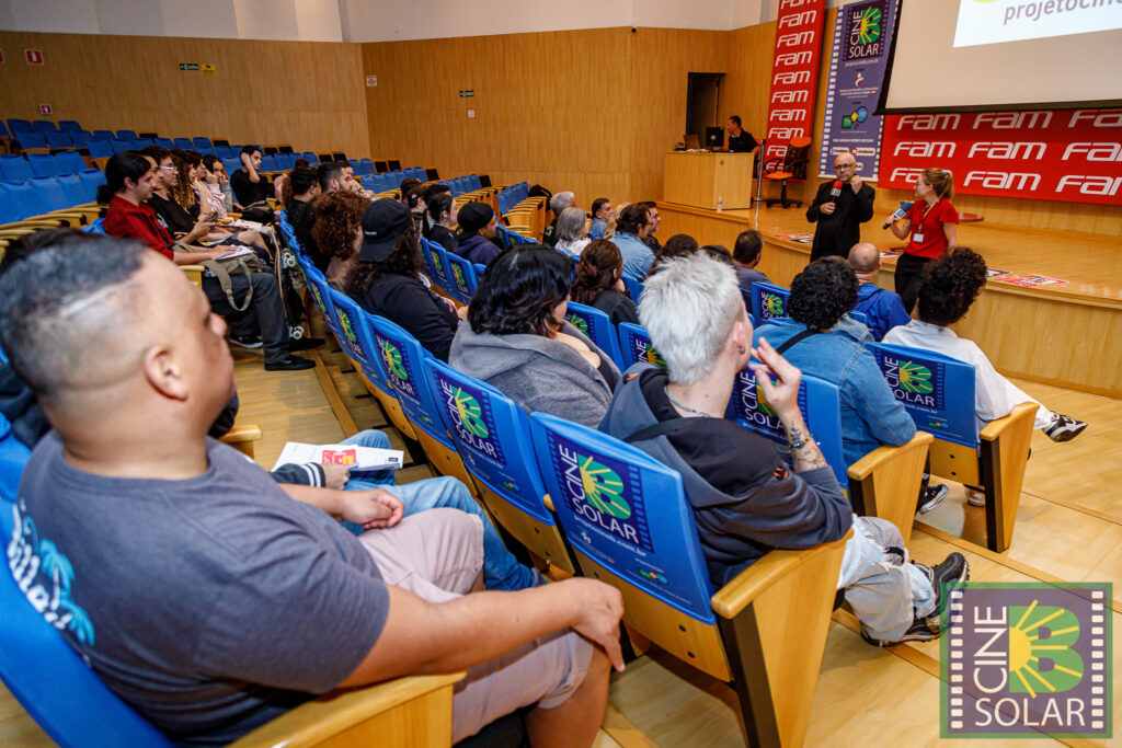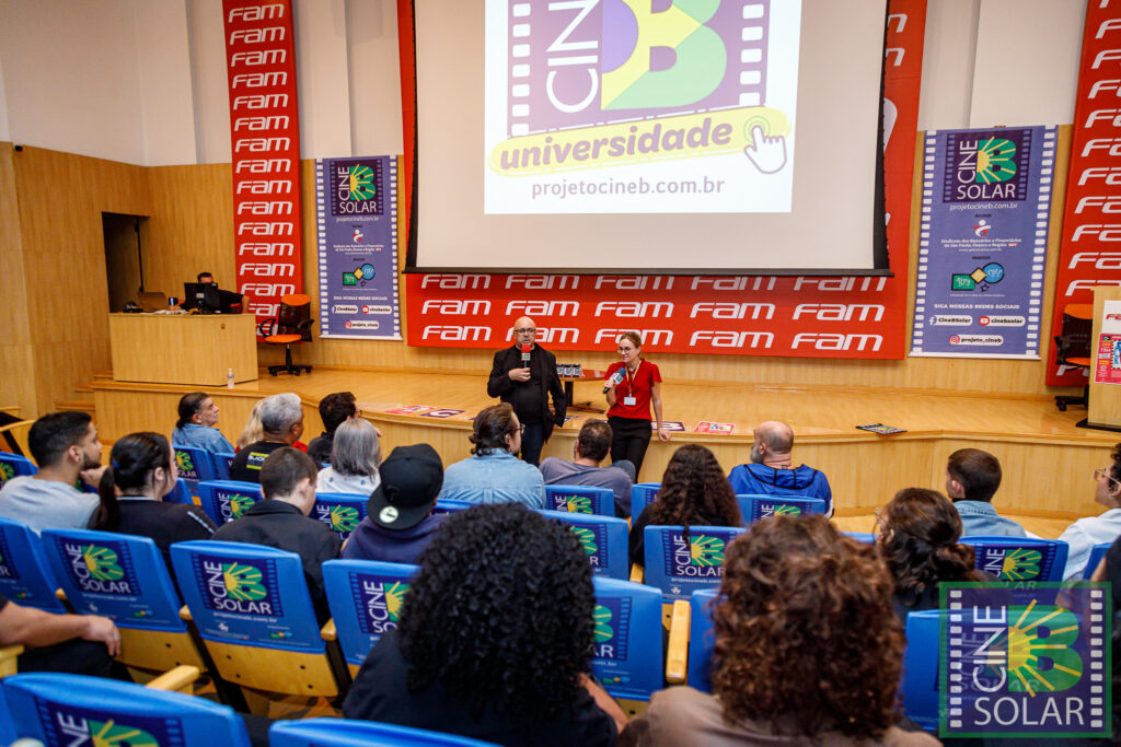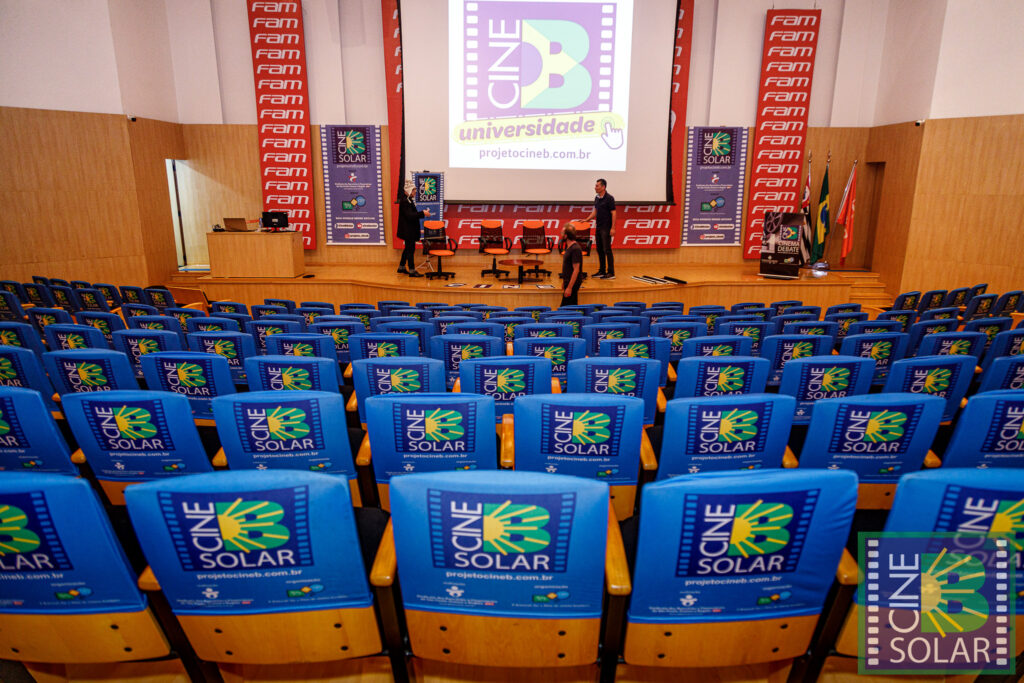 O CineB Solar, projeto idealizado pelo Sindicato dos Bancários de São Paulo, Osasco e região, e produzido pela Brazucah, exibiu na noite do dia 27 de abril o documentário na programação da 7a semana de Comunicação, Artes e Design do Centro Universitário das Américas – FAM, e promoveu encontro entre os alunos e a produtora executiva do filme, Diana Maia. O filme foi exibido no moderno auditório do campi da Augusta, com a presença de mais de 70 estudantes.