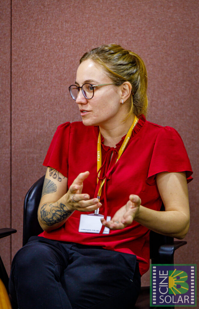 A professora de cinema Camila Cattai reflete sobre a importância da produção executiva, área por vezes pouco discutida nos cursos, para a elaboração das obras audiovisuais. “Quando a gente entra em qualquer curso a gente entra muito mais com a vontade de sonhar e de realizar, com a cabeça nas nuvens, do que com os pés no chão. Principalmente no cinema. Eu digo isso porque hoje eu tenho produtora e nós lançamos os nossos filmes, e até hoje ‘a gente samba’ bastante na produção executiva. Ter ela aqui para mostrar esse outro lado de como viabilizar, de como fazer um produto audiovisual, um filme, um longa, um documentário render e se transformar em outros filmes, para a gente é uma iluminação”, diz.