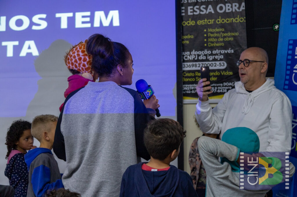 “É um prazer e uma honra desenvolver esse projeto aqui na Cidade Tiradentes. O cinema mais próximo fica a 40 minutos daqui, e muitas pessoas, inclusive adultos que moram há mais de 20 anos no bairro, nunca tiveram oportunidade de entrar numa sala de cinema. Hoje a igreja ficou pequena, cheia de crianças e adultos. Foi emocionante ver a comunidade inteira participando.”