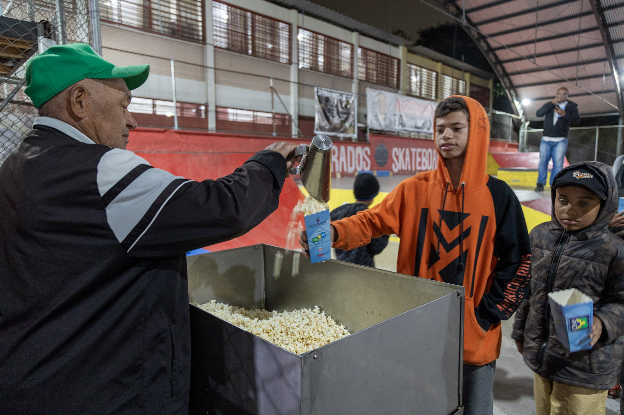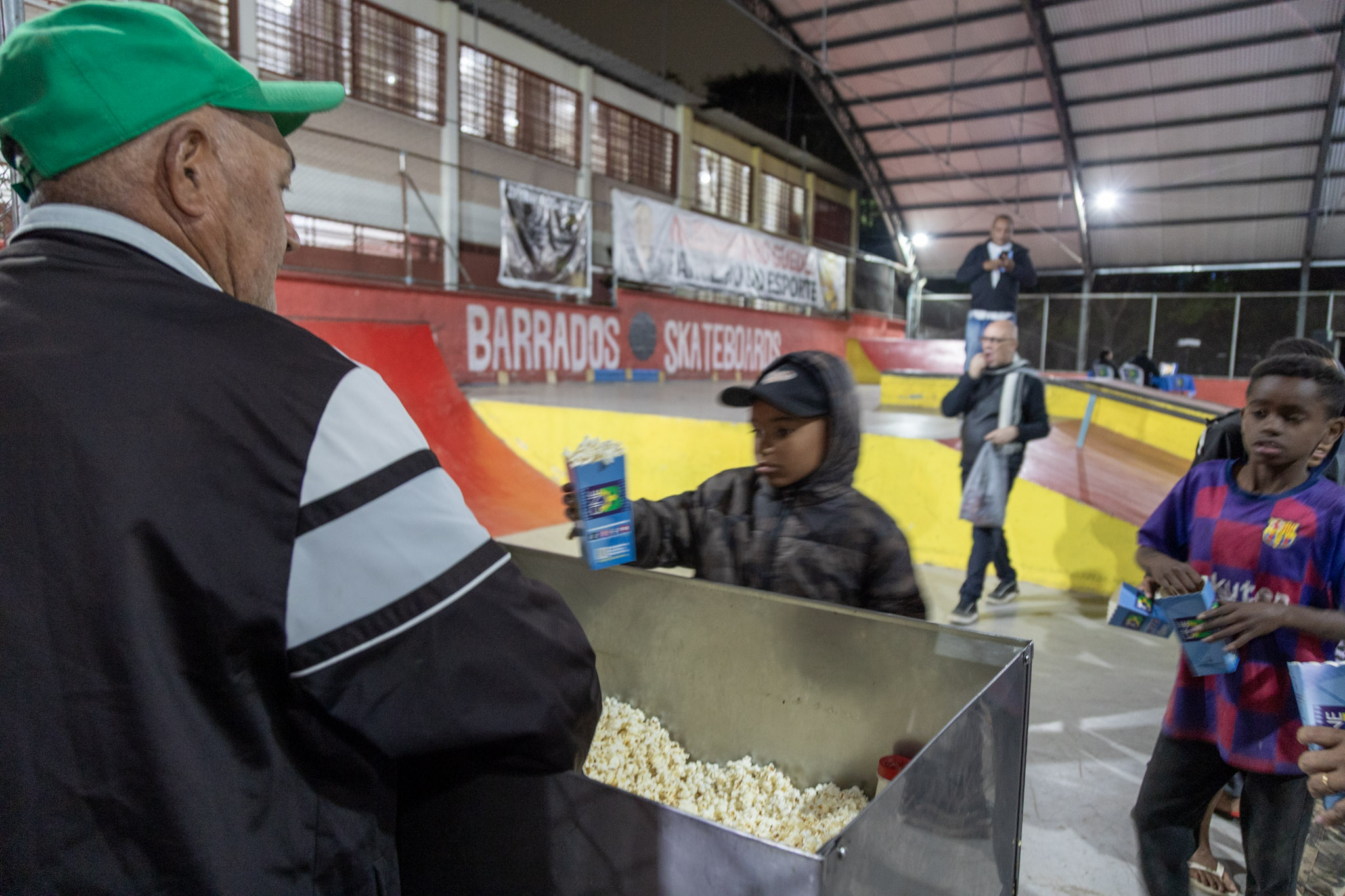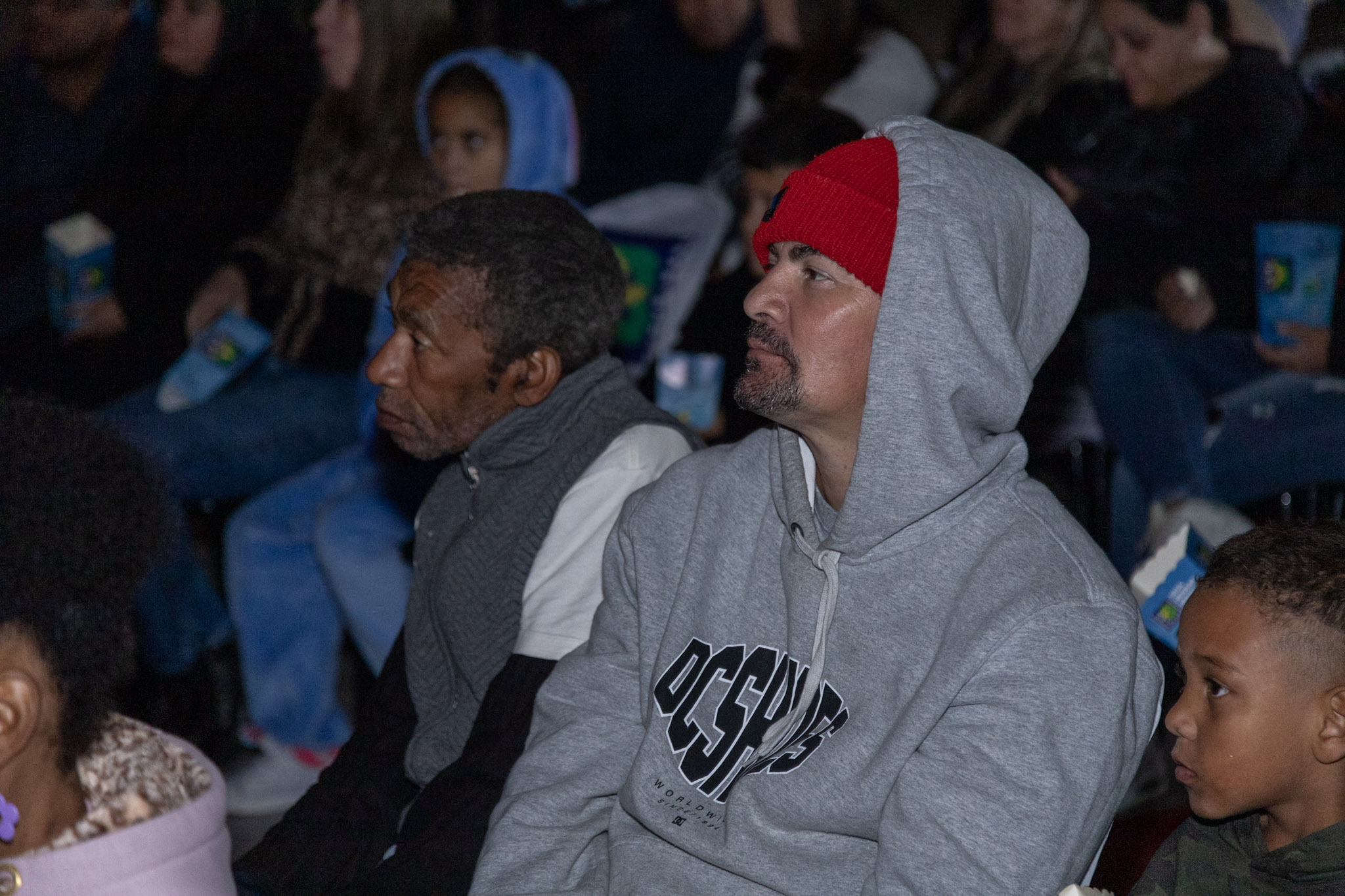 “Meu nome é José Robervando. Eu gostei do filme, que falou da Tarsilinha, inspirada na Tarsila do Amaral, e do Abaporu, um ícone da história brasileira. Sou frequentador, meu filho anda de skate aqui na Barrados e a gente participa de tudo que tem na comunidade. É emocionante ver que muitas crianças aqui estavam assistindo cinema pela primeira vez. Parece simples, mas ainda é inacessível para muitas famílias.”