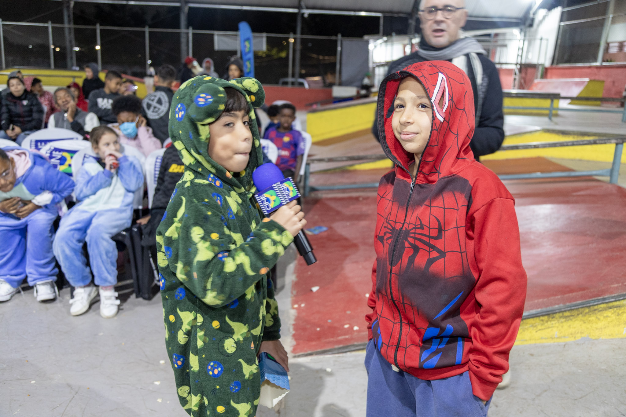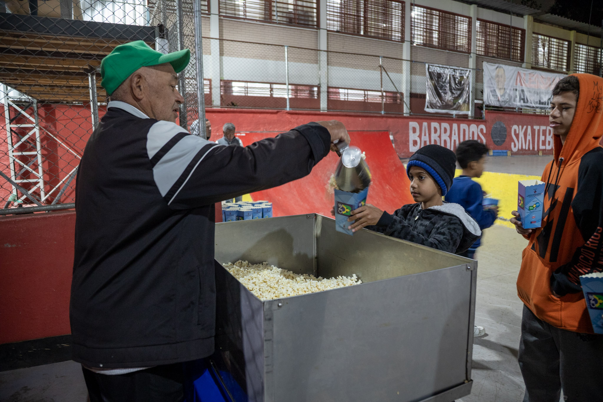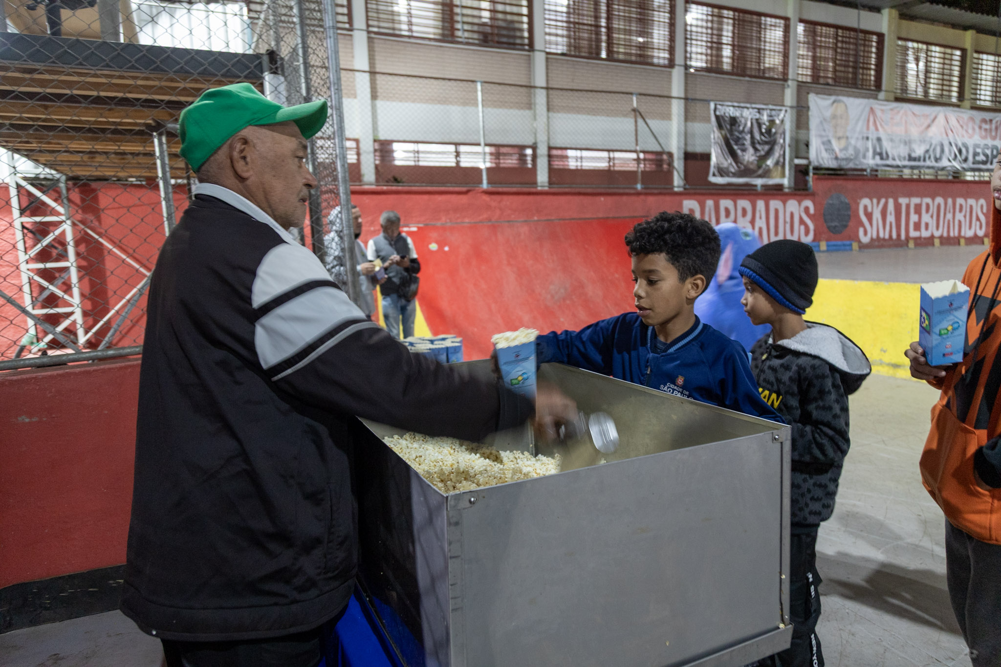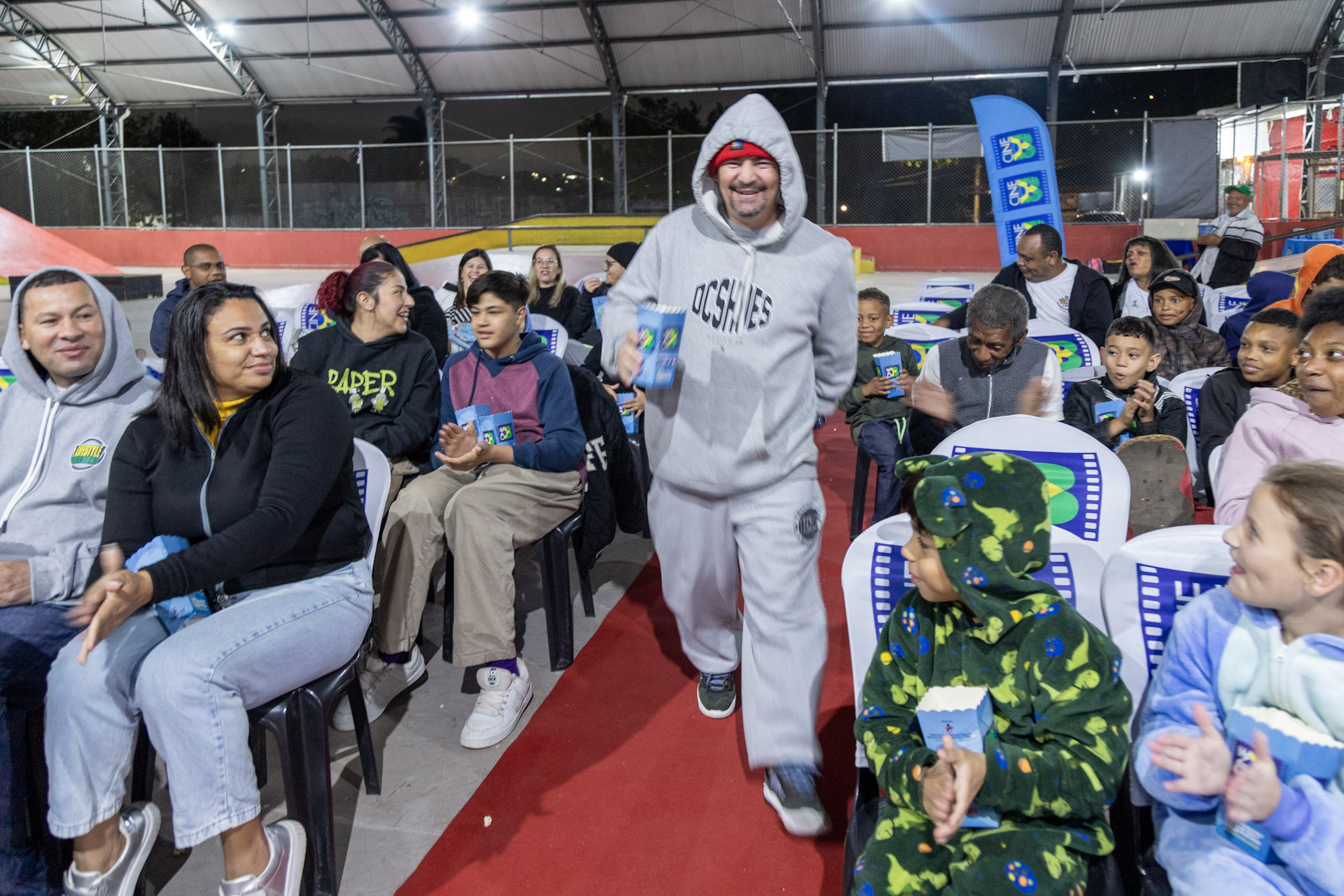 “Meu nome é José Robervando. Eu gostei do filme, que falou da Tarsilinha, inspirada na Tarsila do Amaral, e do Abaporu, um ícone da história brasileira. Sou frequentador, meu filho anda de skate aqui na Barrados e a gente participa de tudo que tem na comunidade. É emocionante ver que muitas crianças aqui estavam assistindo cinema pela primeira vez. Parece simples, mas ainda é inacessível para muitas famílias.”