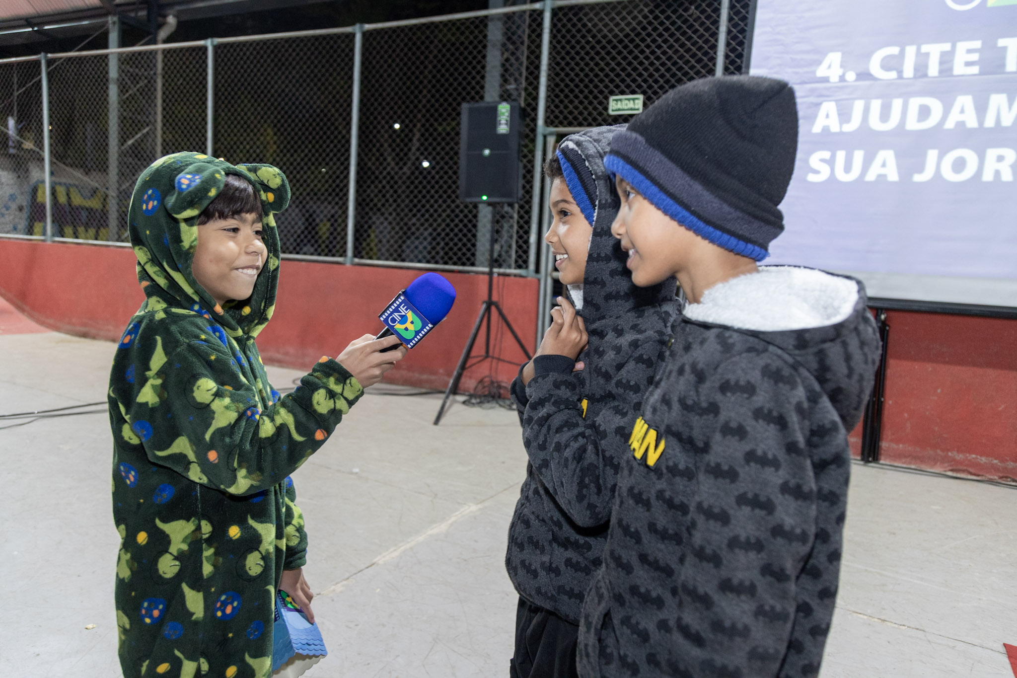 Assim como nas demais sessões, houve o jogo de perguntas e respostas com as crianças, que se divertiram testando seus conhecimentos sobre o filme, além do sorteio de camisetas do projeto.