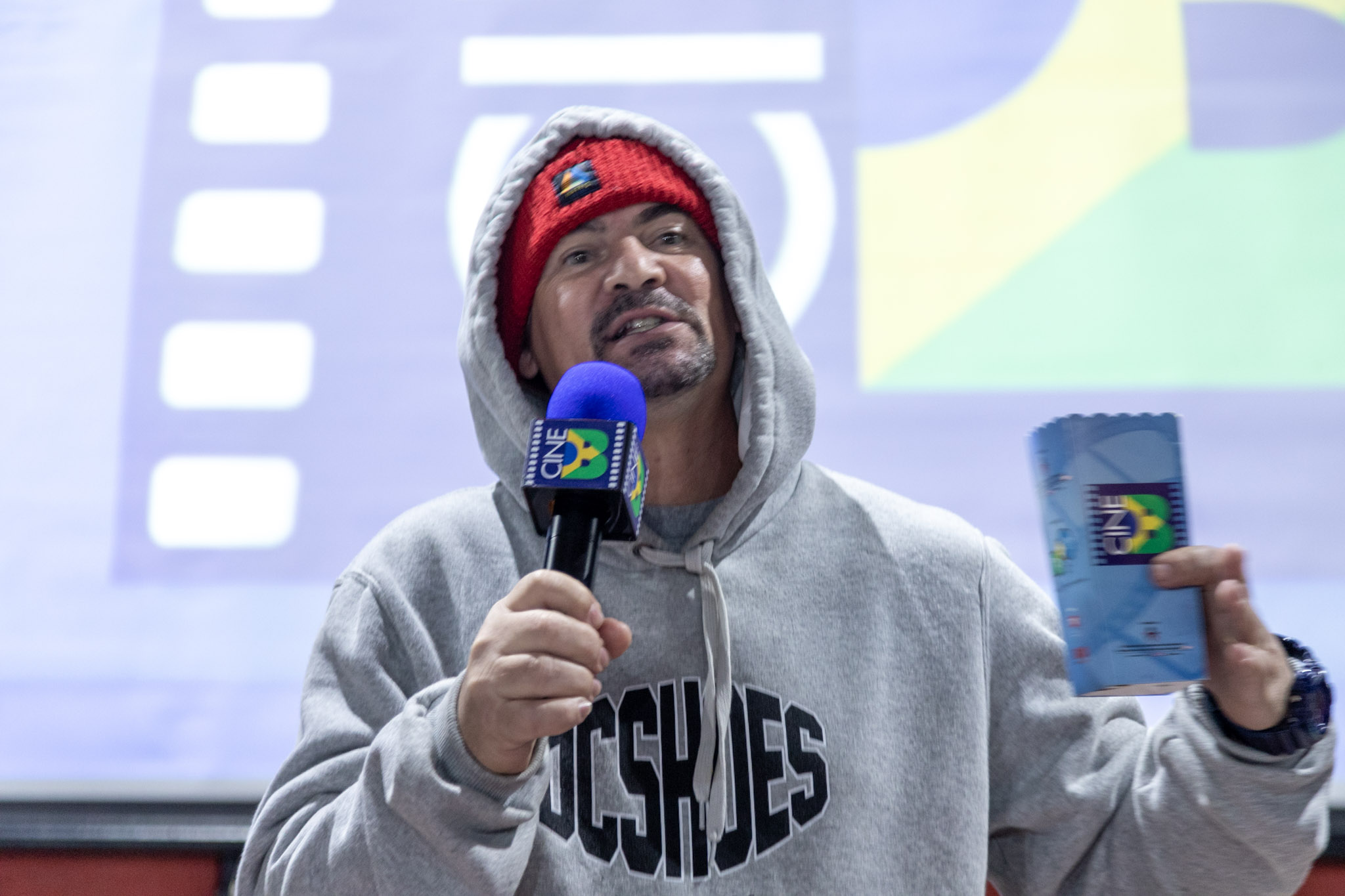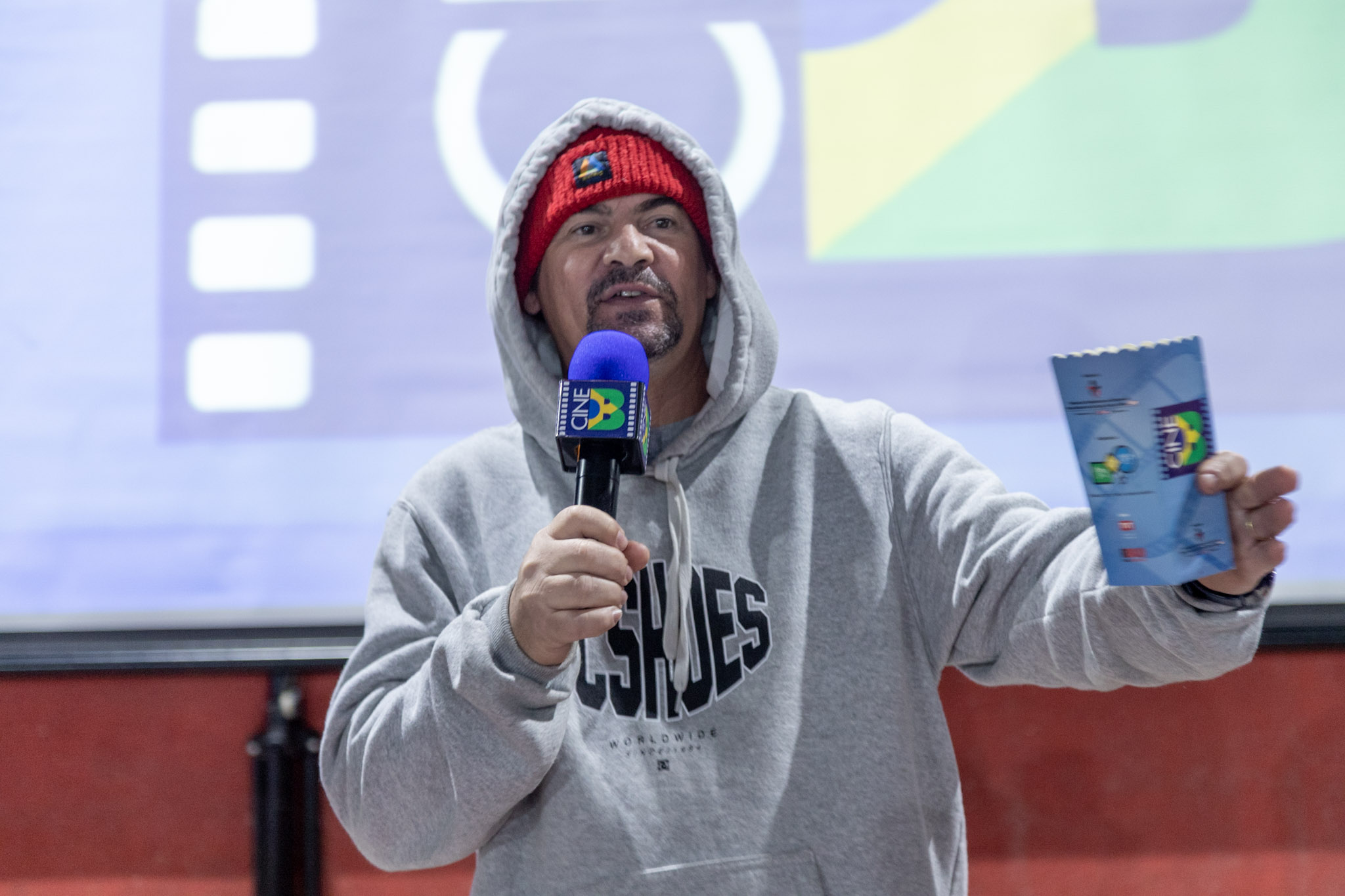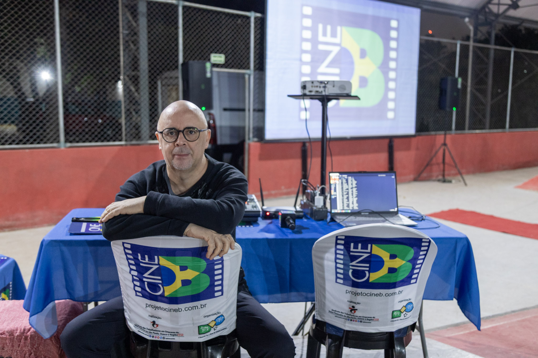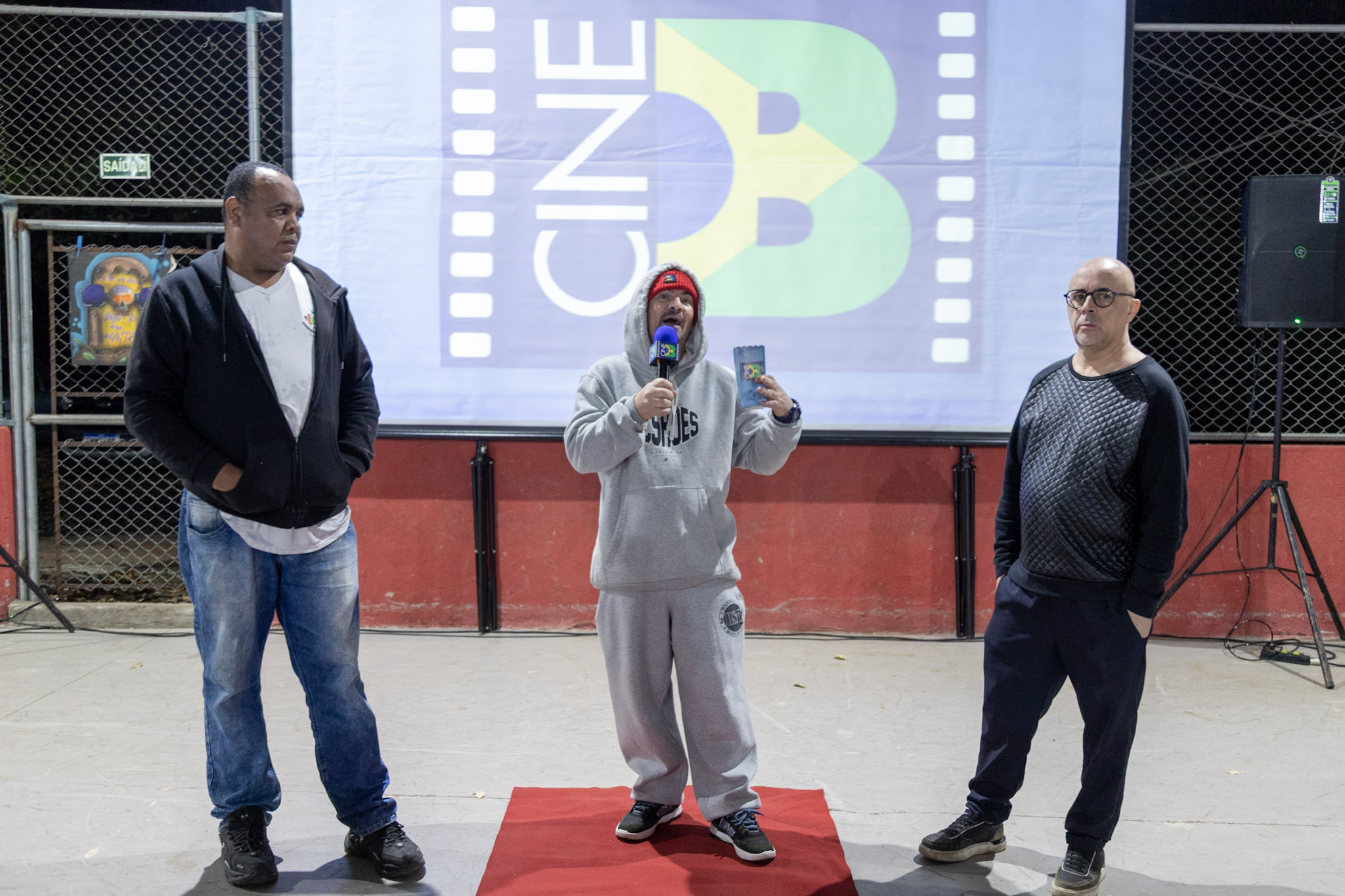 “Meu nome é Sidney Dantas (Nex), sou skatista profissional. Fiquei sabendo através do Elias, que trouxe o CineB pra cá e me explicou a proposta. É uma iniciativa muito legal de cultura que ajuda a criançada a se desenvolver, sair da rua e ter mais proximidade com o cinema, já que muita criança nunca foi a uma sala. Aqui a gente desenvolve um trabalho de futebol e de skate com a molecada, e trazer o cinema soma muito.”