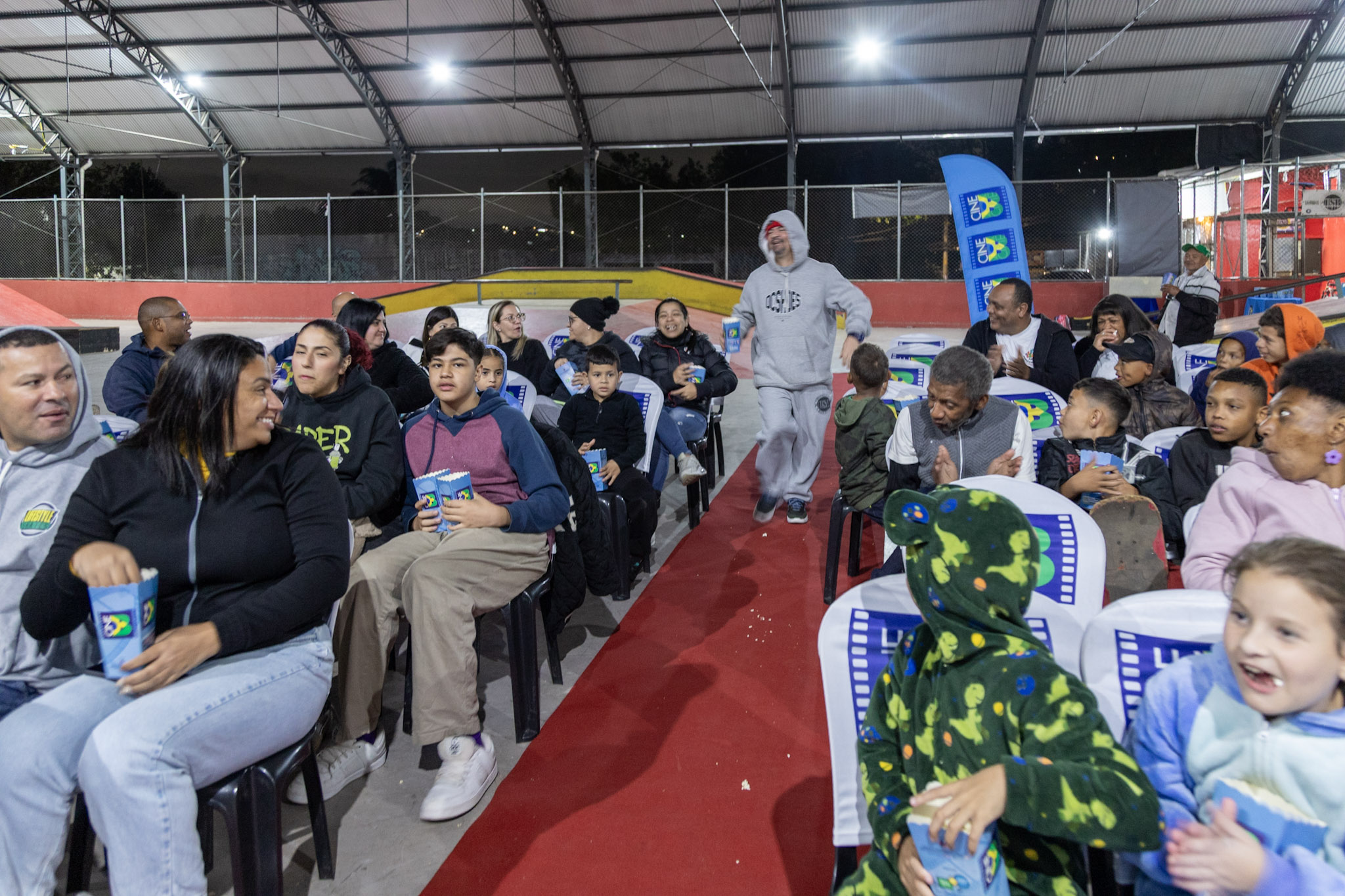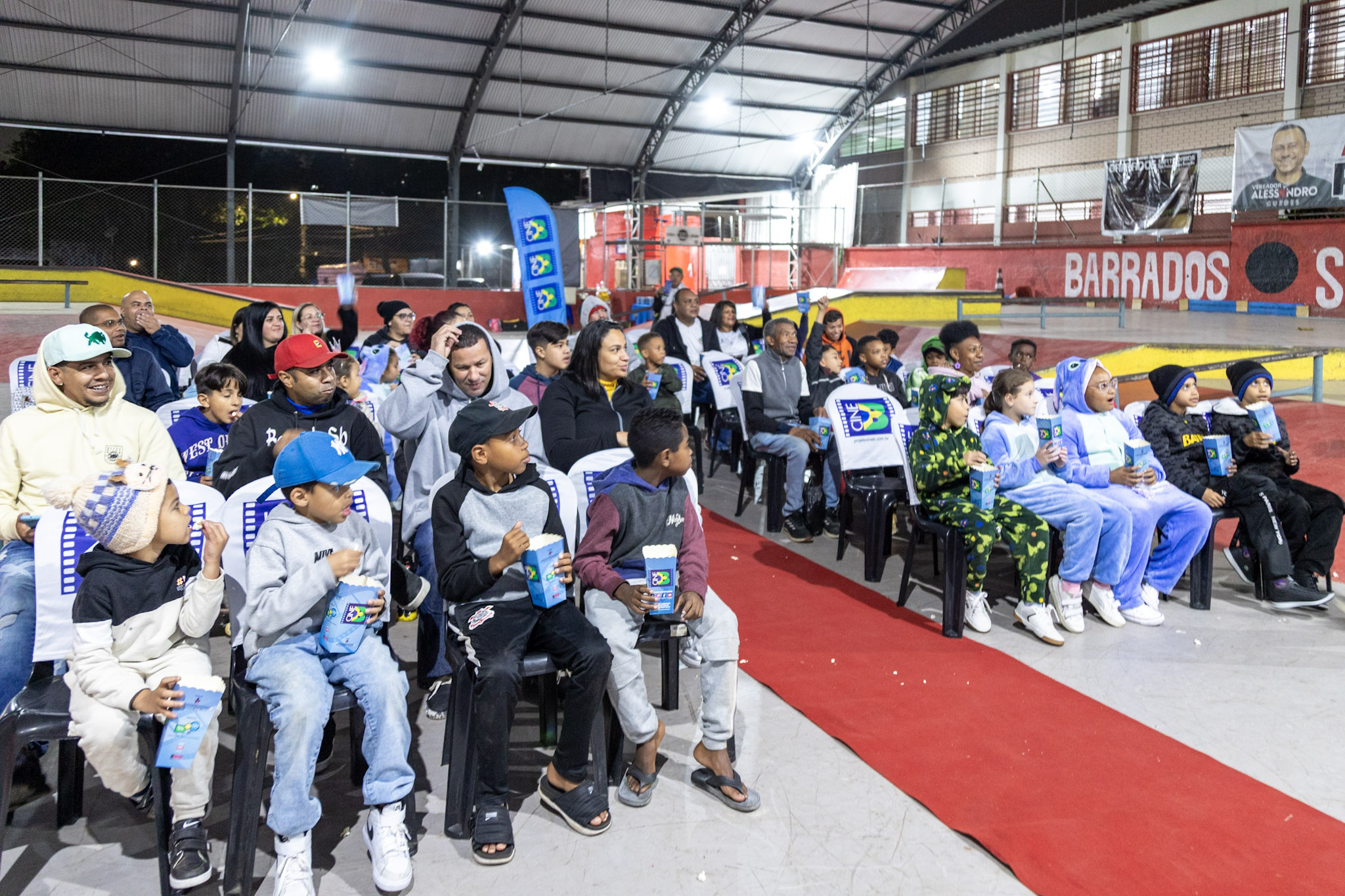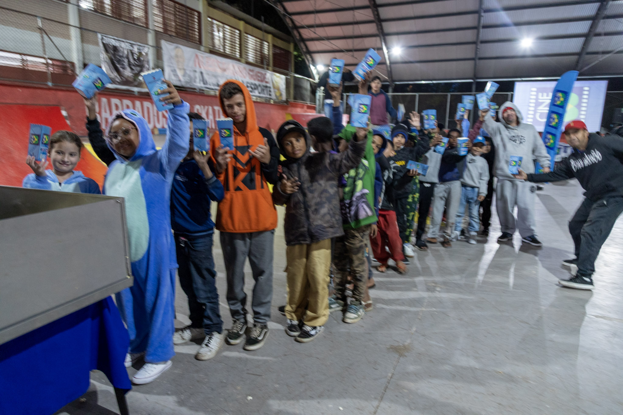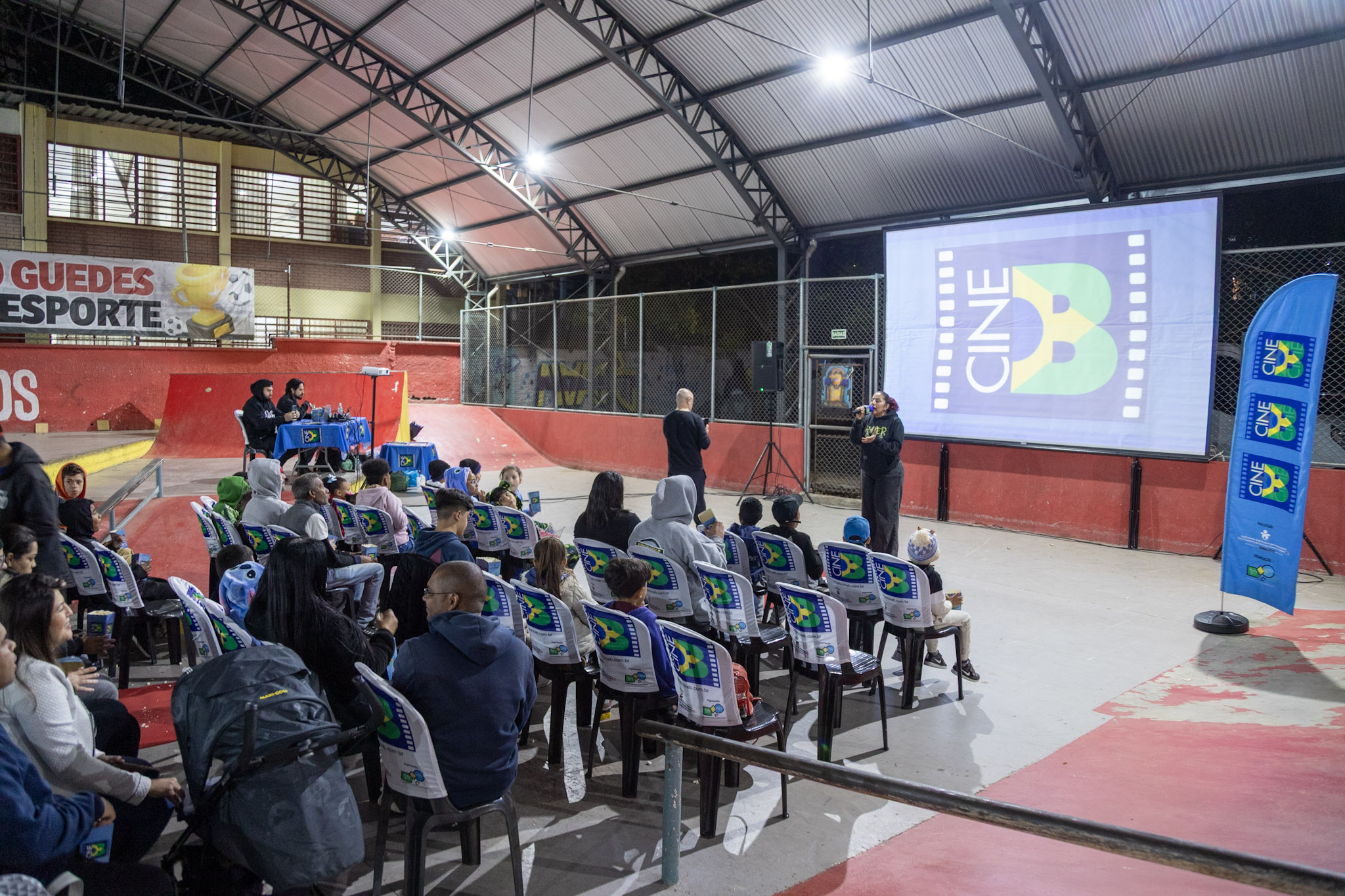 O CineB finalizou sua série de três sessões na Cidade Tiradentes no mês de setembro com uma noite especial na pista Barrados Skateboard. Famílias, crianças e jovens que utilizam o espaço compareceram para assistir ao filme Tarsilinha, em uma sessão marcada pela alegria e pelo sentimento de pertencimento cultural.