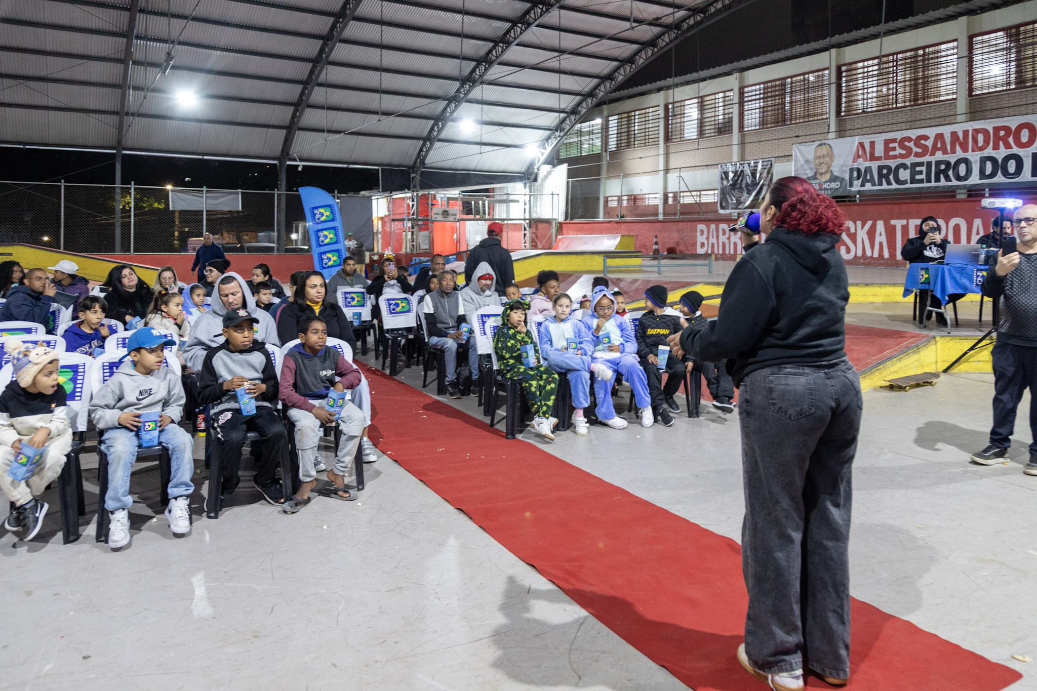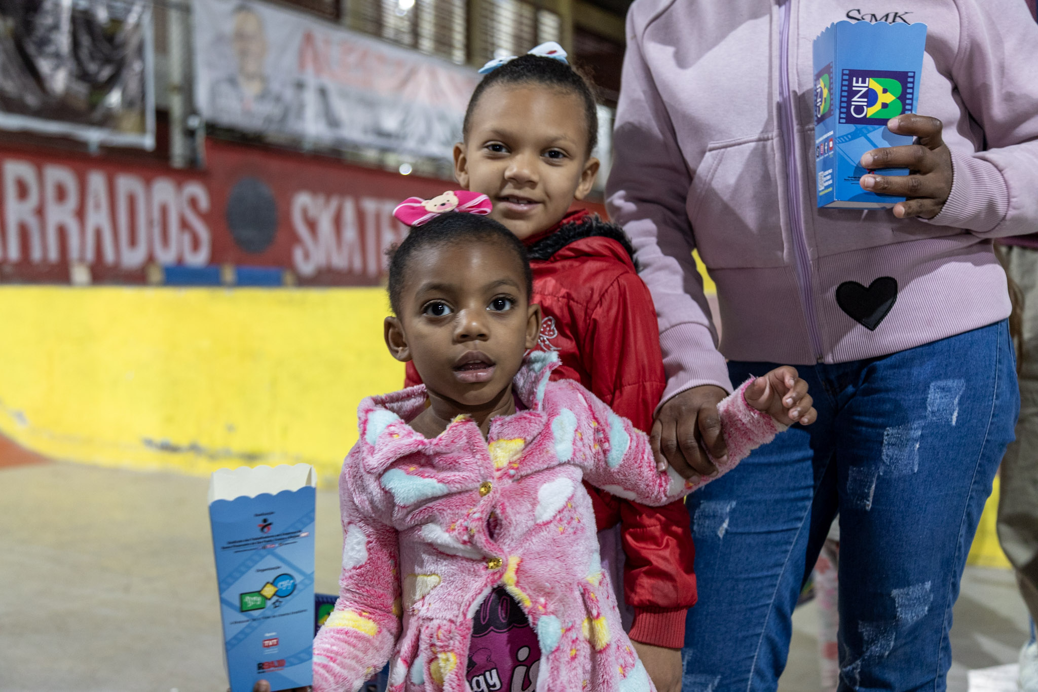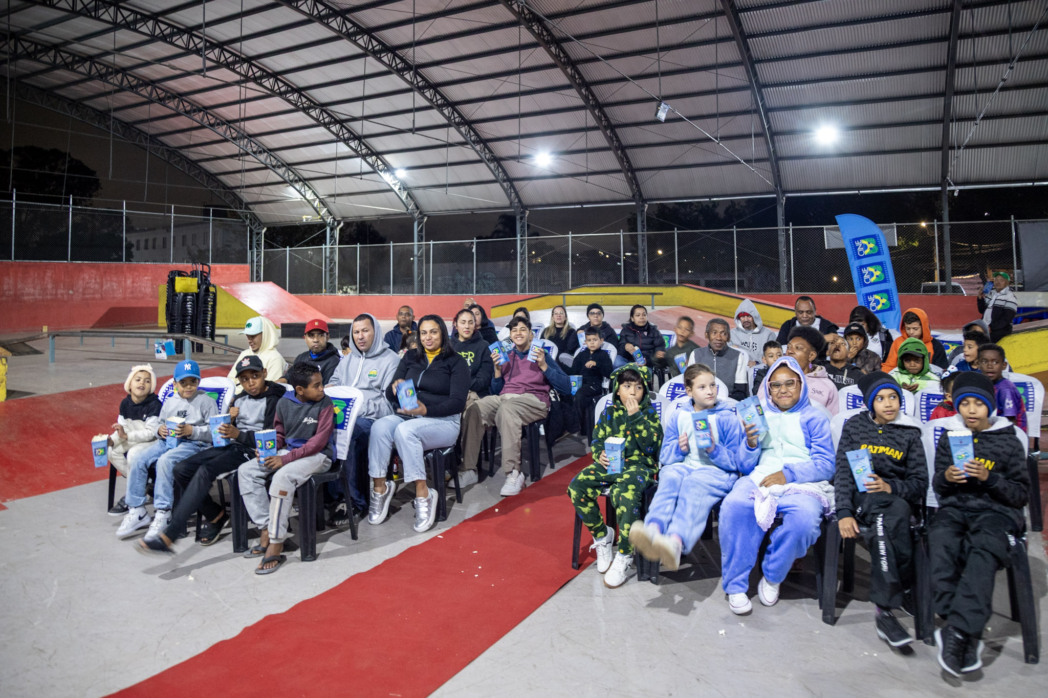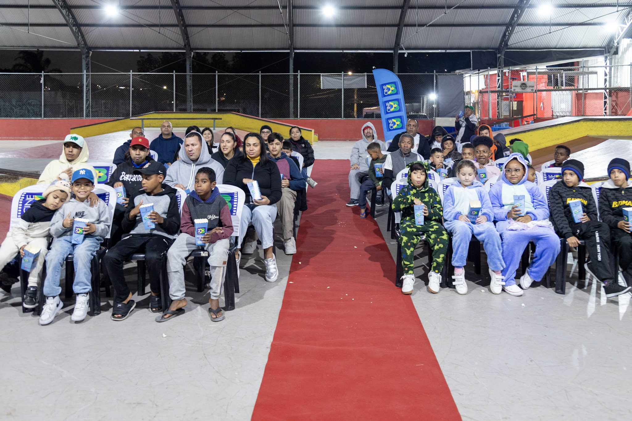 O CineB finalizou sua série de três sessões na Cidade Tiradentes no mês de setembro com uma noite especial na pista Barrados Skateboard. Famílias, crianças e jovens que utilizam o espaço compareceram para assistir ao filme Tarsilinha, em uma sessão marcada pela alegria e pelo sentimento de pertencimento cultural.