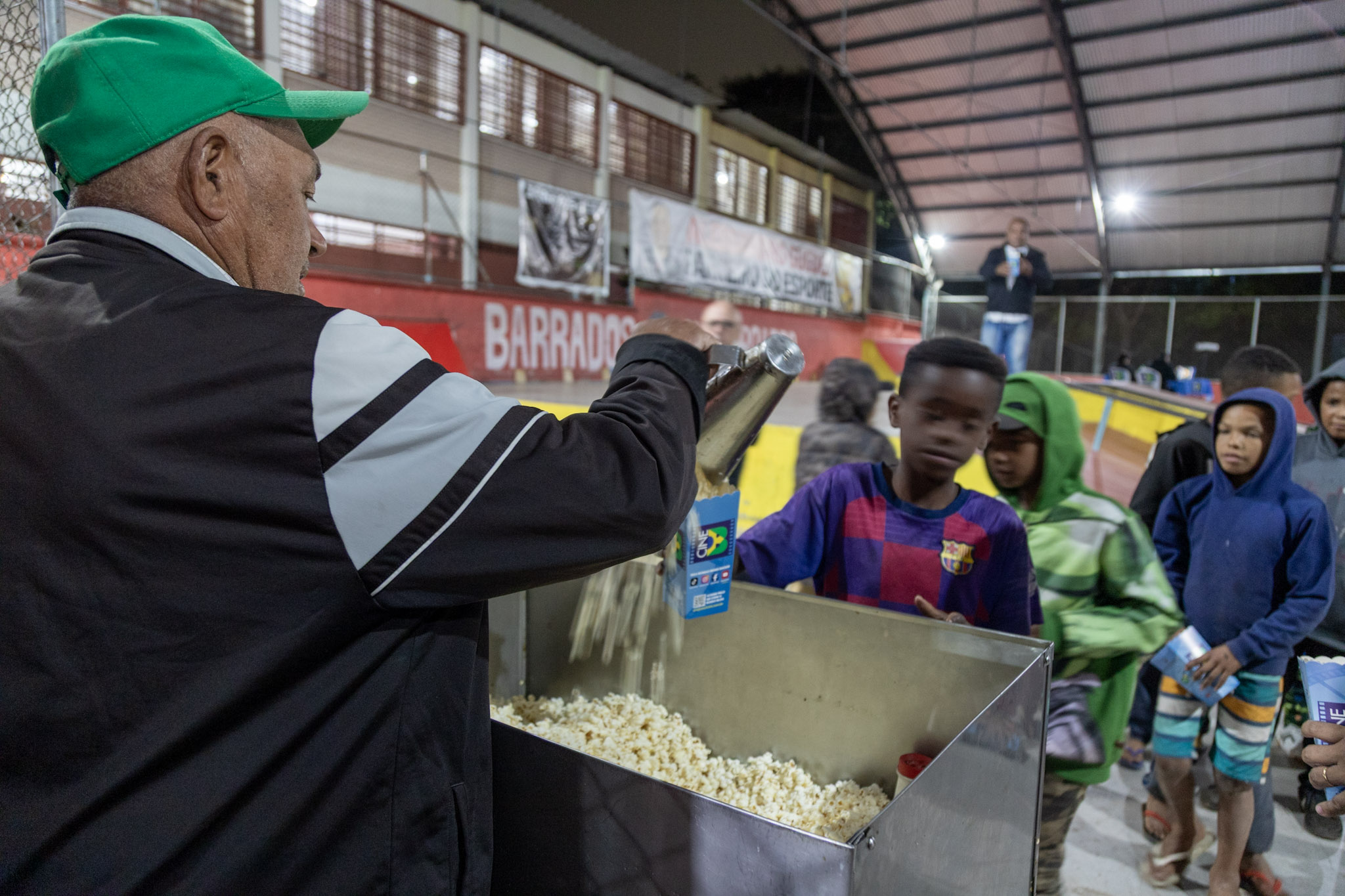 Antes da exibição, o público foi presenteado com a apresentação musical da cantora gospel Tamara Lucena, que emocionou a comunidade. A tradicional pipoca preparada pelo Seu Antonio não faltou, garantindo o clima acolhedor que já é marca registrada do CineB.