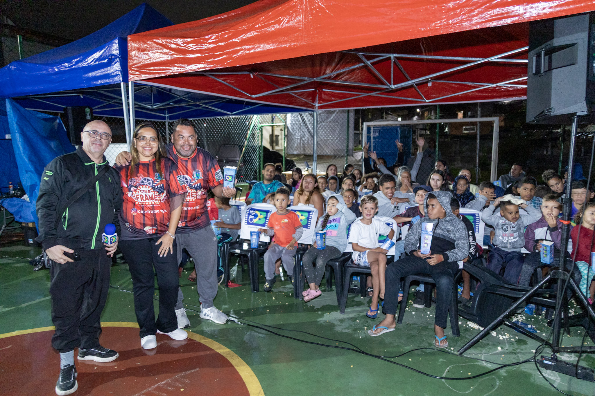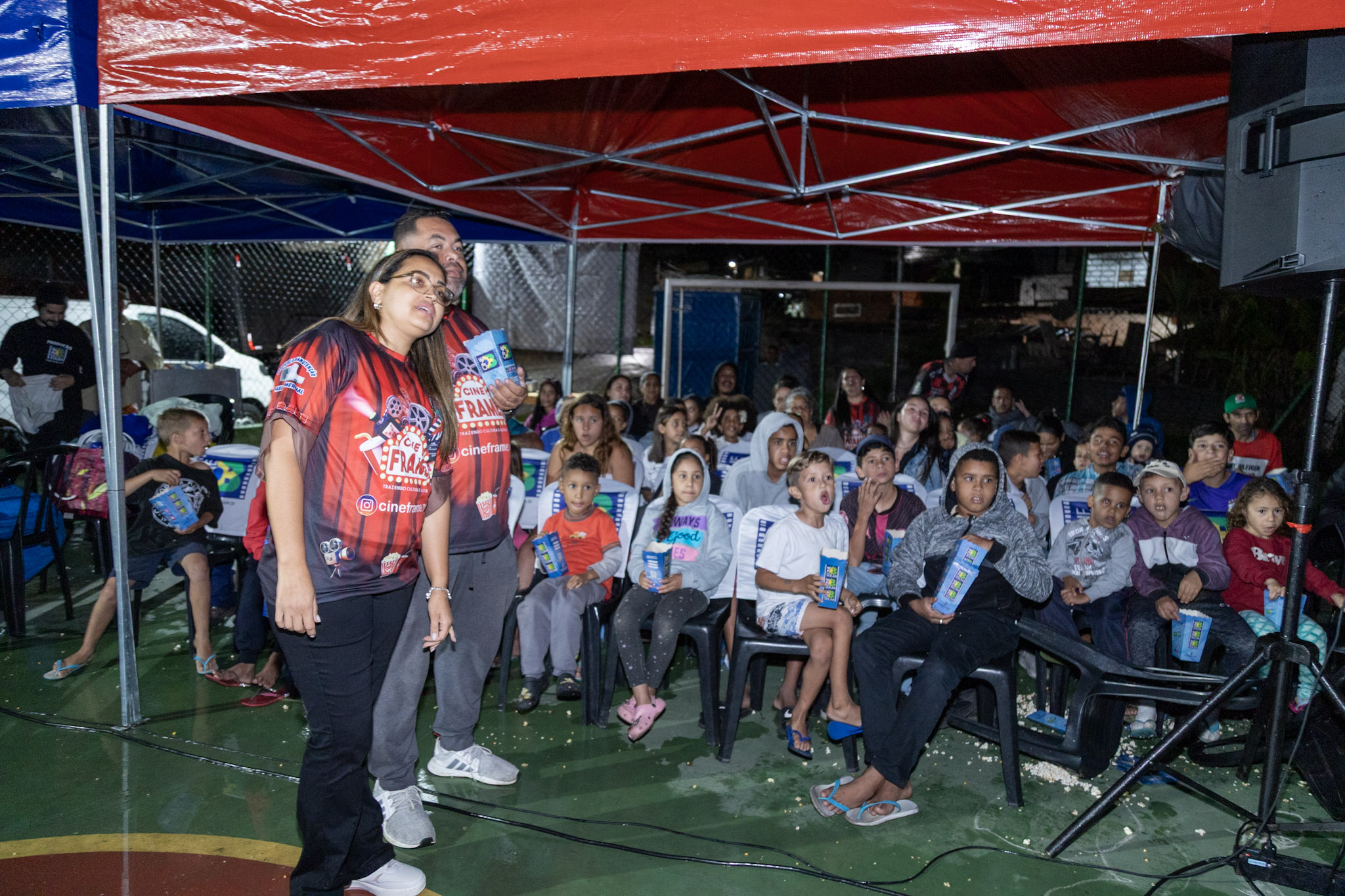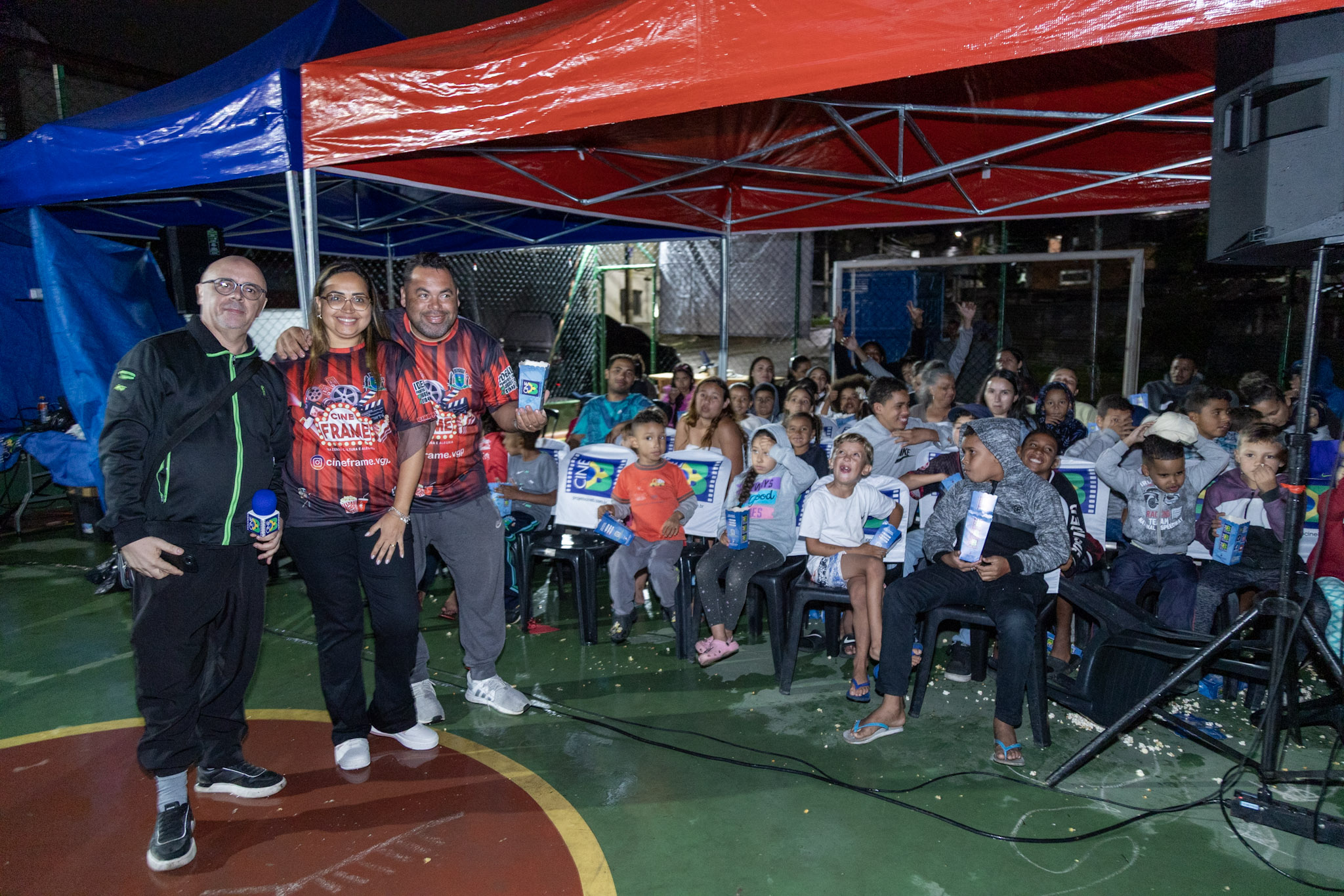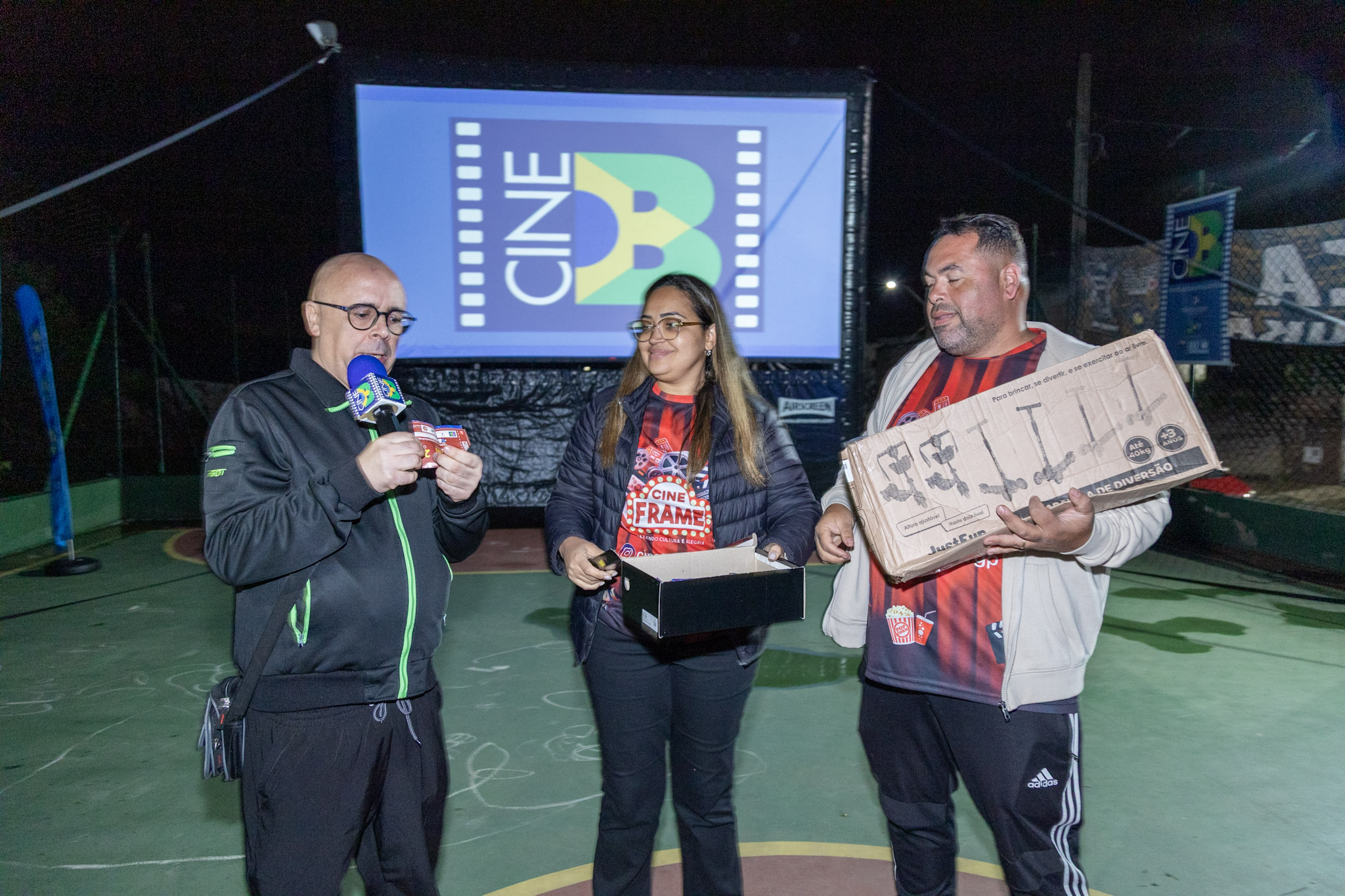 A sessão foi viabilizada por meio do deputado estadual Luís Cláudio Marcolino, que articulou a parceria entre o CineB e o Cine Frame. Ao final, as crianças participaram de um quiz com perguntas sobre o filme, valendo camisetas do projeto e sorteio de patinetes, encerrando a noite com muita alegria.