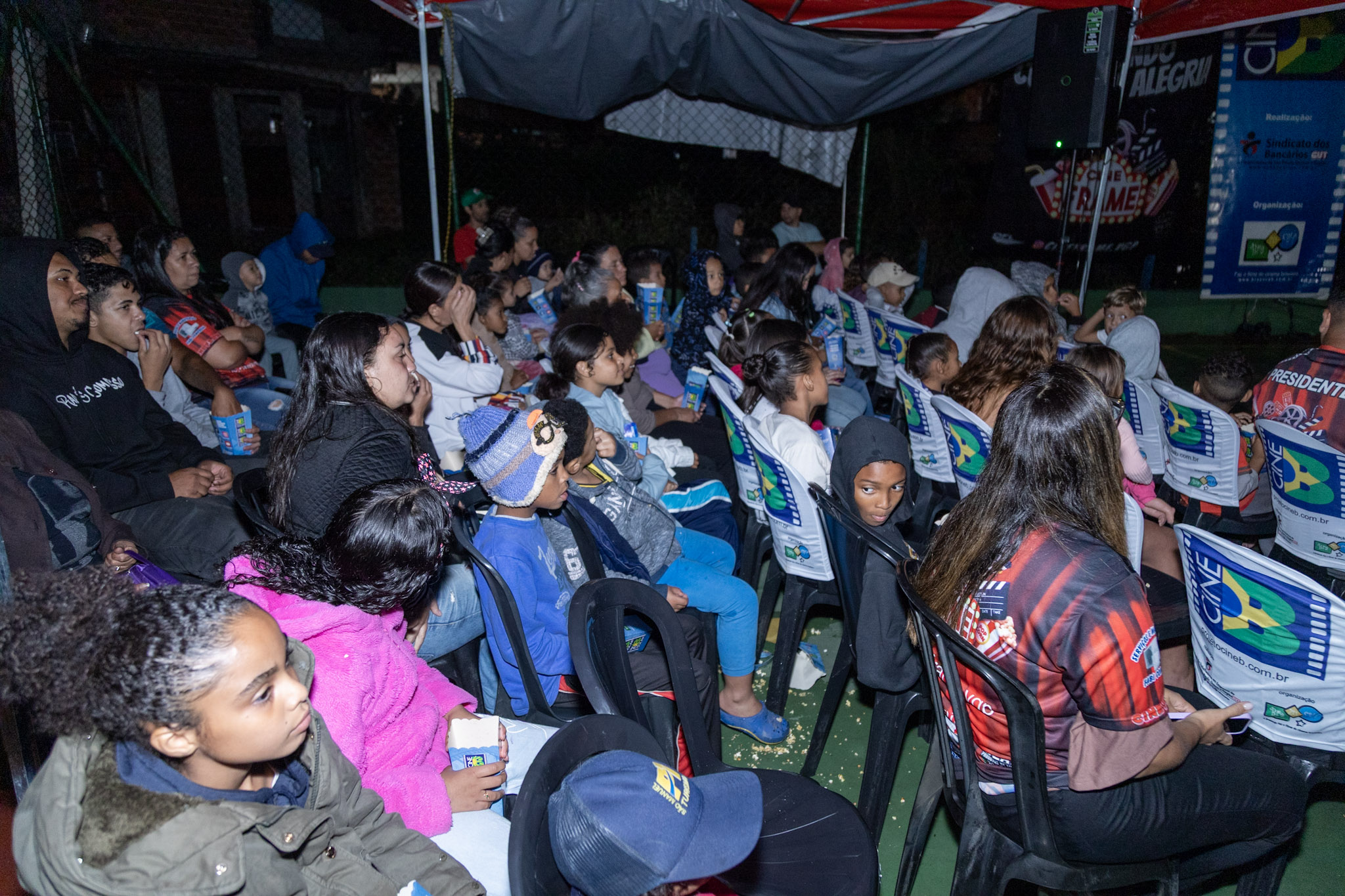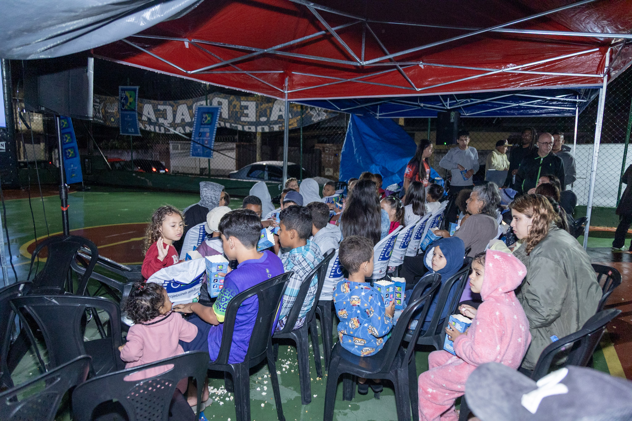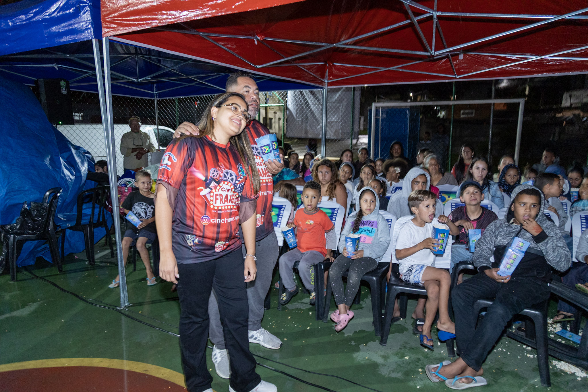 A sessão foi viabilizada por meio do deputado estadual Luís Cláudio Marcolino, que articulou a parceria entre o CineB e o Cine Frame. Ao final, as crianças participaram de um quiz com perguntas sobre o filme, valendo camisetas do projeto e sorteio de patinetes, encerrando a noite com muita alegria.
