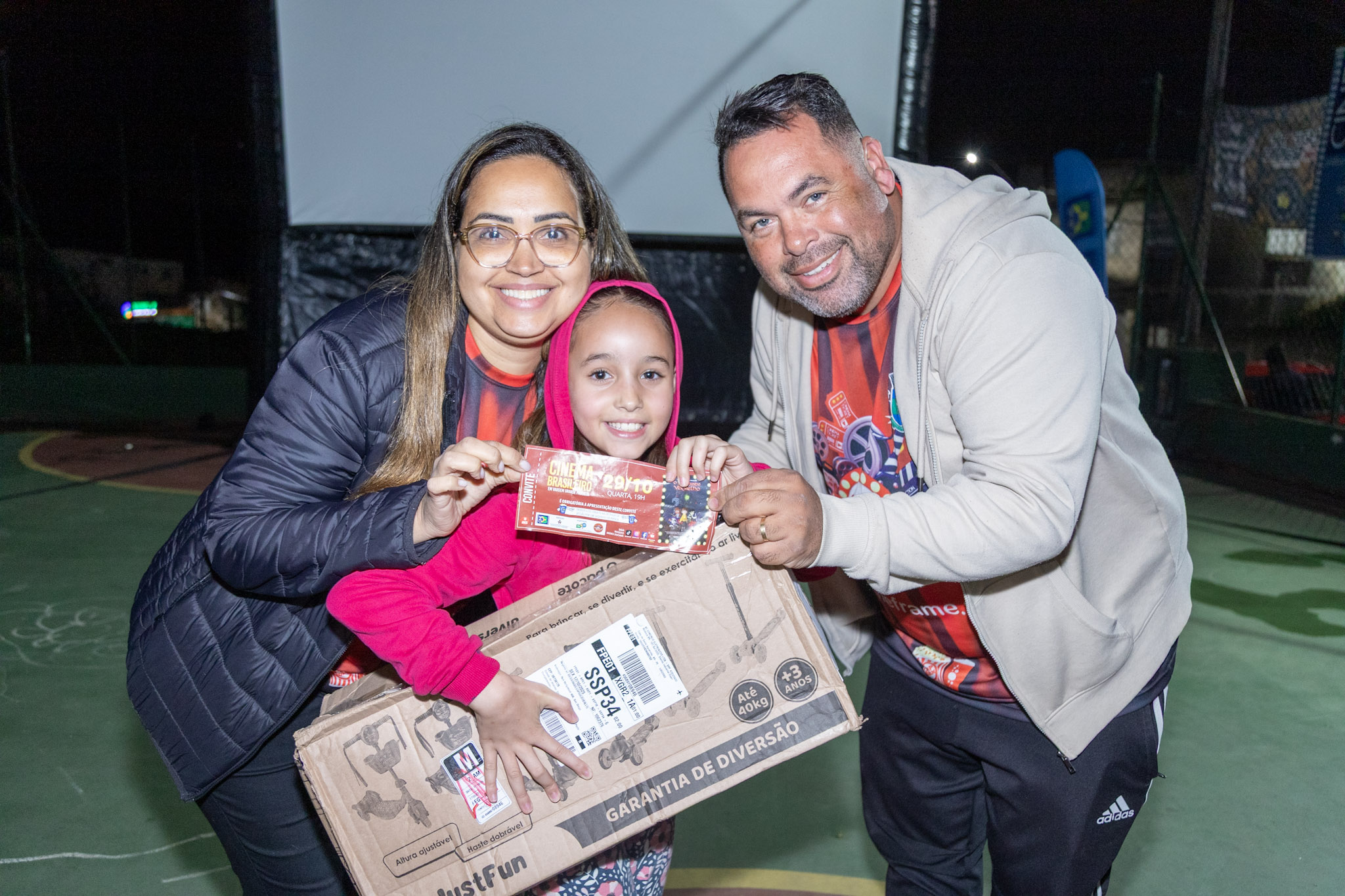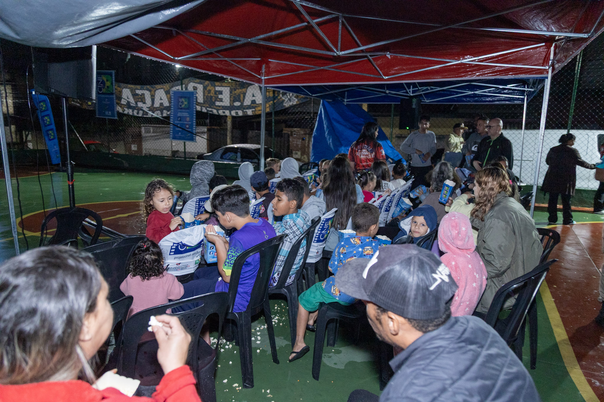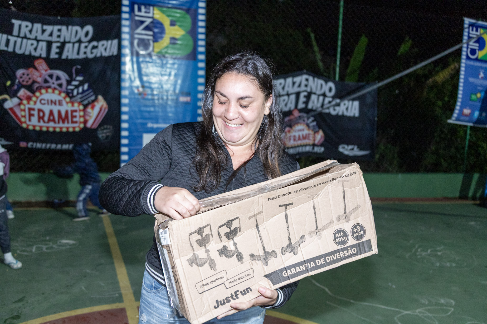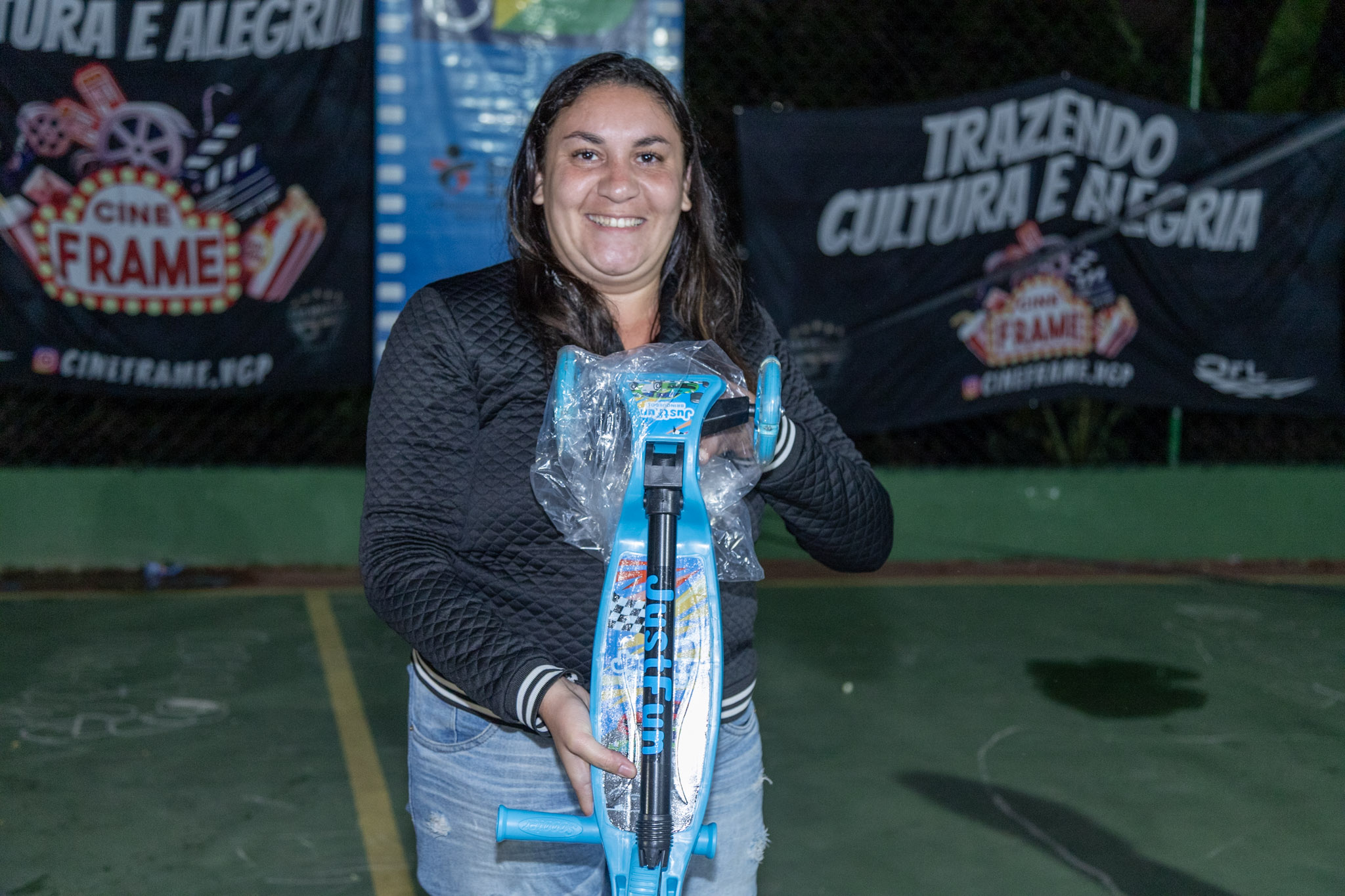 A sessão foi viabilizada por meio do deputado estadual Luís Cláudio Marcolino, que articulou a parceria entre o CineB e o Cine Frame. Ao final, as crianças participaram de um quiz com perguntas sobre o filme, valendo camisetas do projeto e sorteio de patinetes, encerrando a noite com muita alegria.