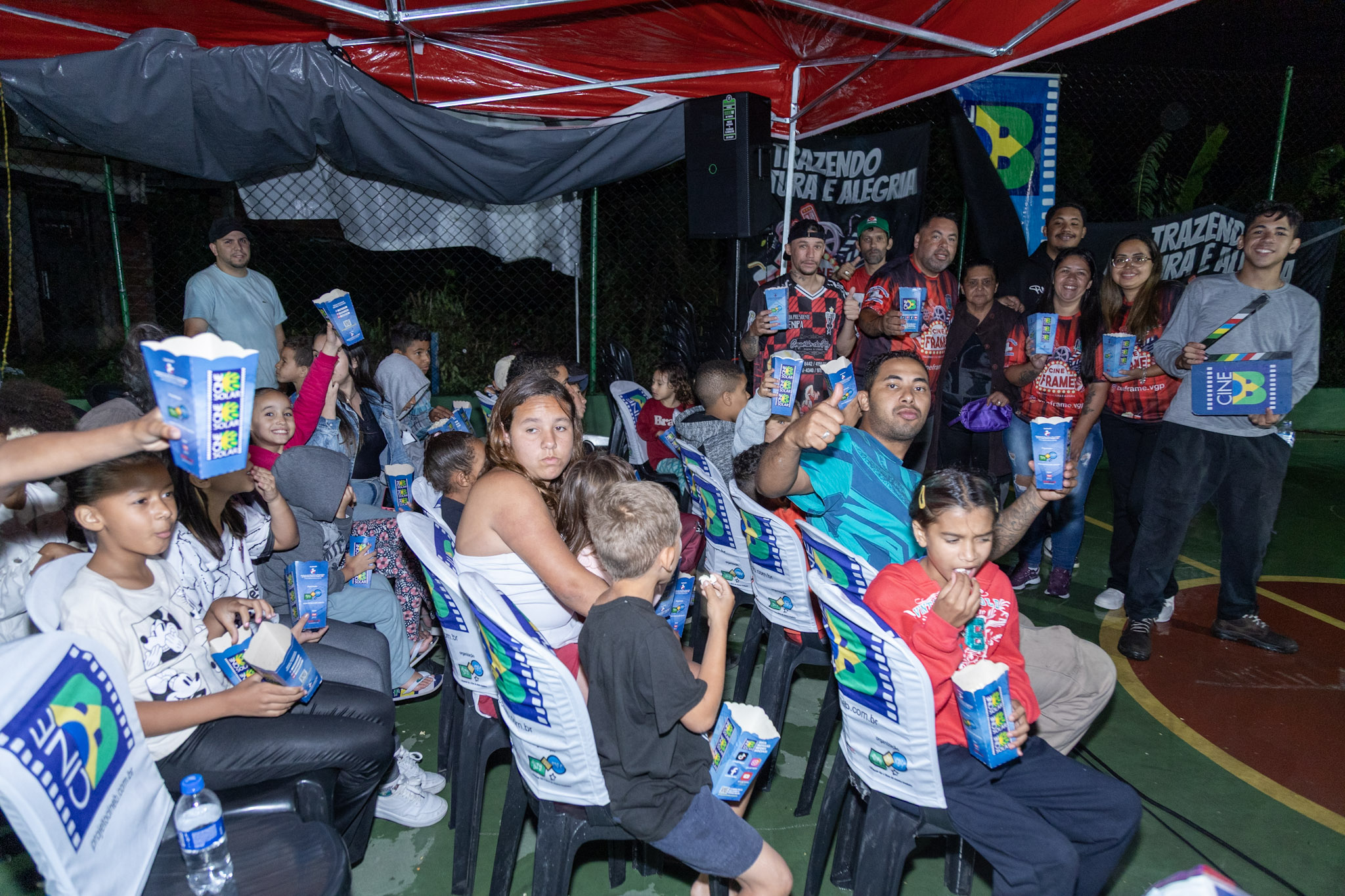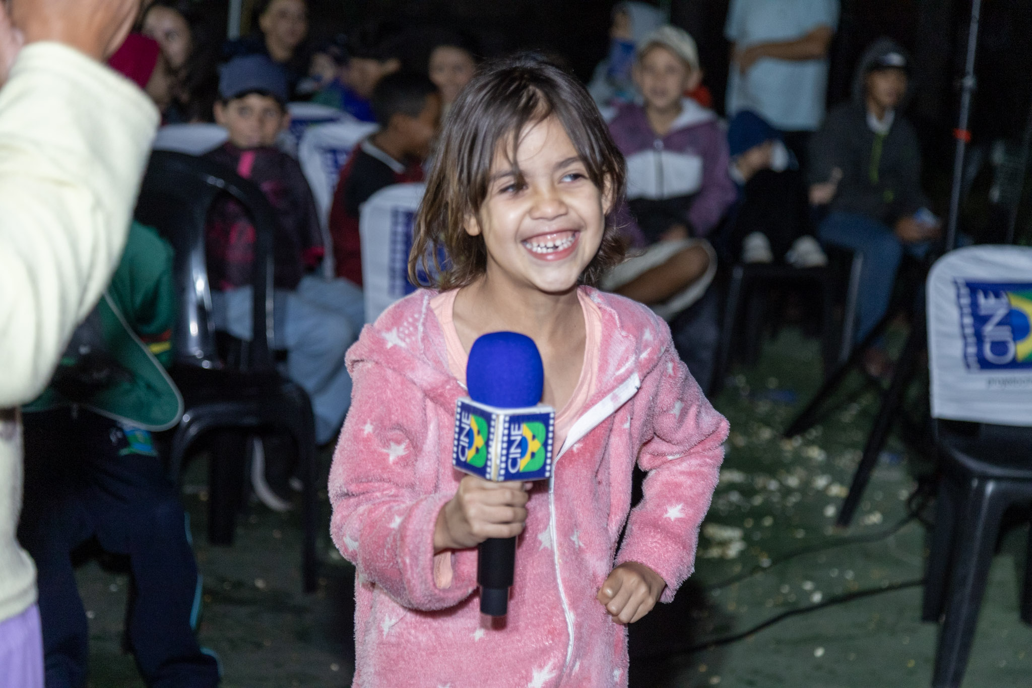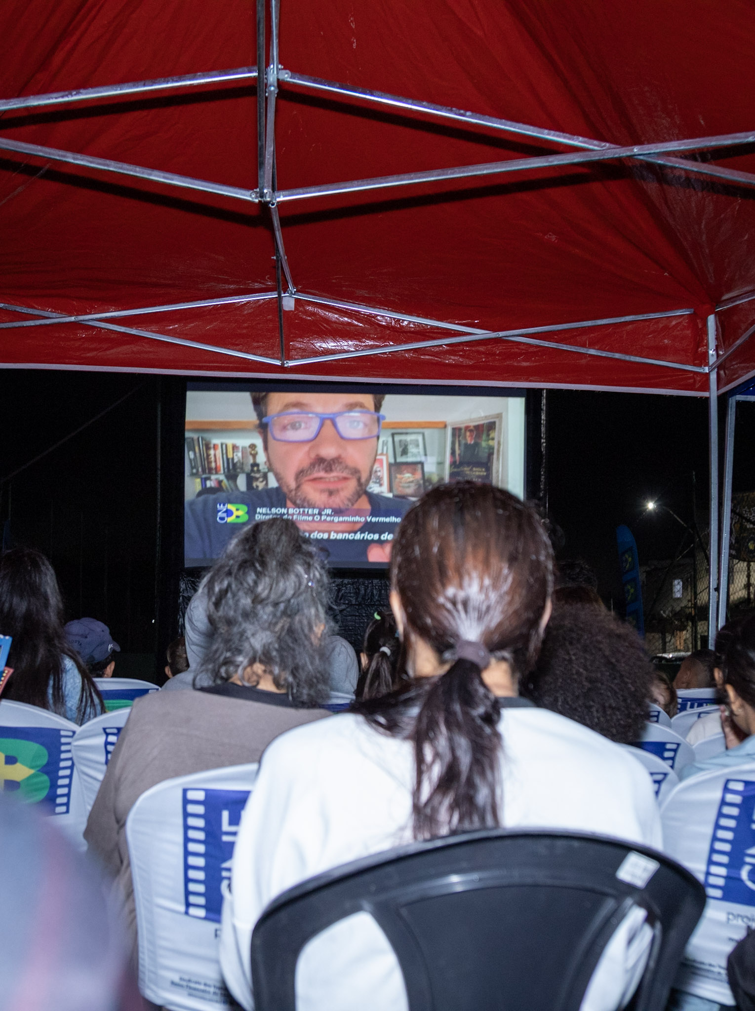 “Vim agradecer ao pessoal do CineB por essa cultura que estão trazendo pra nossa comunidade. É um projeto muito importante pra aproximar as crianças, pra gente ter mais união e lazer. É difícil ir ao cinema, então isso aqui é um presente.”