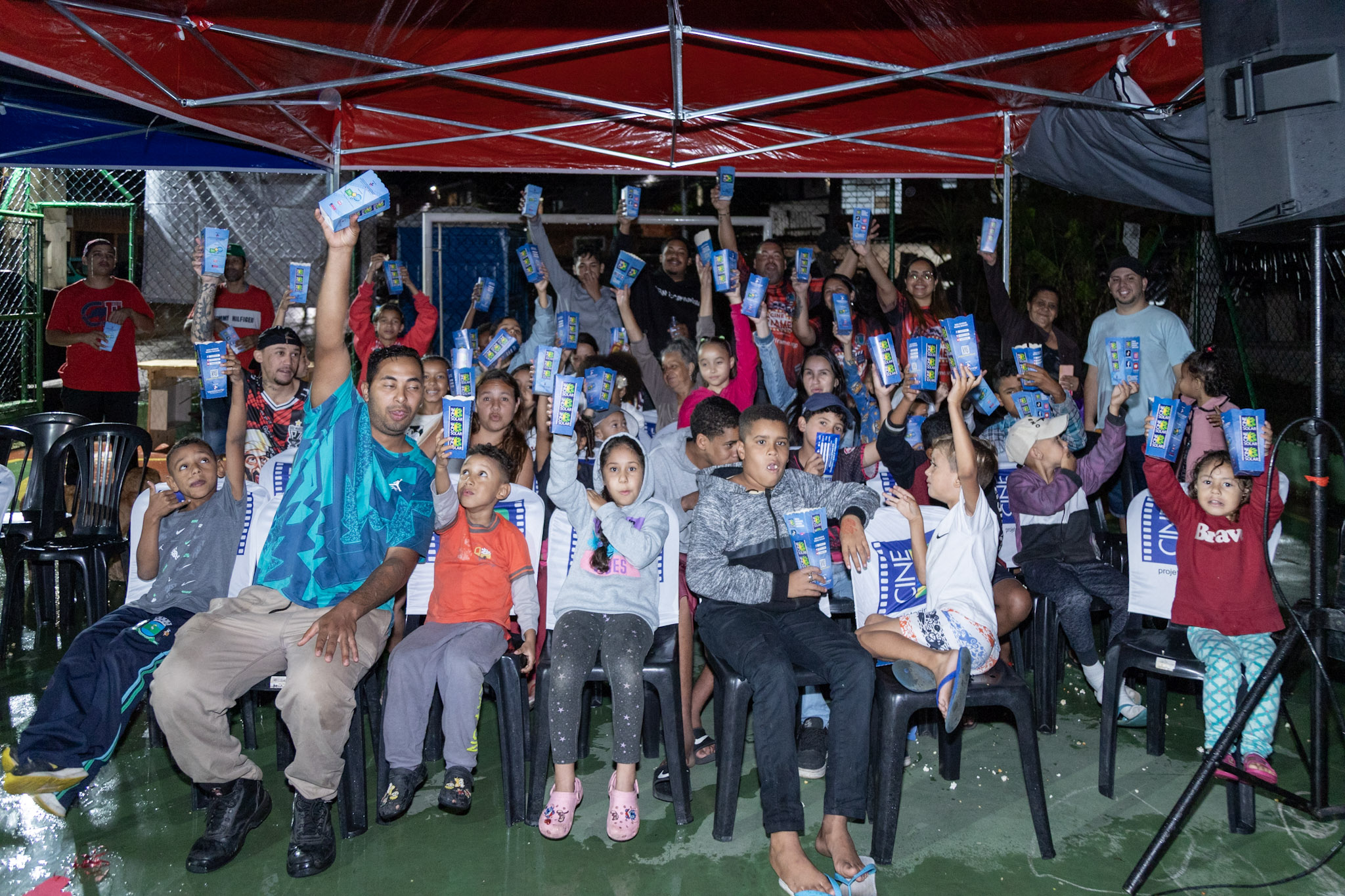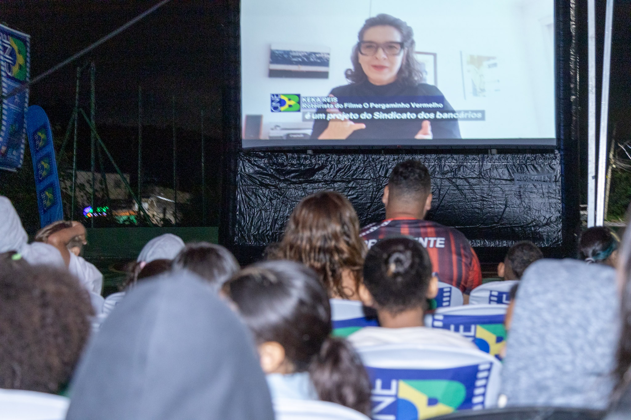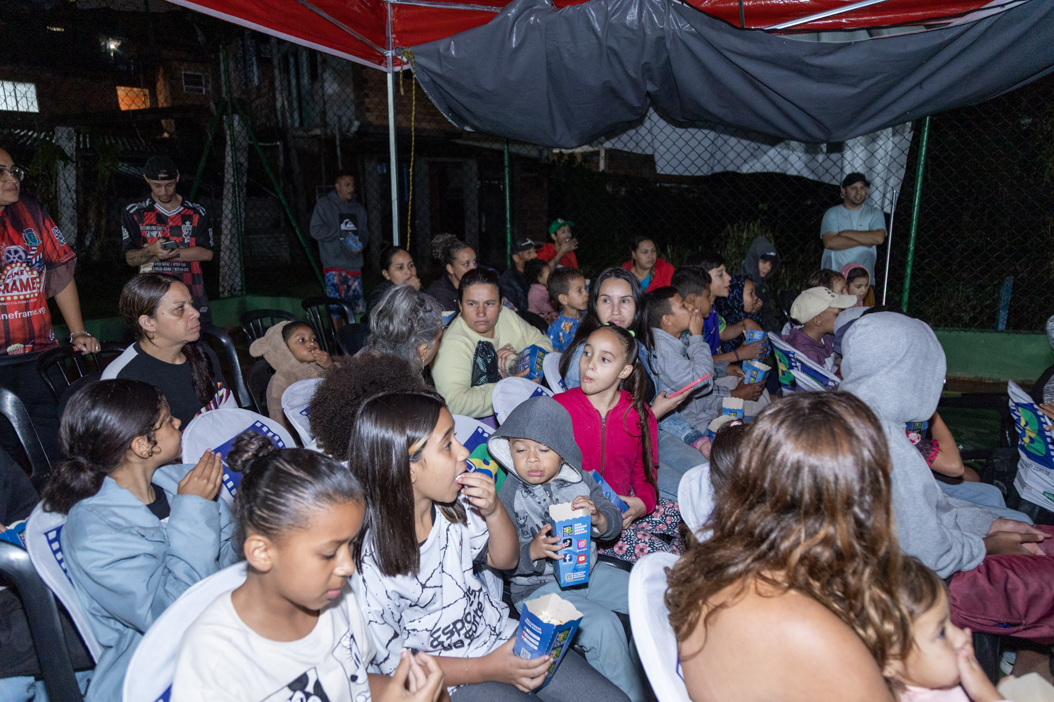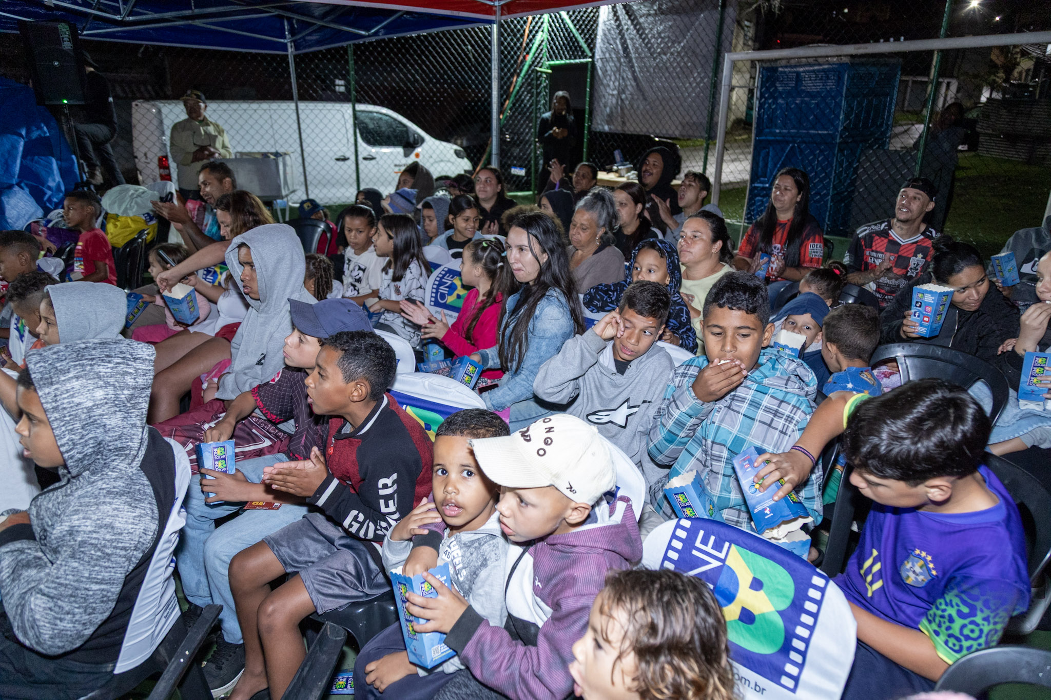 “Vim agradecer ao pessoal do CineB por essa cultura que estão trazendo pra nossa comunidade. É um projeto muito importante pra aproximar as crianças, pra gente ter mais união e lazer. É difícil ir ao cinema, então isso aqui é um presente.”