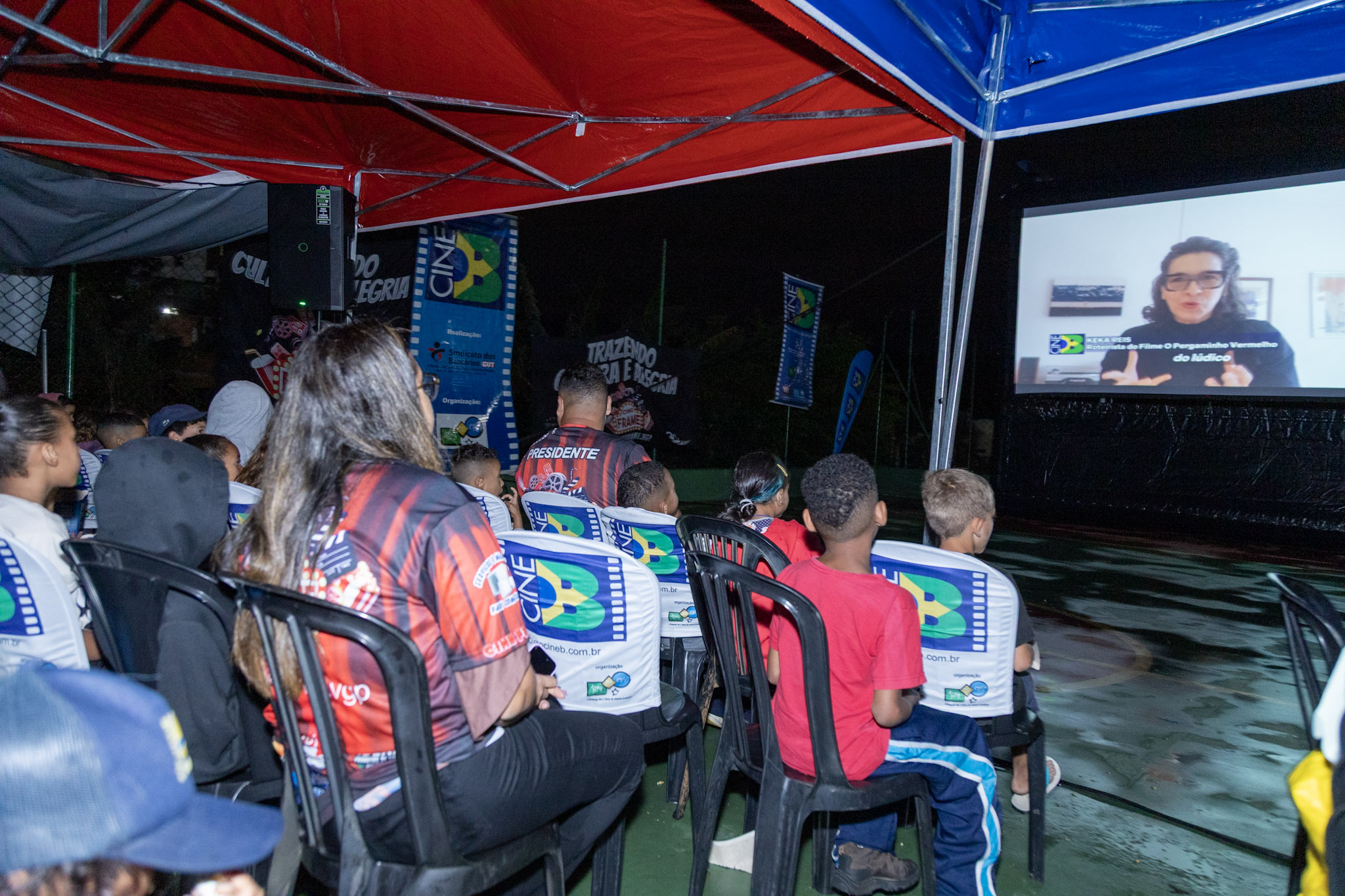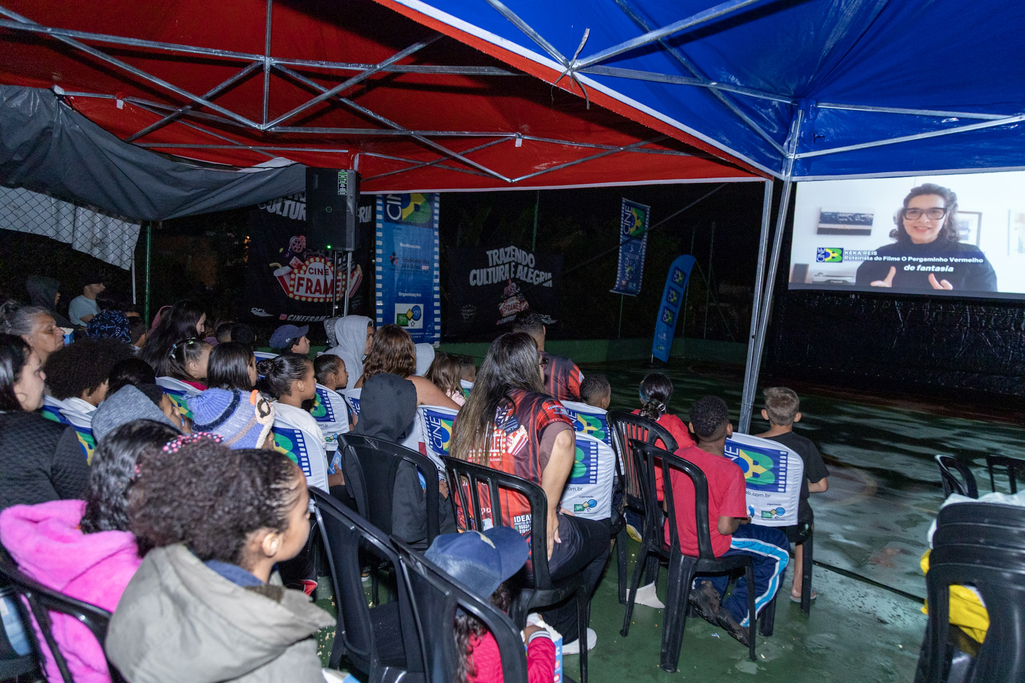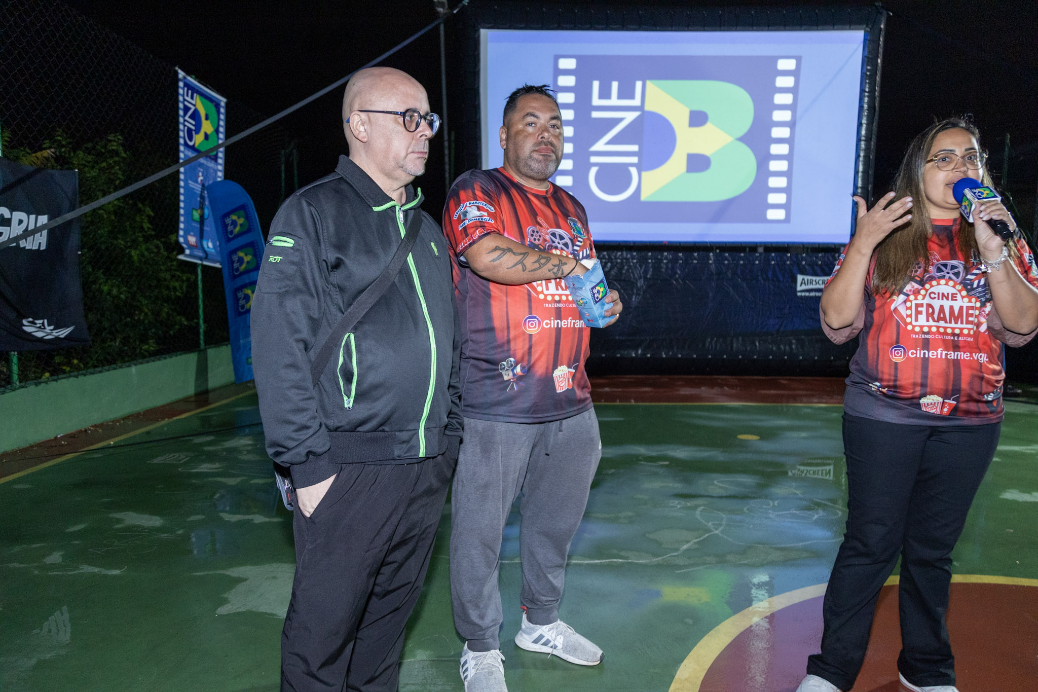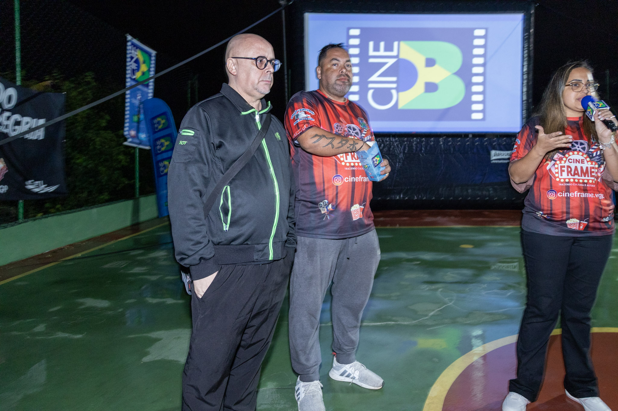 A abertura da sessão foi conduzida pelo coordenador do projeto, Cidalio Vieira, ao lado dos representantes do Cine Frame, Rogério Soares da Silva e Fabiana Gomes Oliveira, que juntos reforçaram o compromisso com a democratização da cultura e o acesso gratuito ao cinema nacional.