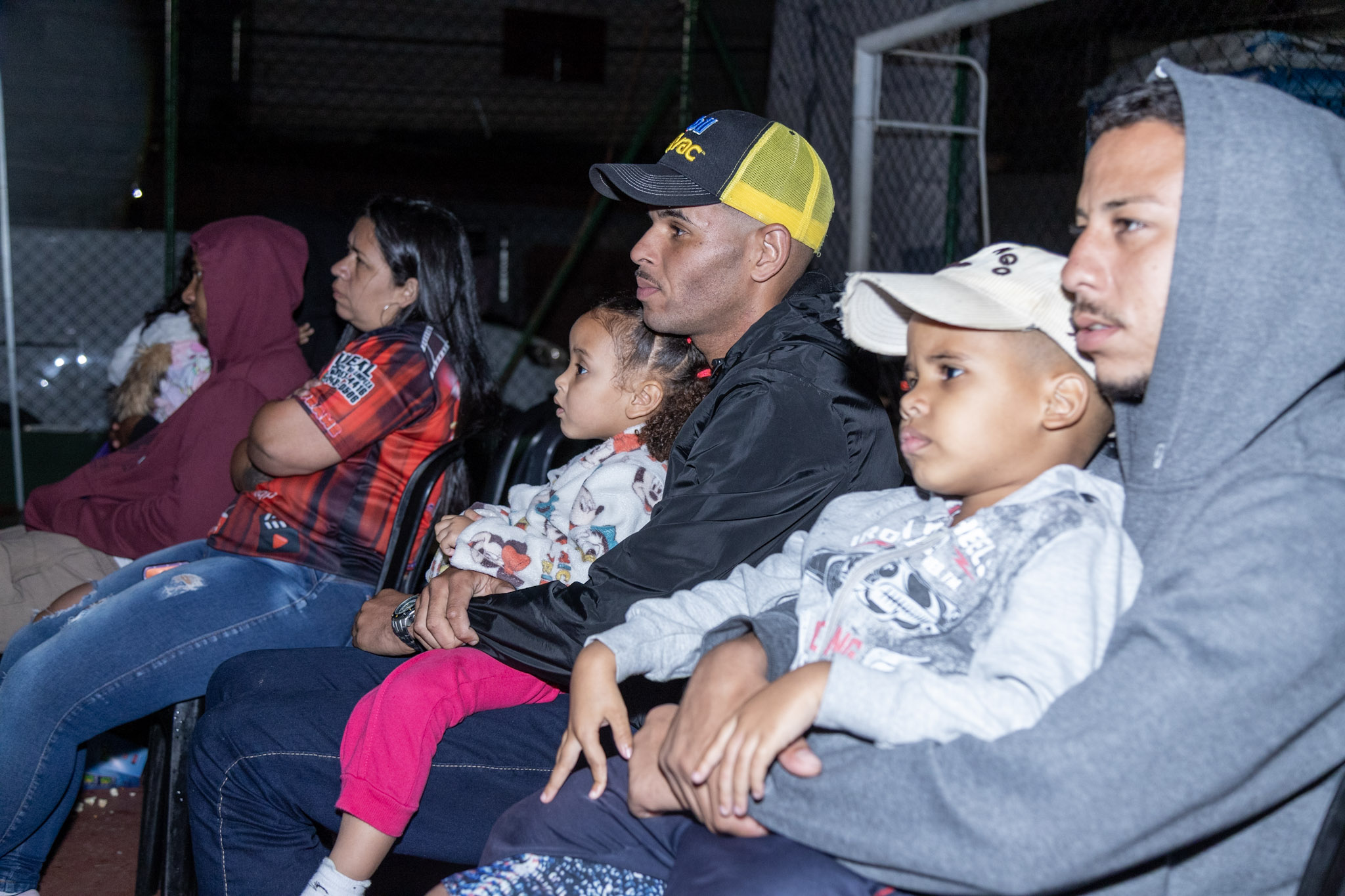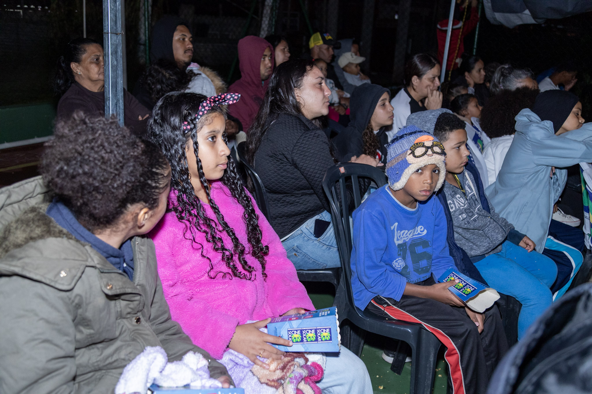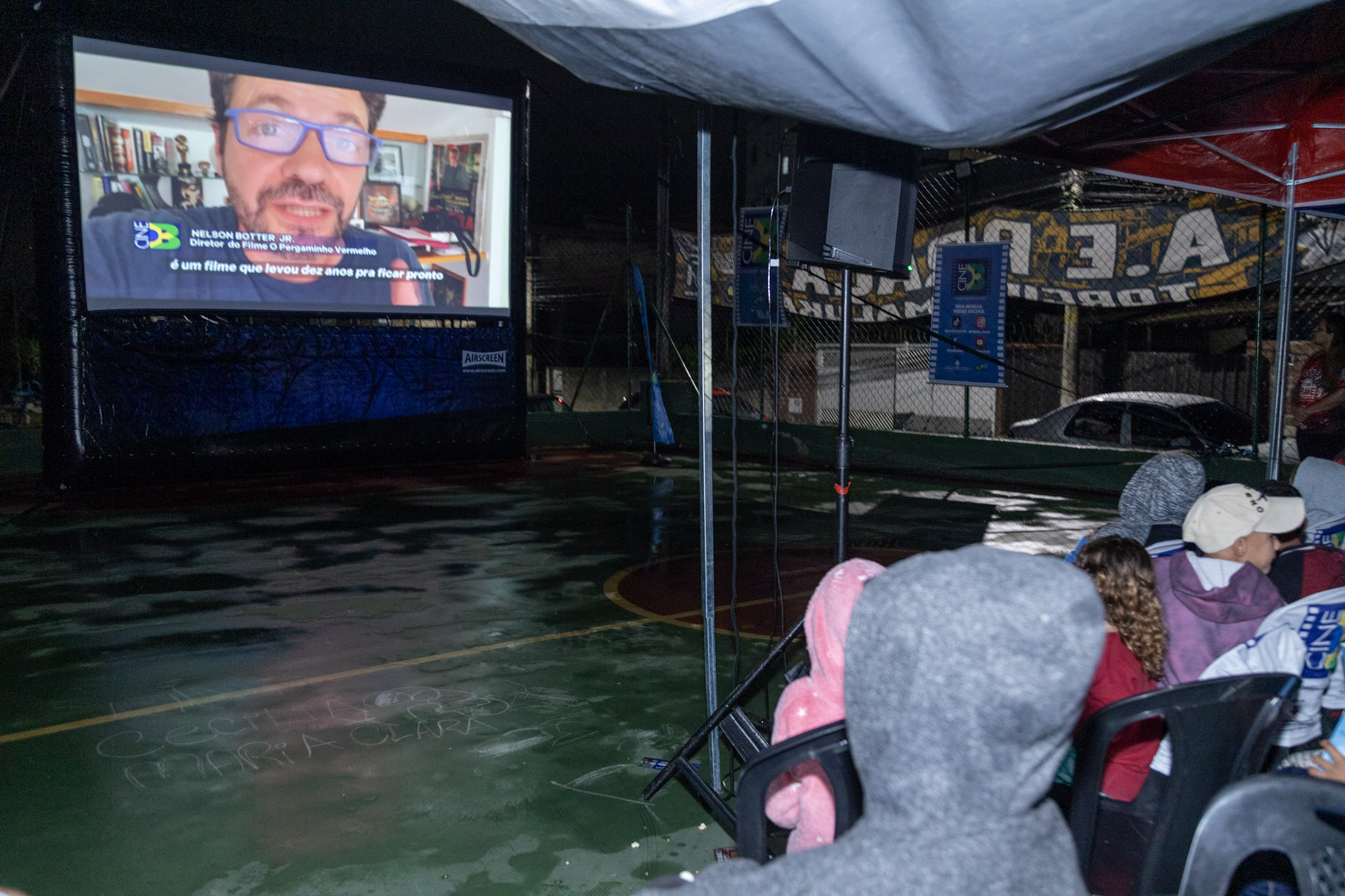 Mesmo com a chuva que caiu na noite de quarta-feira, a comunidade de Vargem Grande Paulista compareceu à Praça São Marcos, transformada em uma verdadeira sala de cinema a céu aberto. A pipoca do Seu Antonio, o aconchego das famílias e a energia das crianças aqueceram o público durante a exibição do longa O Pergaminho Vermelho, uma aventura fantástica sobre coragem, imaginação e autodescoberta.