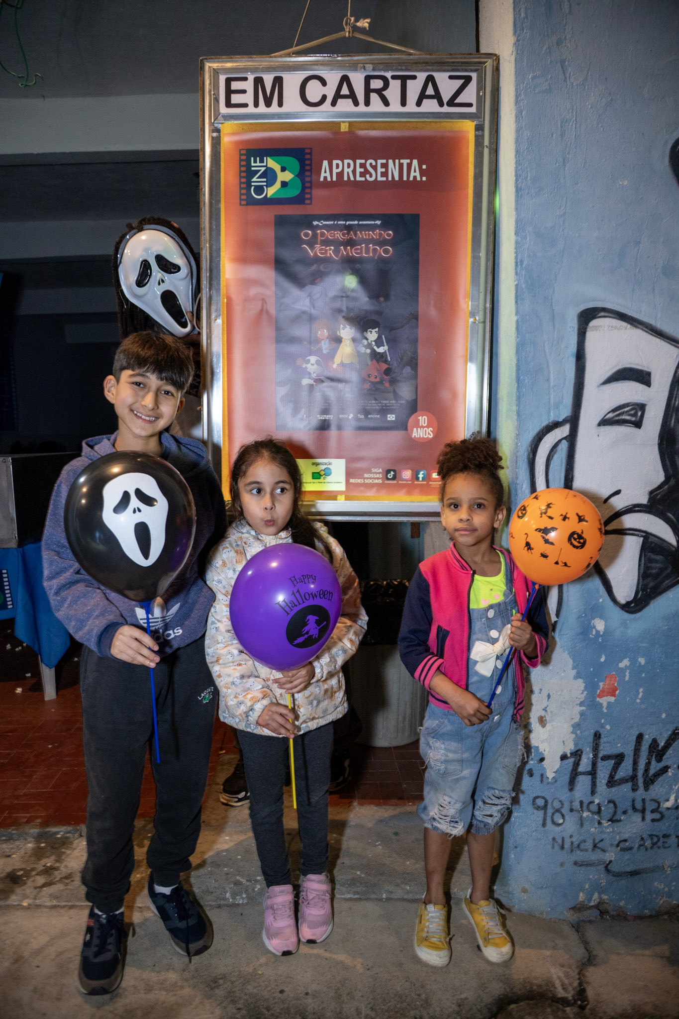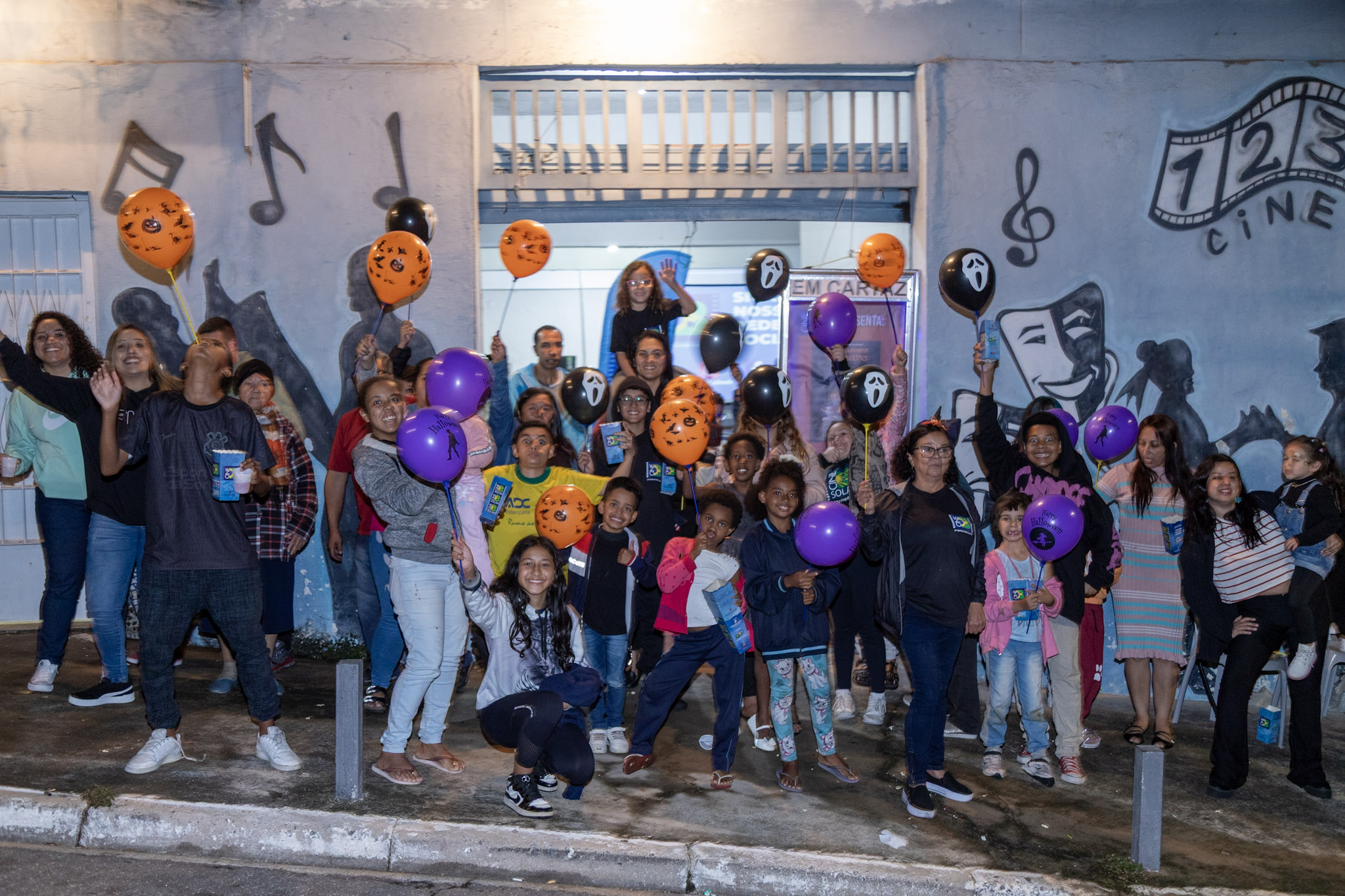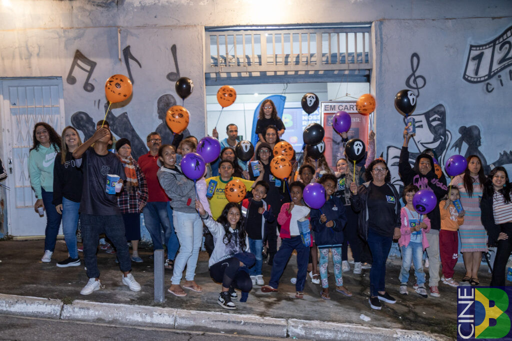 No dia 31 de outubro, em clima de Dia das Bruxas, o CineB retornou à Sociedade Amigos da Vila Rica, zona leste de São Paulo, para mais uma sessão gratuita de cinema brasileiro. A parceria entre o projeto e o território já soma 18 exibições ao longo dos anos — mas, pela primeira vez, o local recebeu um filme infantil, transformando o espaço em uma sala de cinema repleta de crianças, educadores, familiares e frequentadores da associação.
