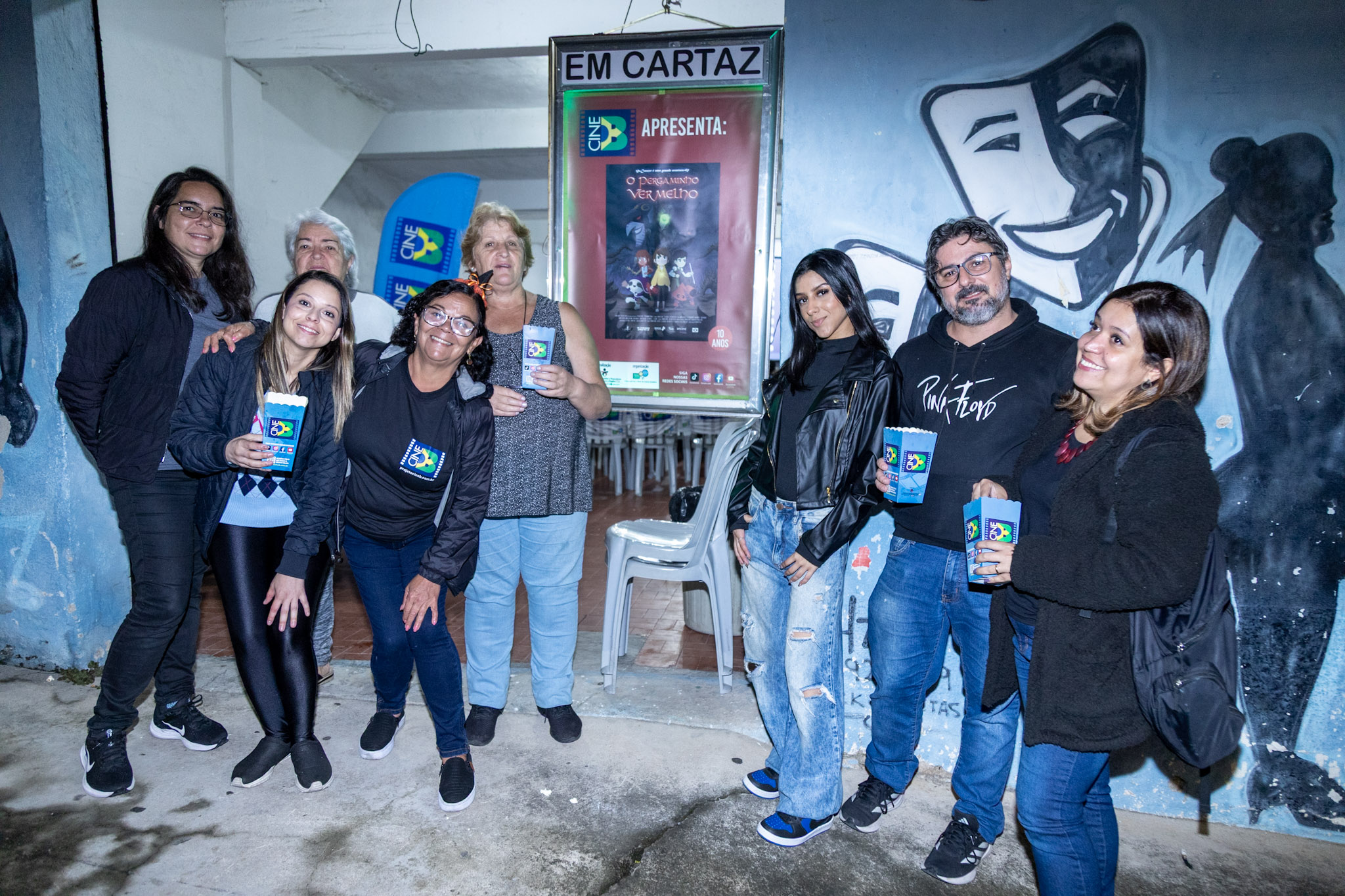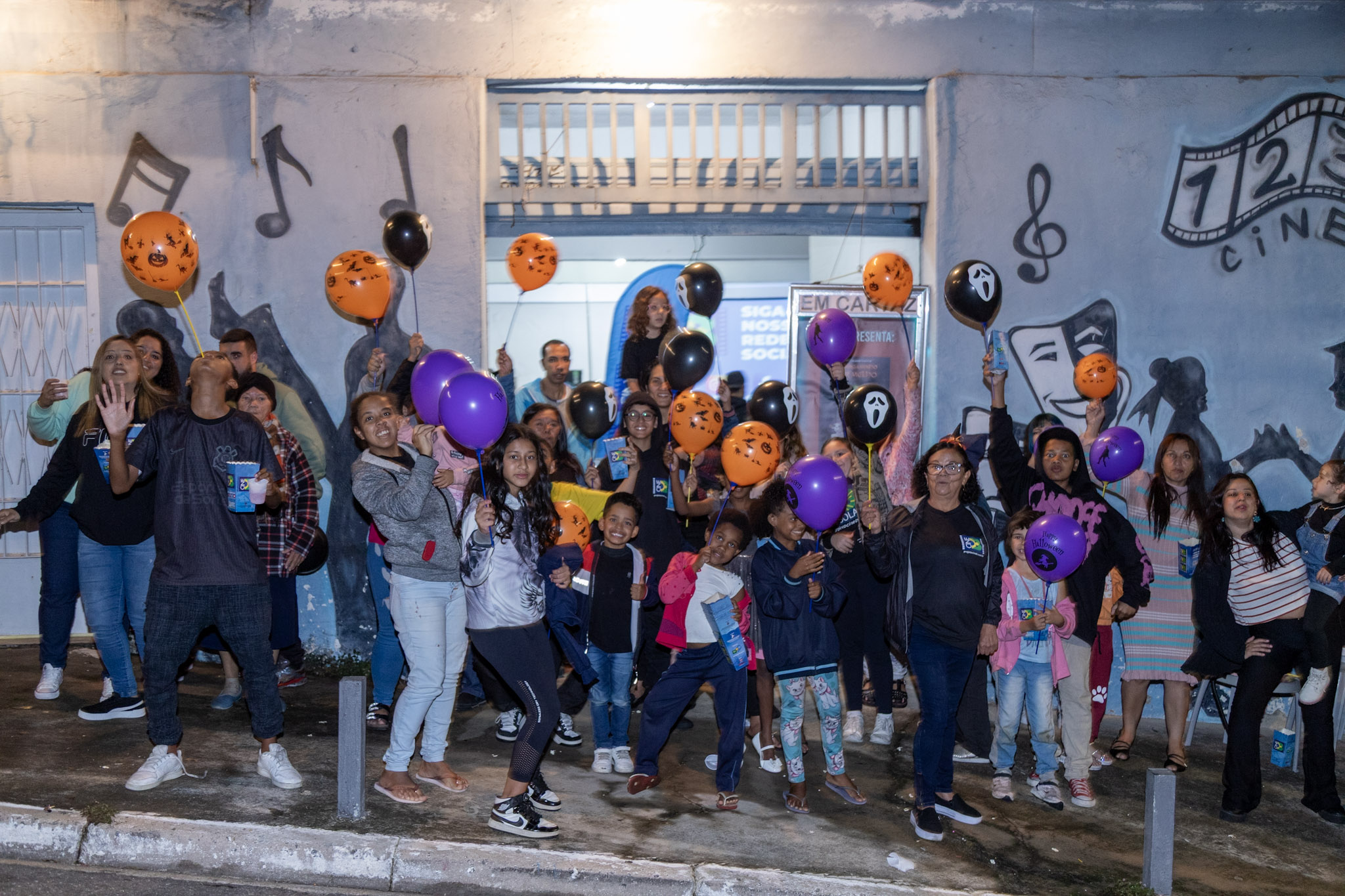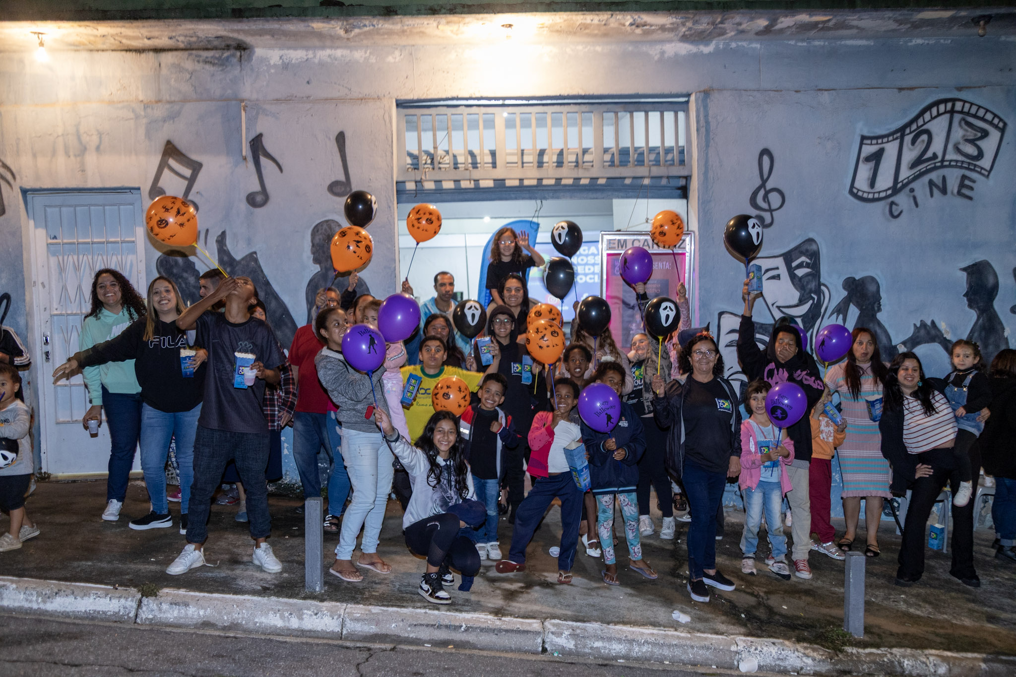 No dia 31 de outubro, em clima de Dia das Bruxas, o CineB retornou à Sociedade Amigos da Vila Rica, zona leste de São Paulo, para mais uma sessão gratuita de cinema brasileiro. A parceria entre o projeto e o território já soma 18 exibições ao longo dos anos — mas, pela primeira vez, o local recebeu um filme infantil, transformando o espaço em uma sala de cinema repleta de crianças, educadores, familiares e frequentadores da associação.