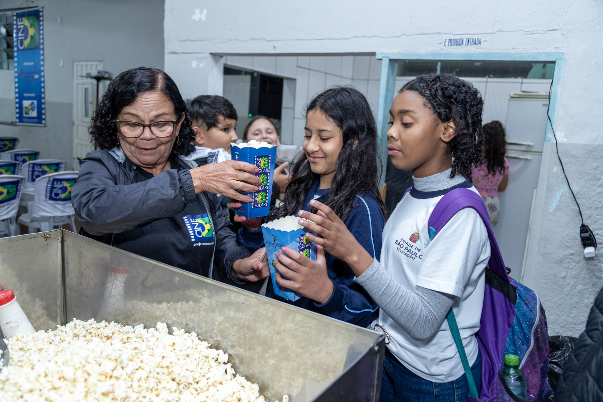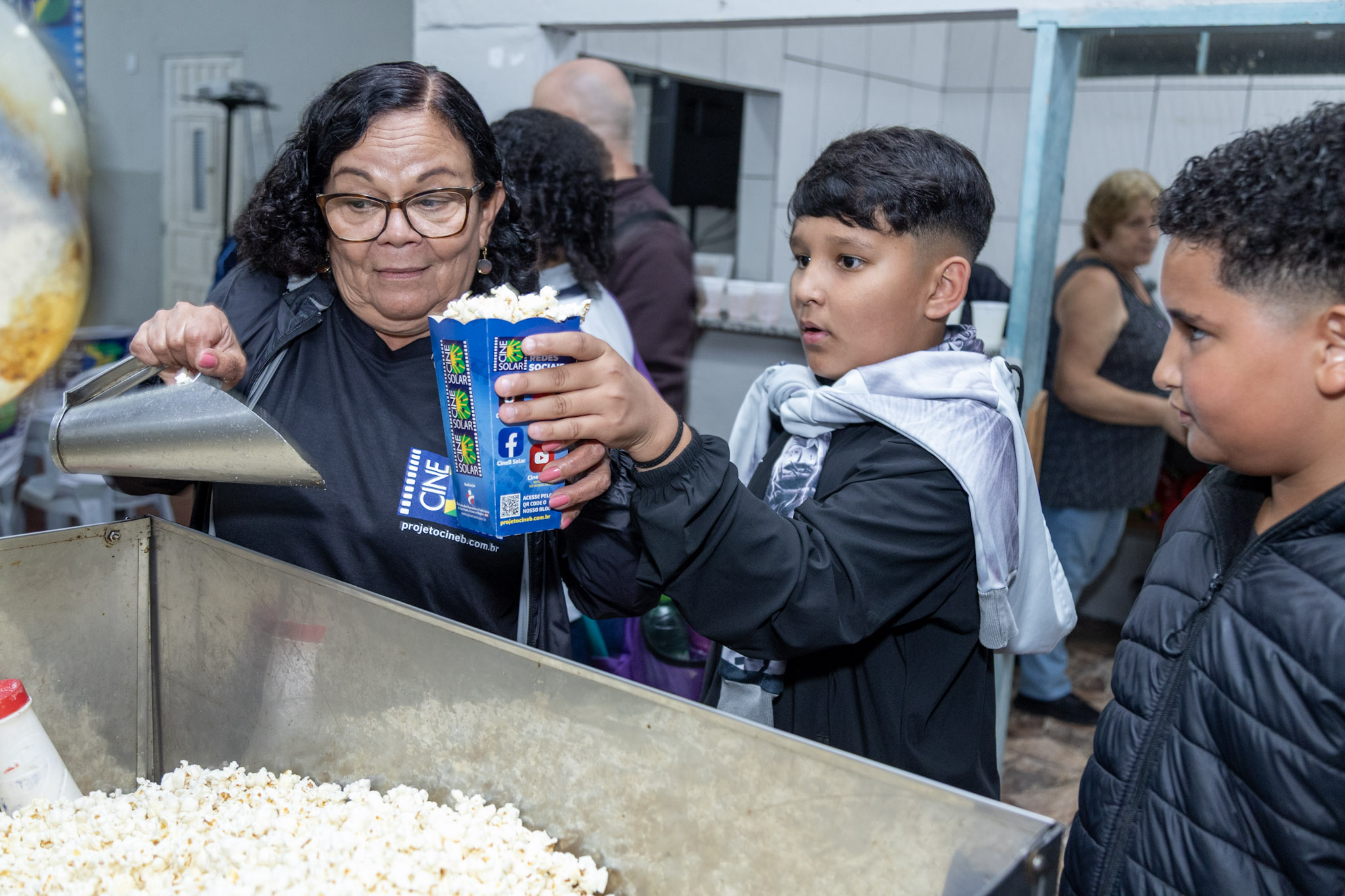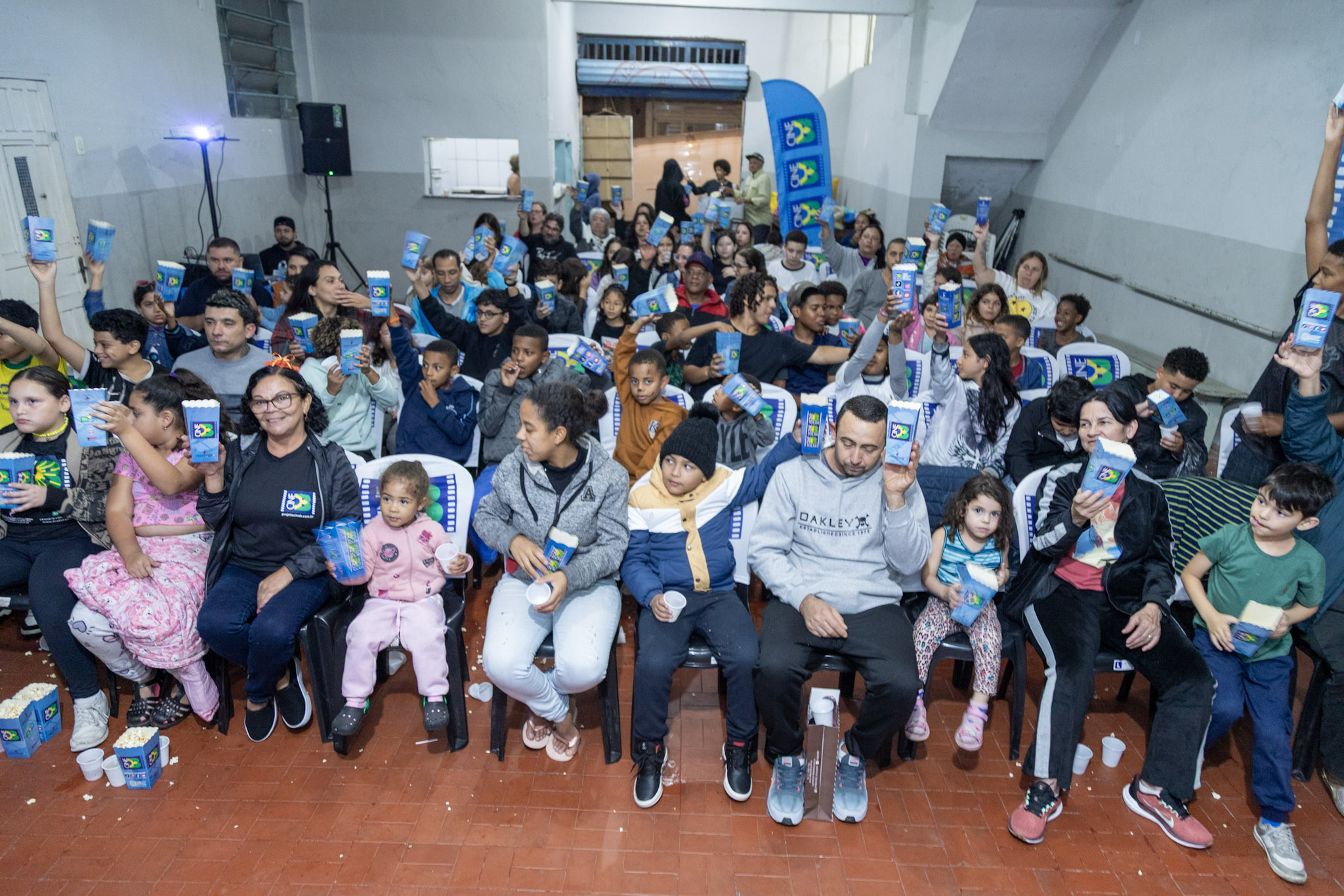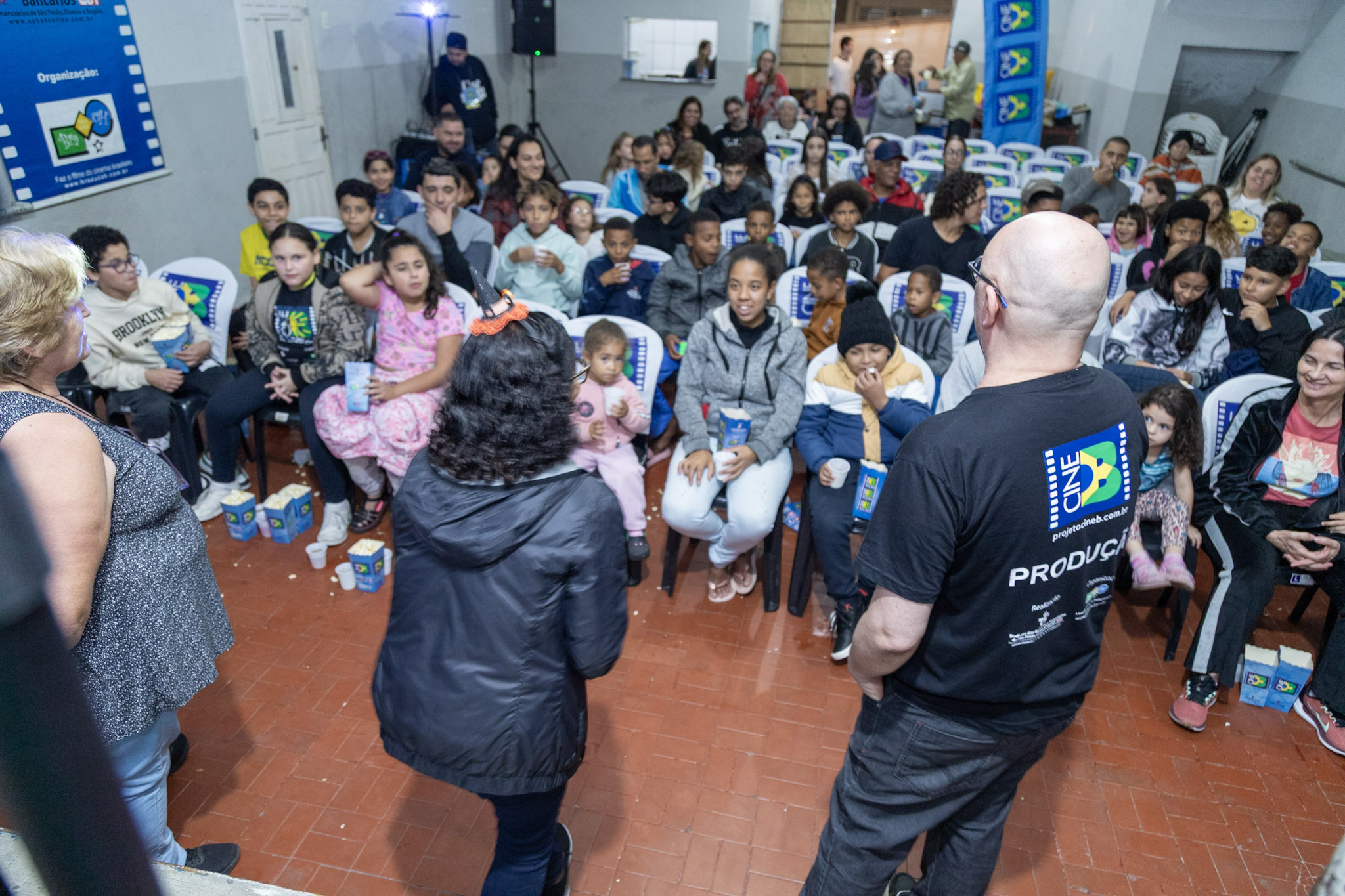 Antes da exibição, foi transmitido um vídeo especial com mensagens do diretor do filme, Nelson Botter, e da roteirista Keka Reis, que enviaram um recado carinhoso às crianças da Vila Rica. A pipoca do Seu Antônio garantiu o aconchego da plateia, que acompanhou a sessão com atenção e entusiasmo.