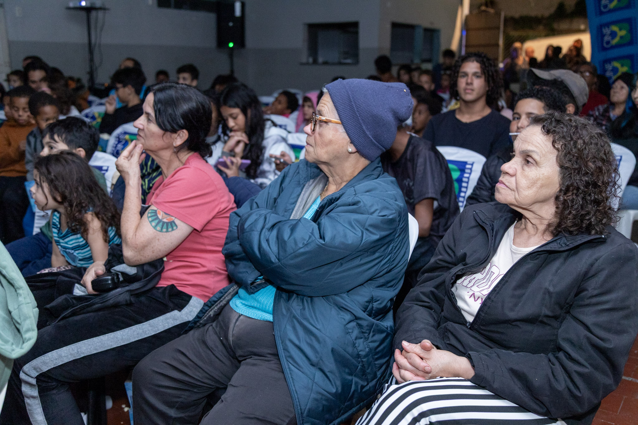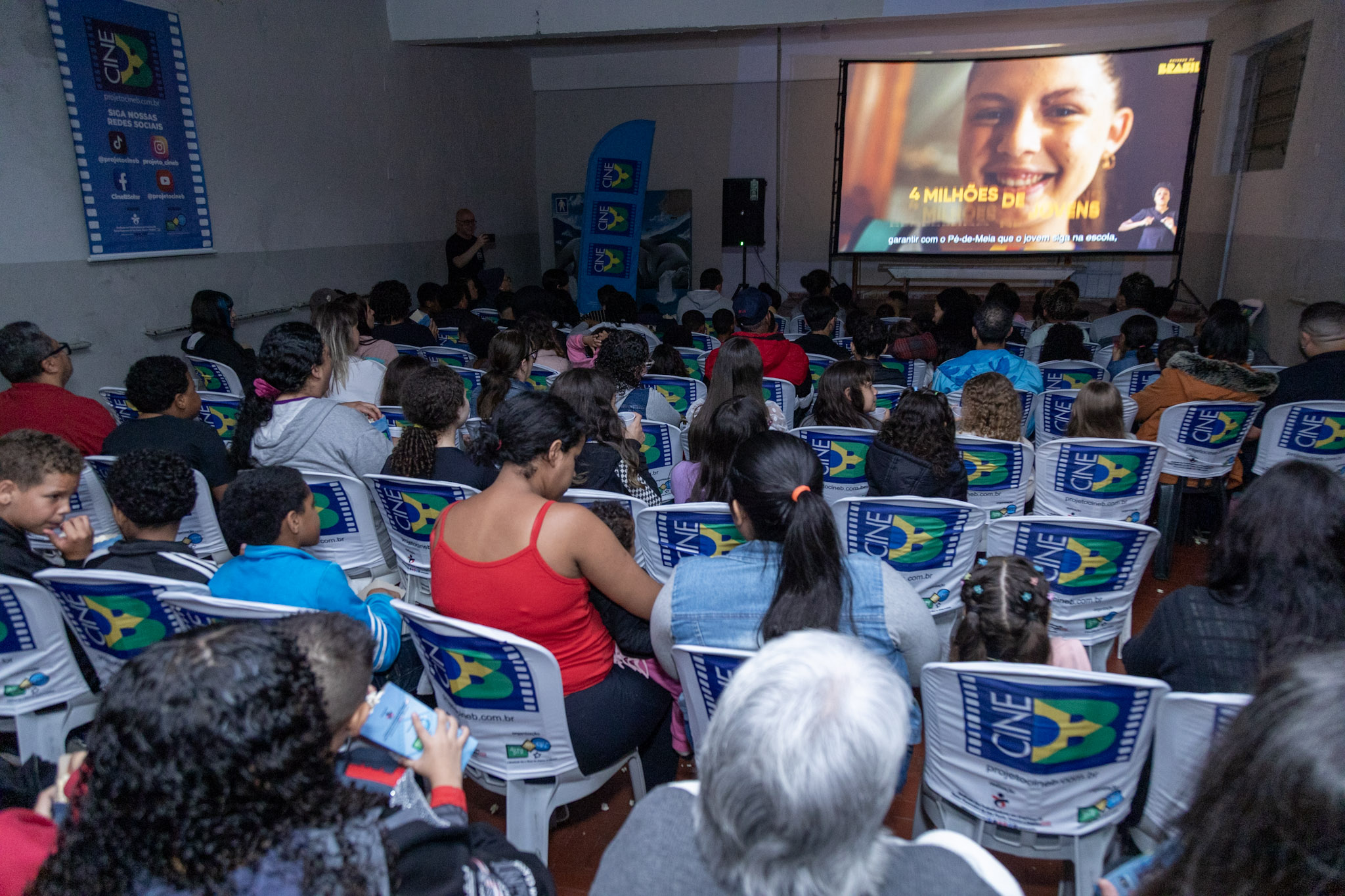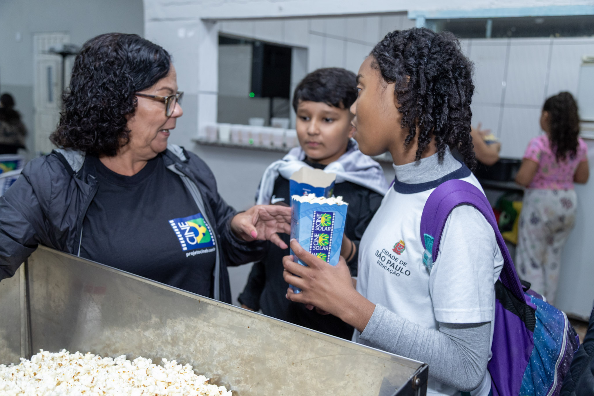 Antes da exibição, foi transmitido um vídeo especial com mensagens do diretor do filme, Nelson Botter, e da roteirista Keka Reis, que enviaram um recado carinhoso às crianças da Vila Rica. A pipoca do Seu Antônio garantiu o aconchego da plateia, que acompanhou a sessão com atenção e entusiasmo.