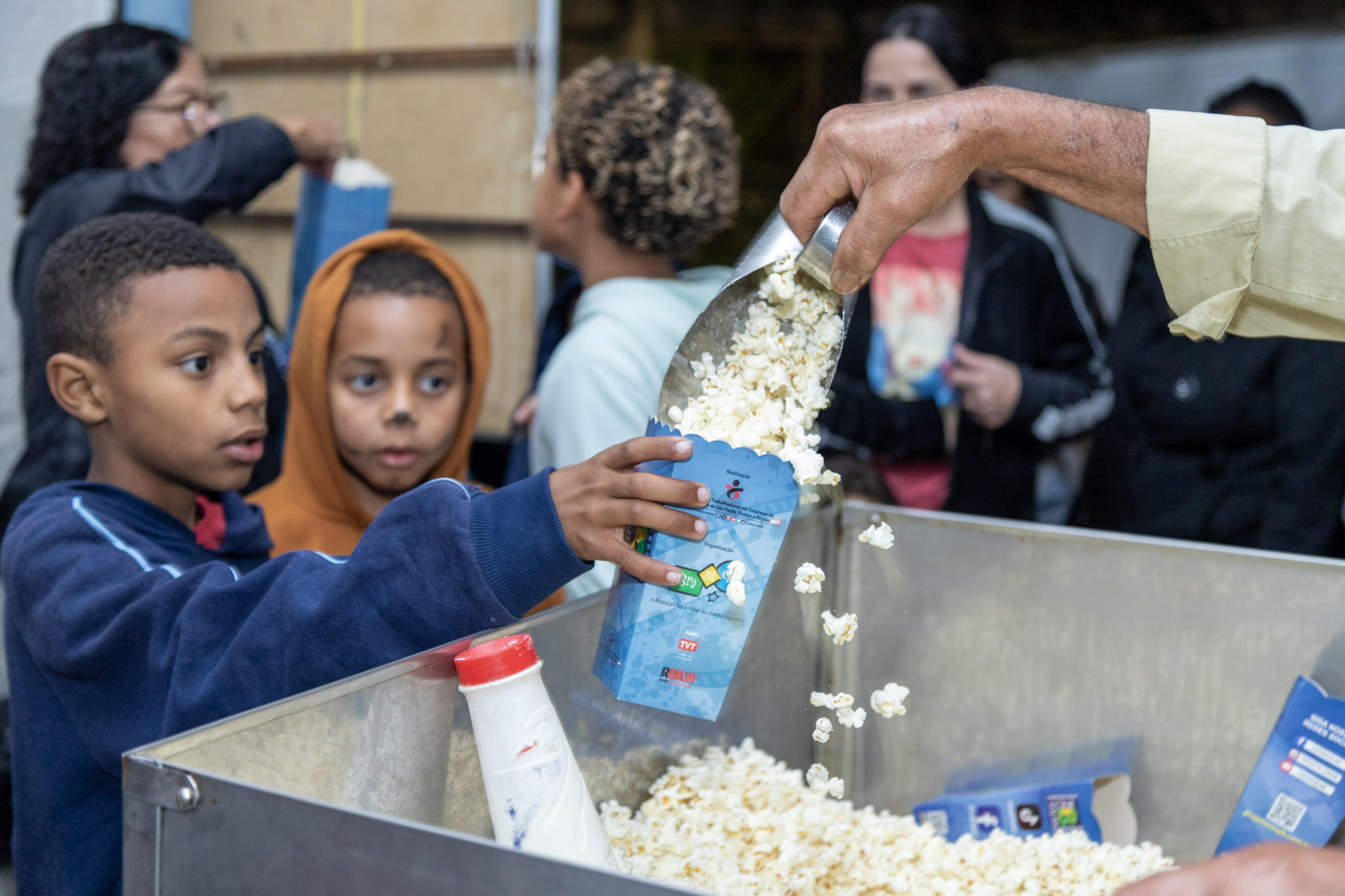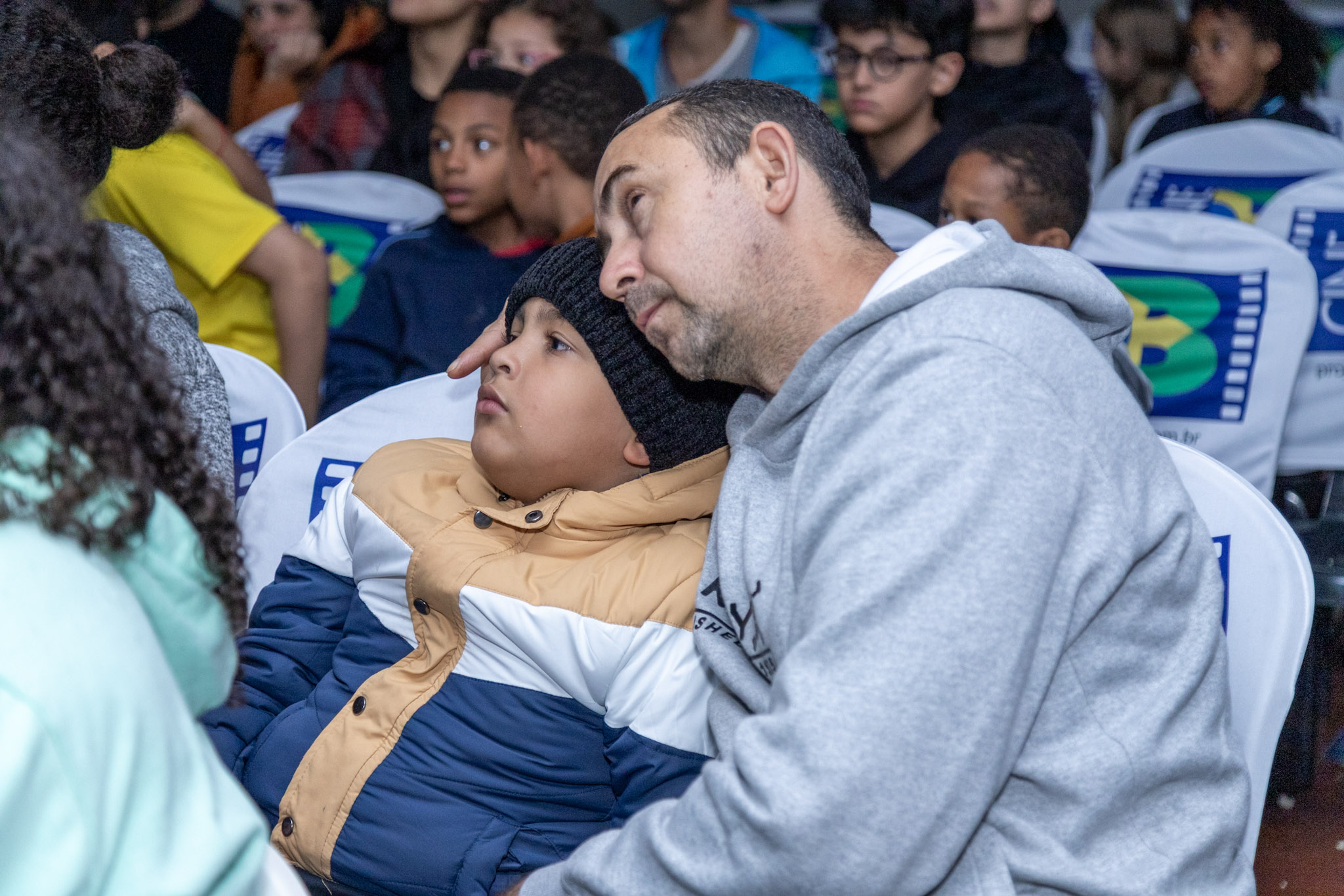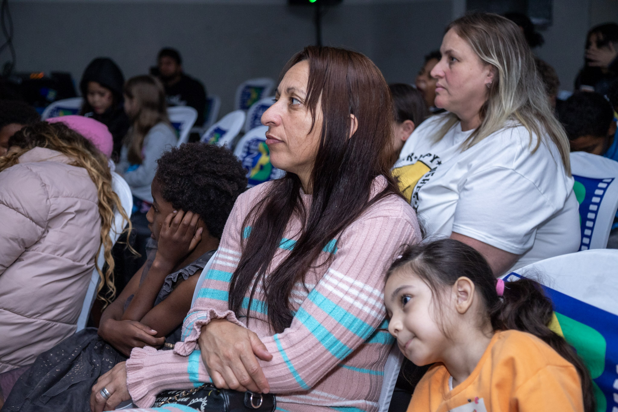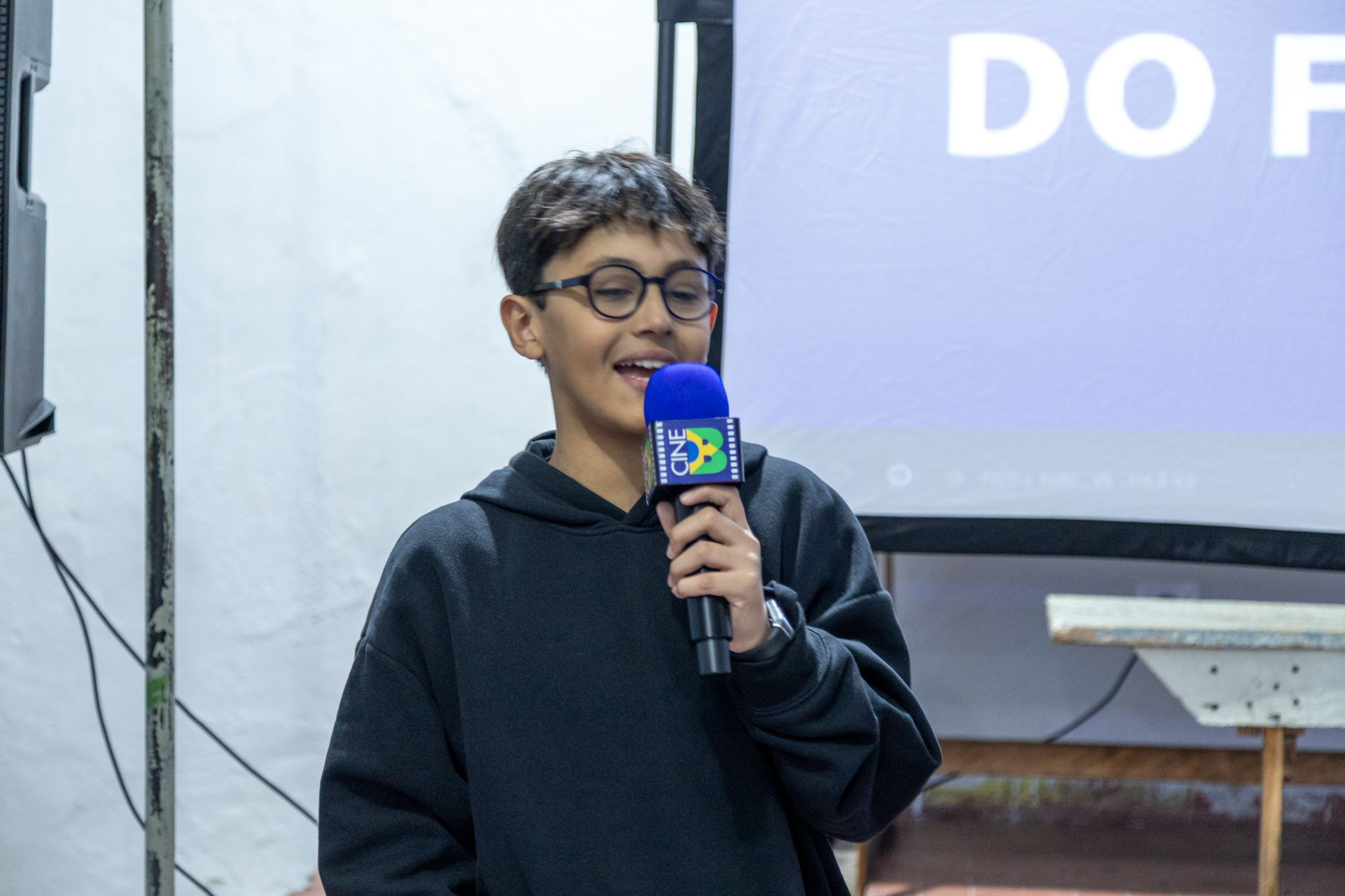 Antes da exibição, foi transmitido um vídeo especial com mensagens do diretor do filme, Nelson Botter, e da roteirista Keka Reis, que enviaram um recado carinhoso às crianças da Vila Rica. A pipoca do Seu Antônio garantiu o aconchego da plateia, que acompanhou a sessão com atenção e entusiasmo.