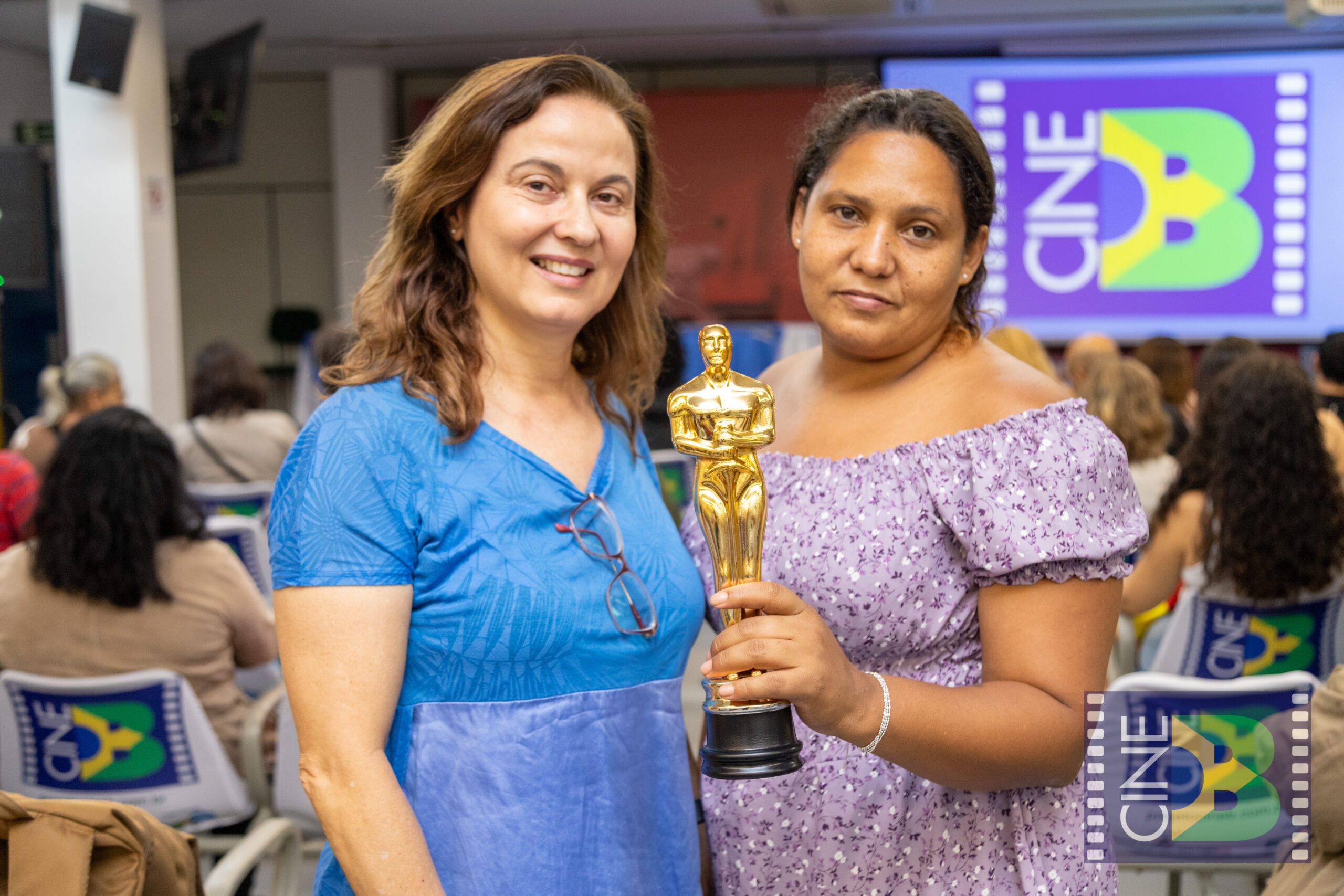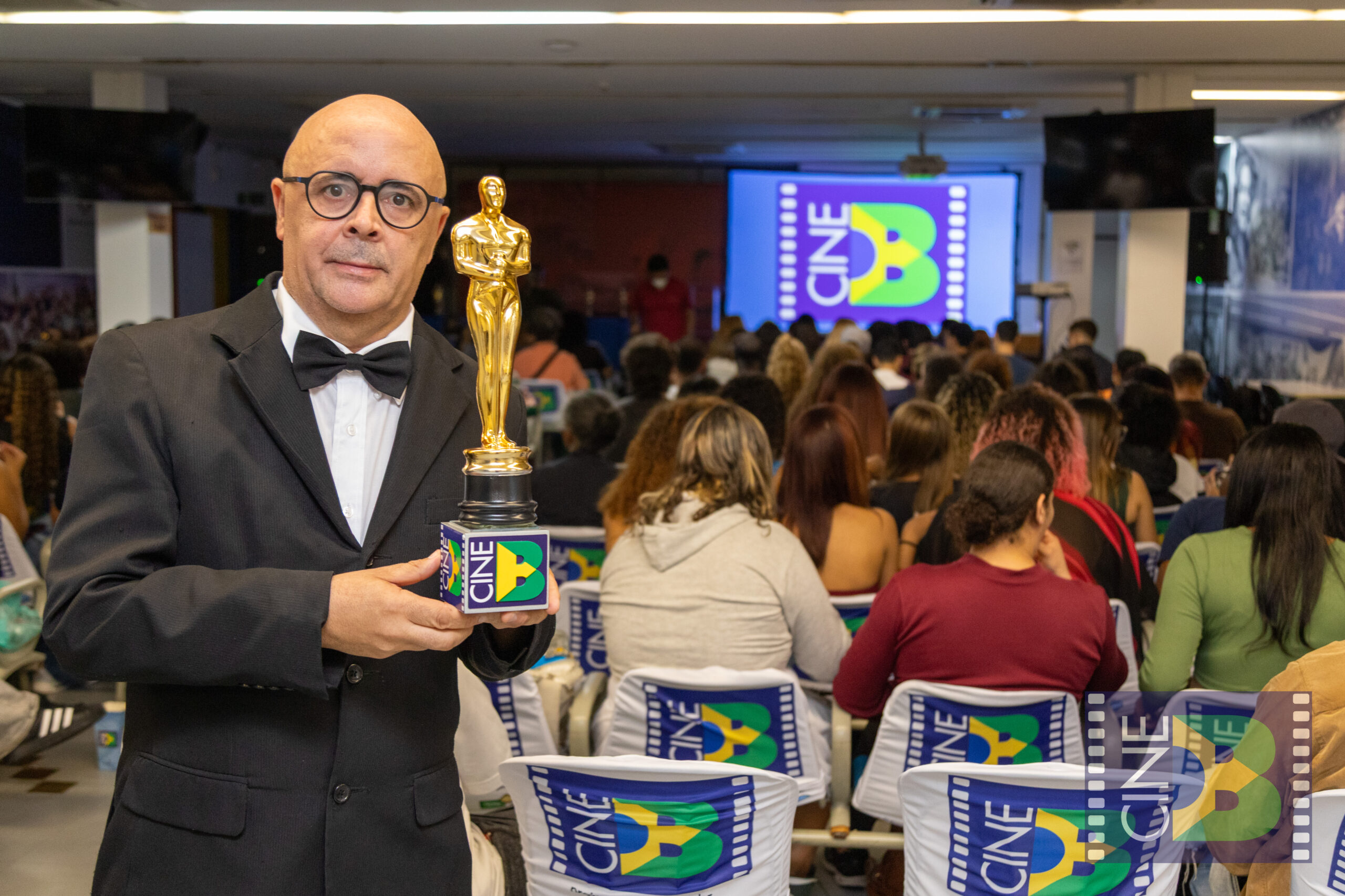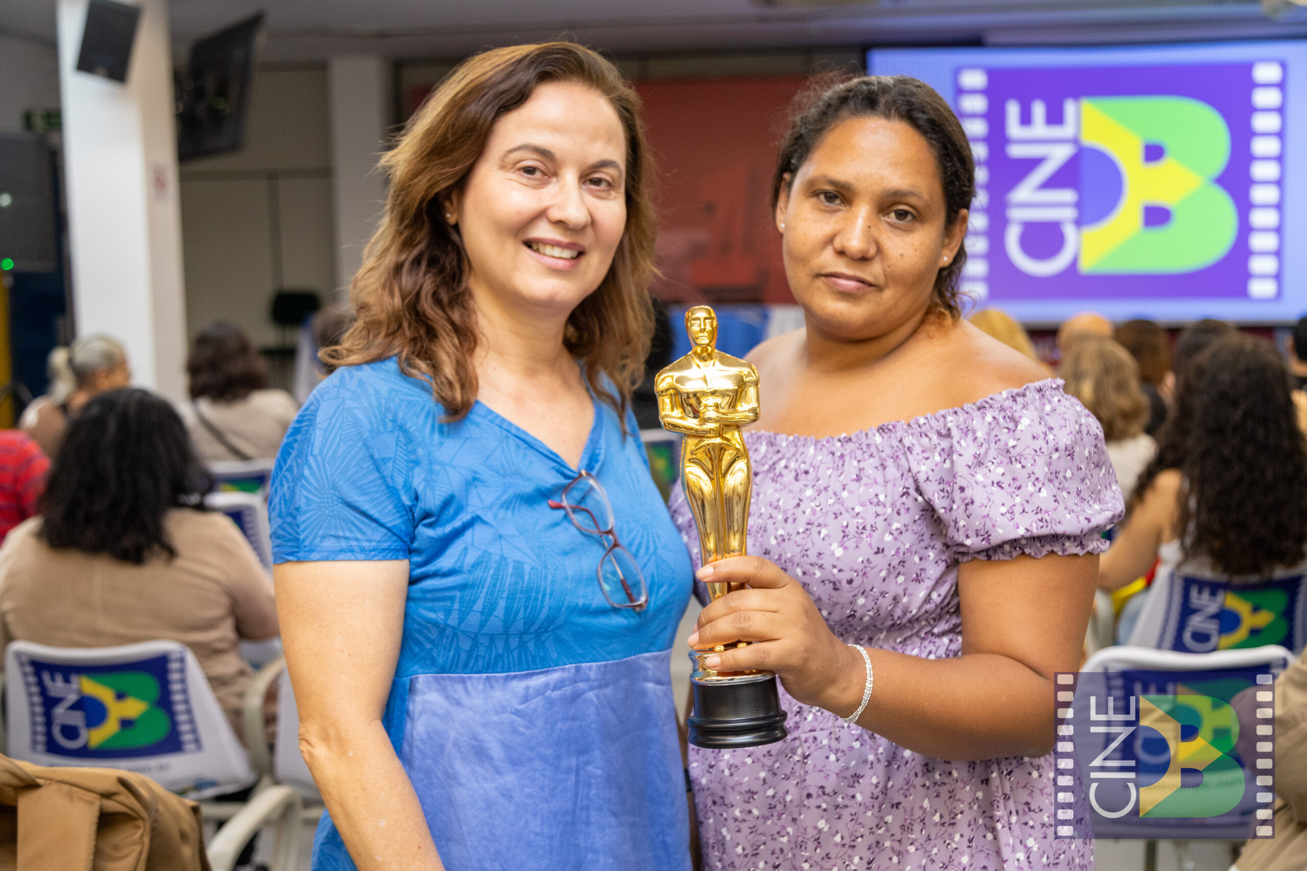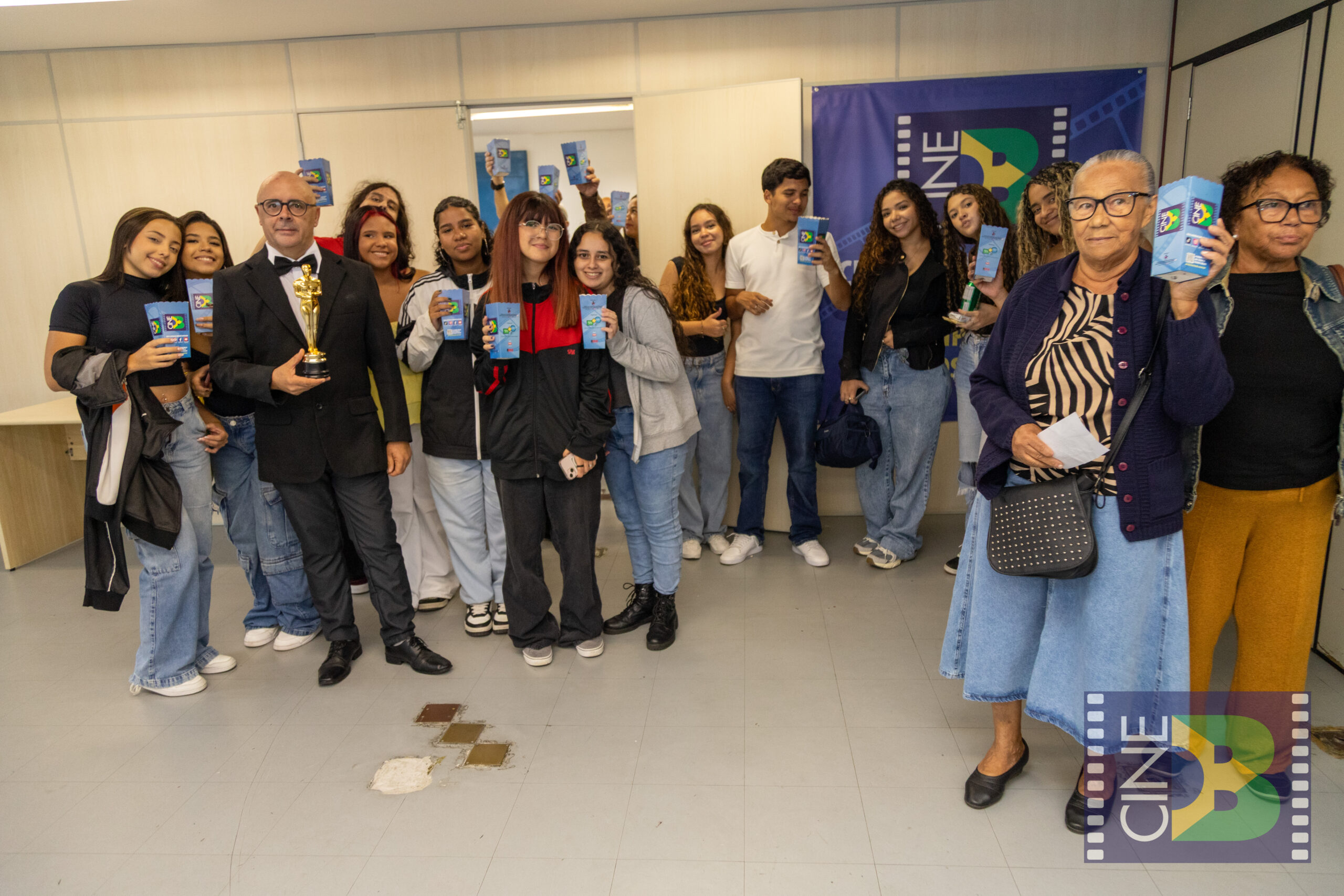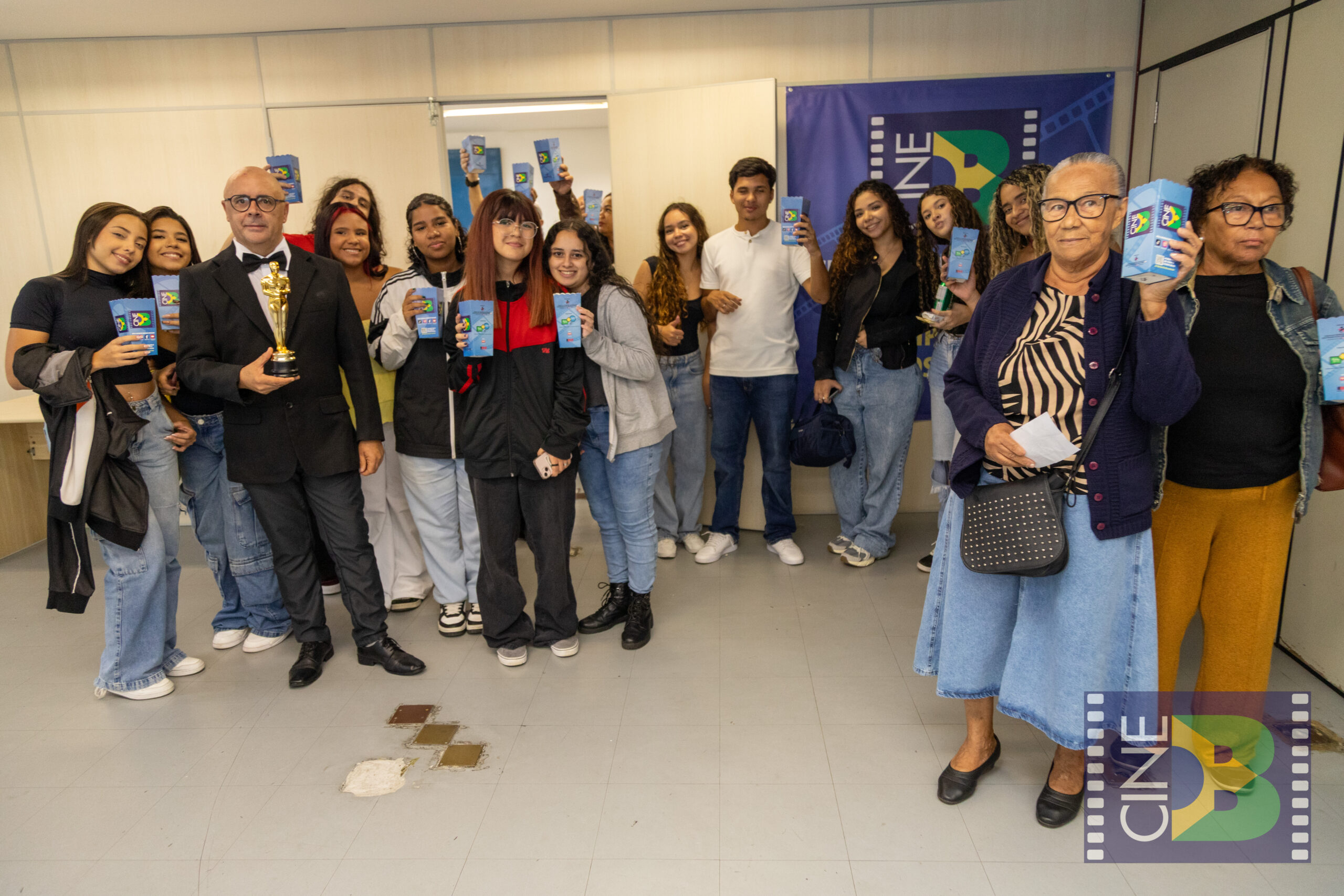 A abertura das sessões foi conduzida por Cidálio Vieira Santos, coordenador do CineB, que destacou a trajetória do projeto e a importância de levar o cinema brasileiro para diferentes públicos. Em clima da semana do Oscar, representantes das escolas participaram simbolicamente da abertura segurando uma estatueta comemorativa, celebrando o momento de destaque do cinema nacional no cenário internacional.