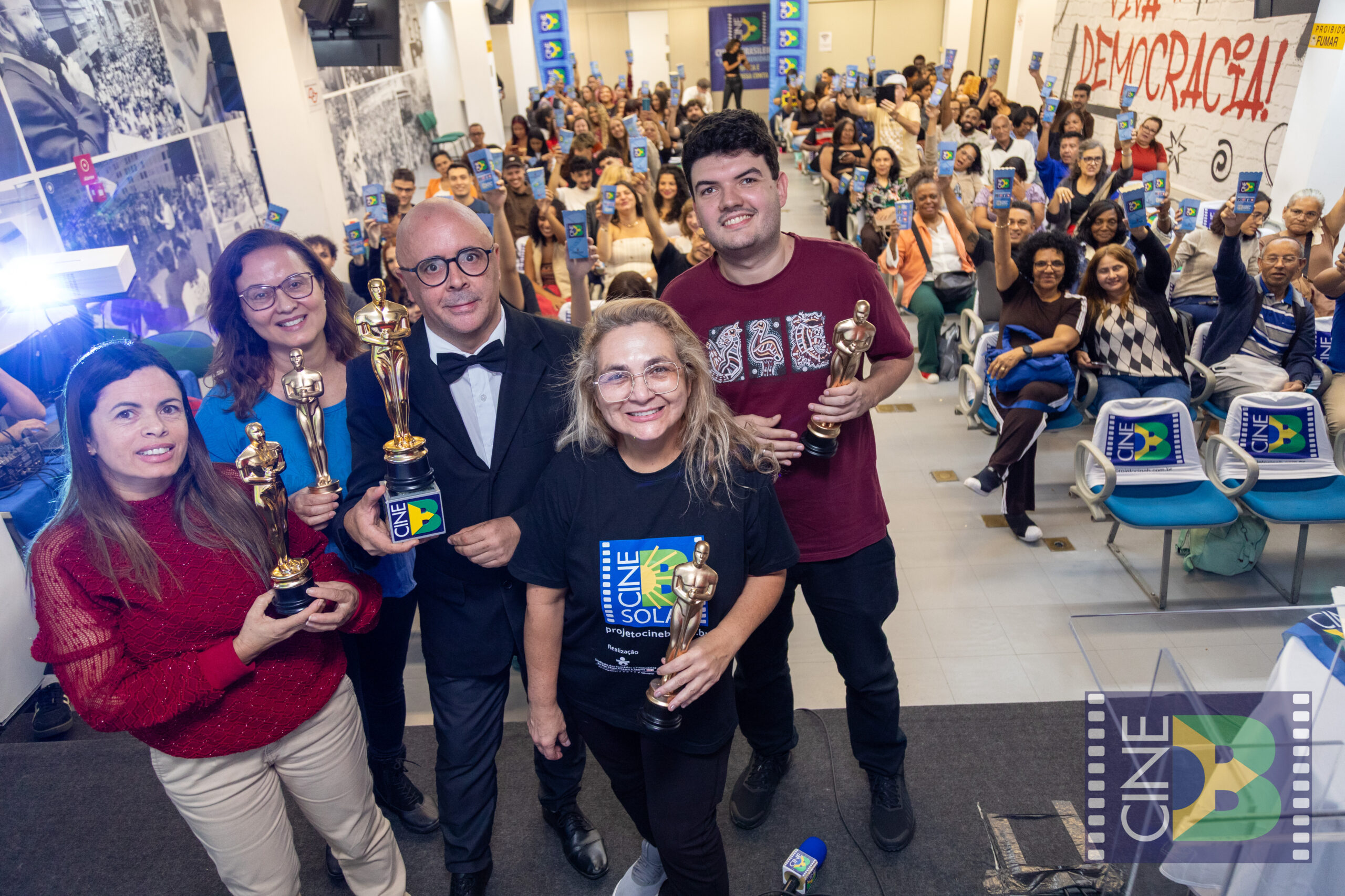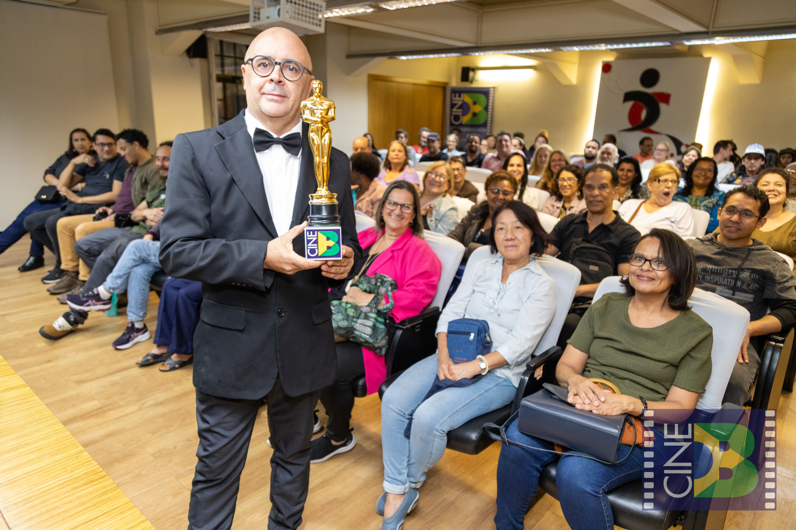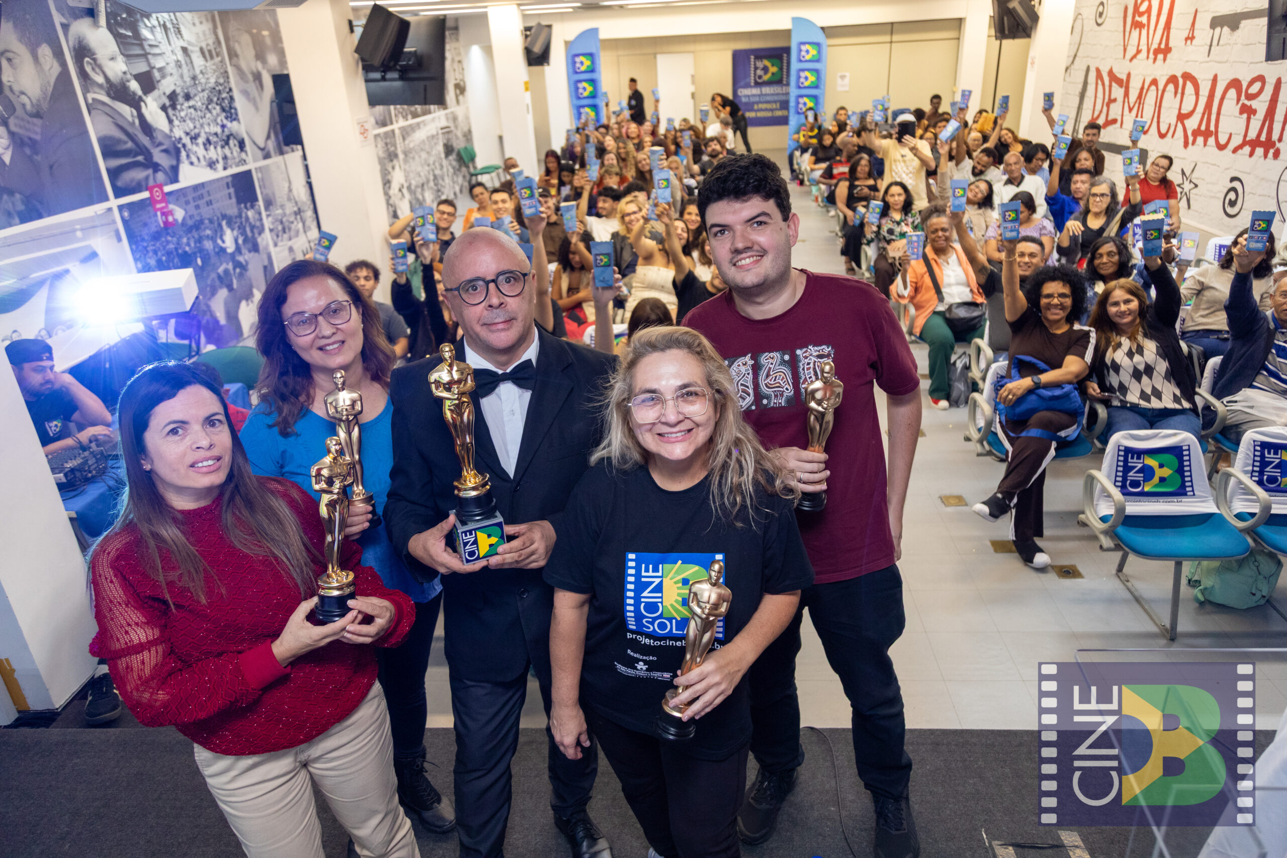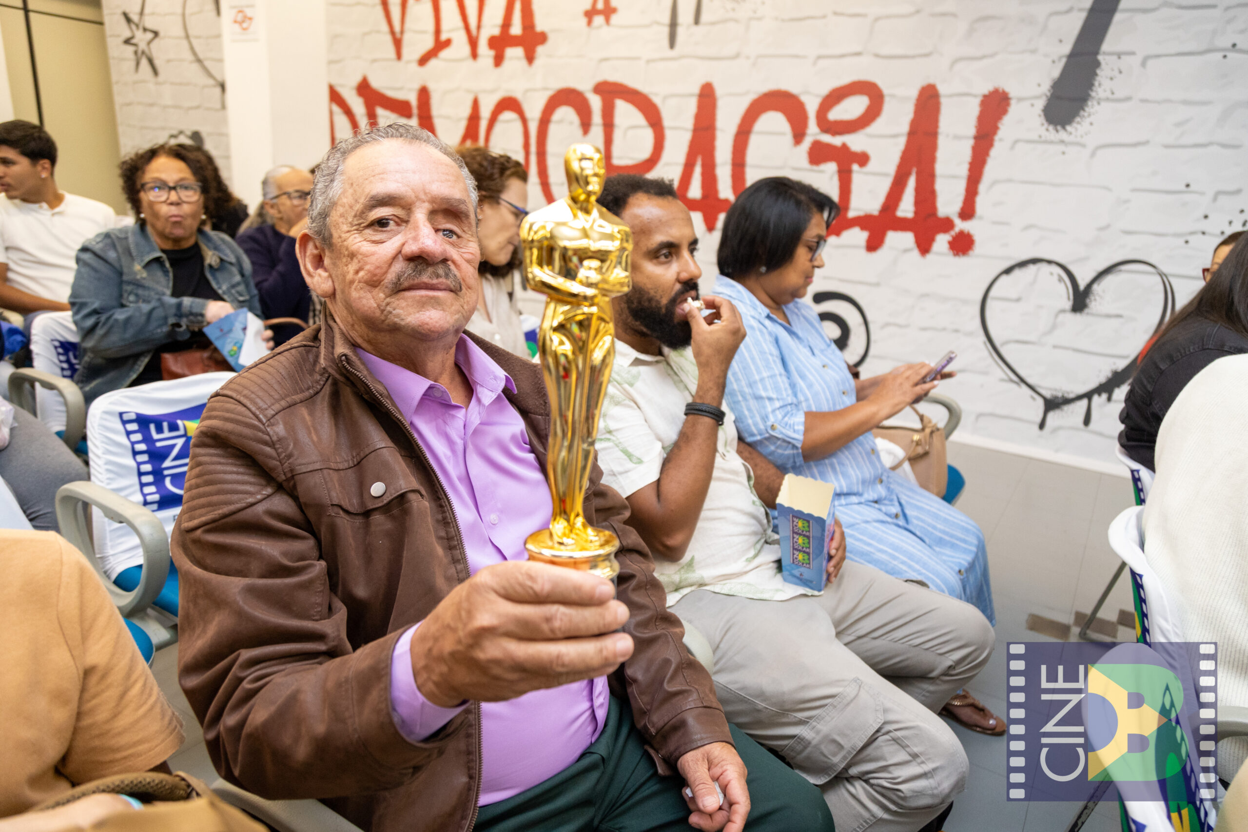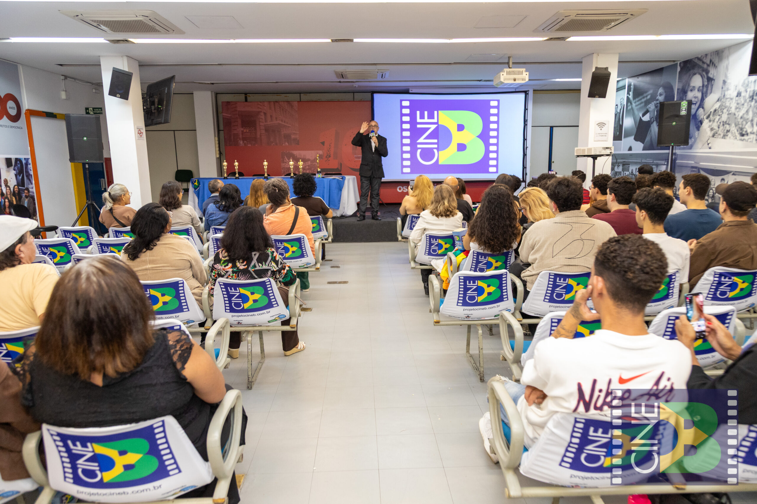A abertura das sessões foi conduzida por Cidálio Vieira Santos, coordenador do CineB, que destacou a trajetória do projeto e a importância de levar o cinema brasileiro para diferentes públicos. Em clima da semana do Oscar, representantes das escolas participaram simbolicamente da abertura segurando uma estatueta comemorativa, celebrando o momento de destaque do cinema nacional no cenário internacional.