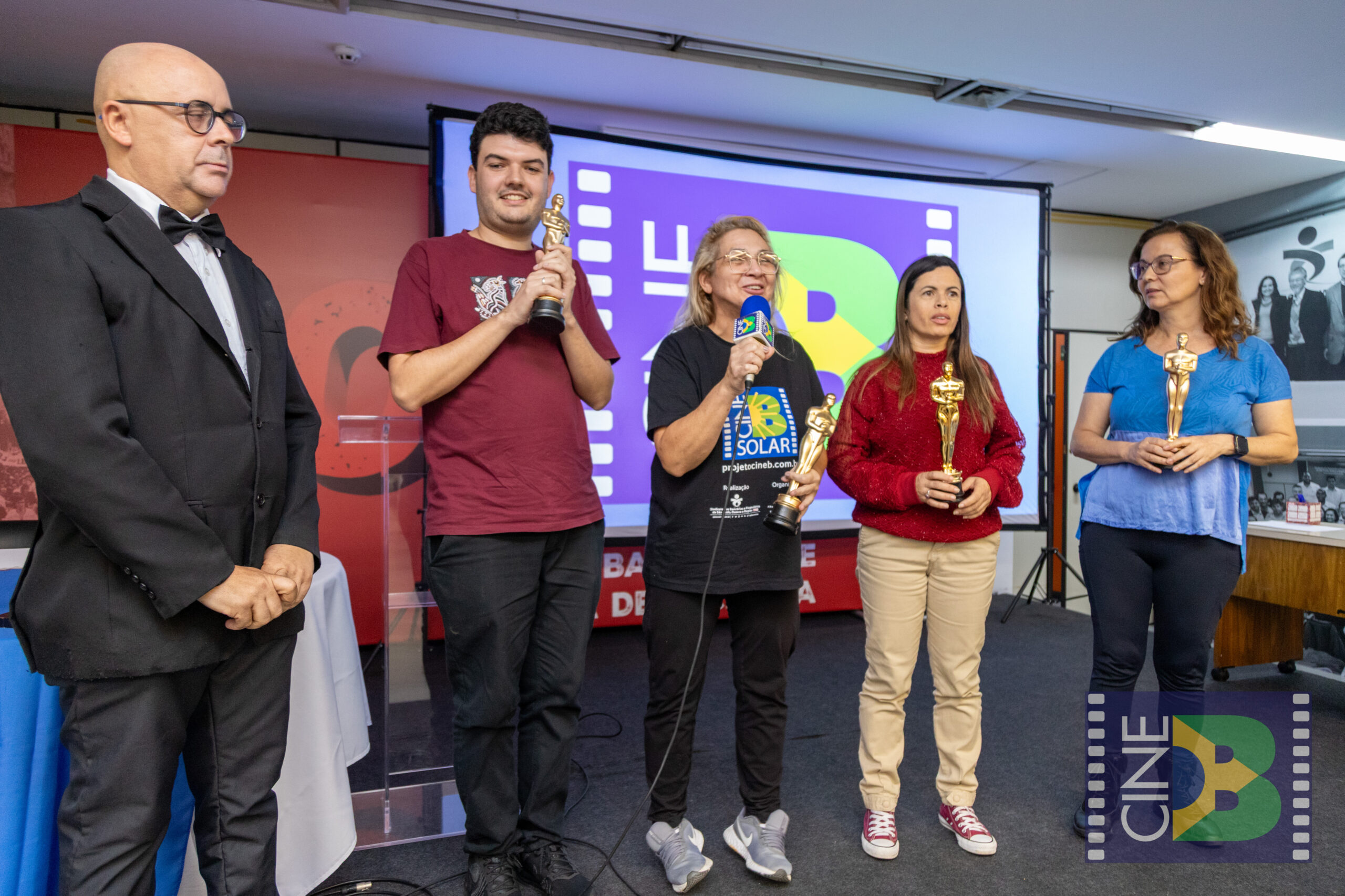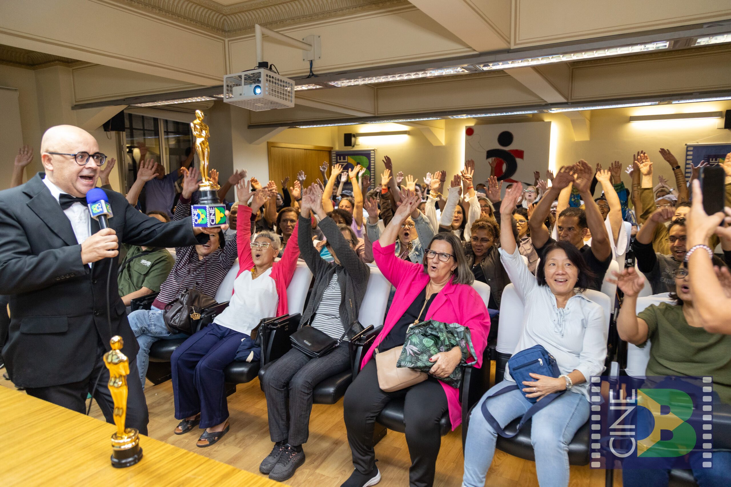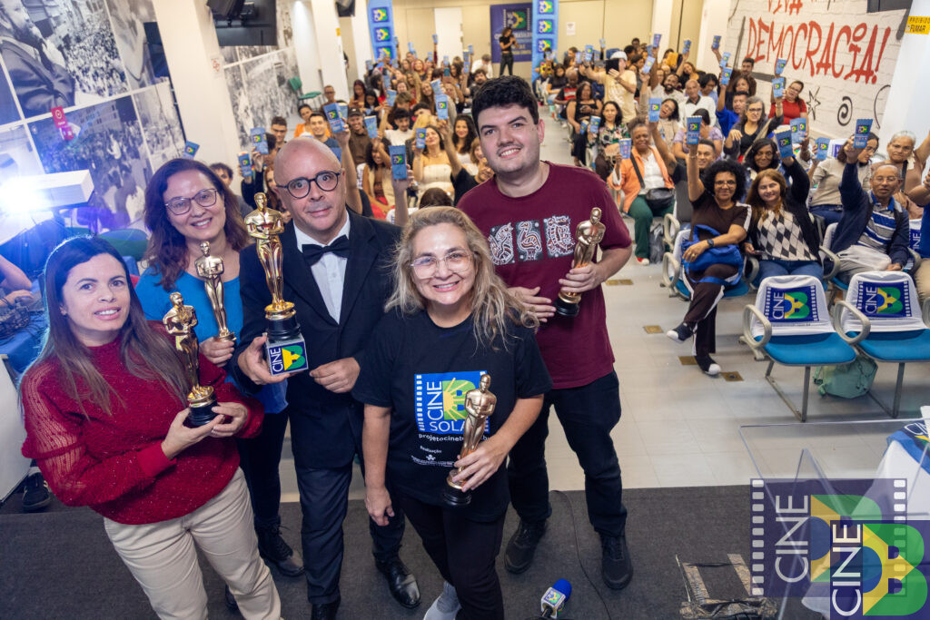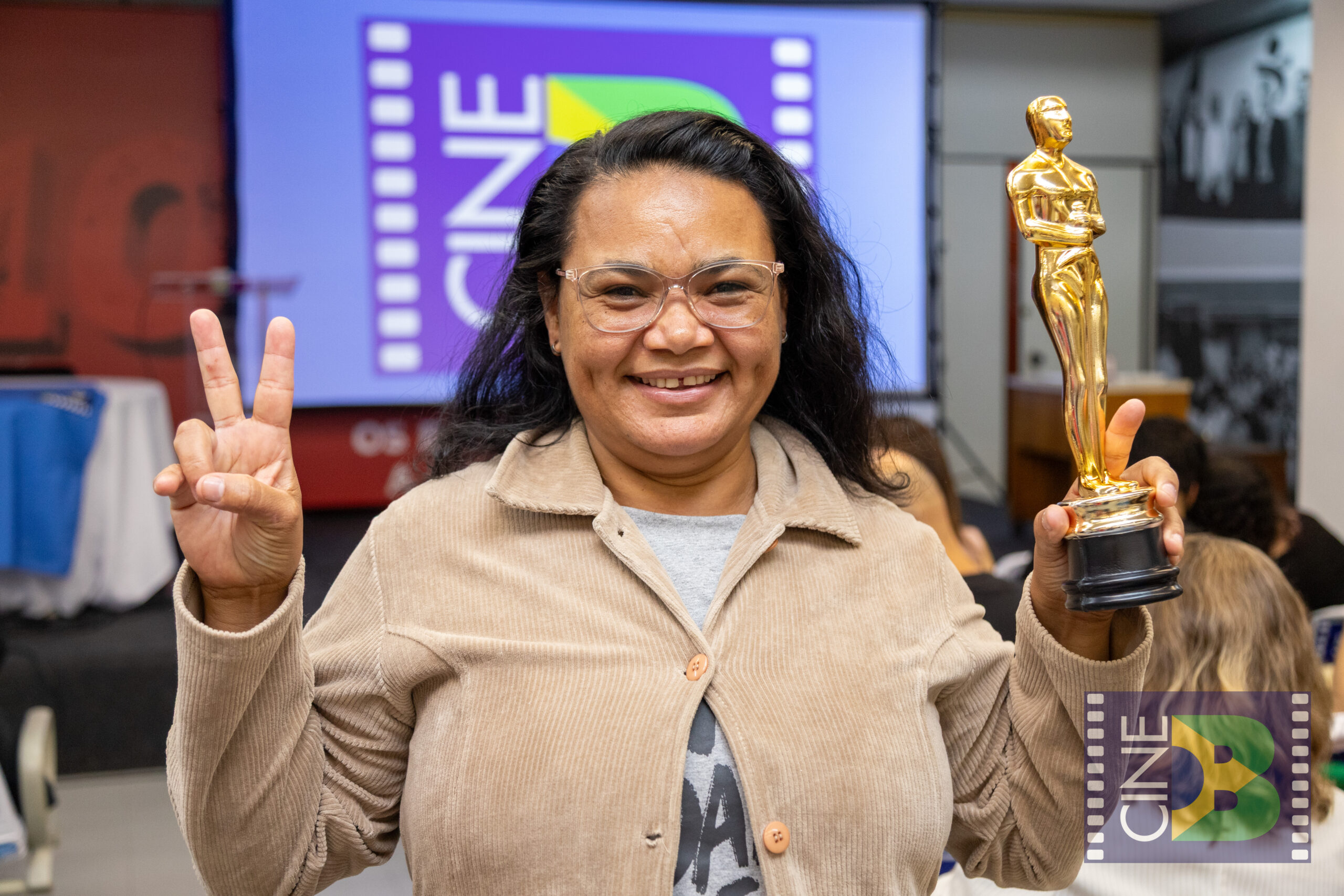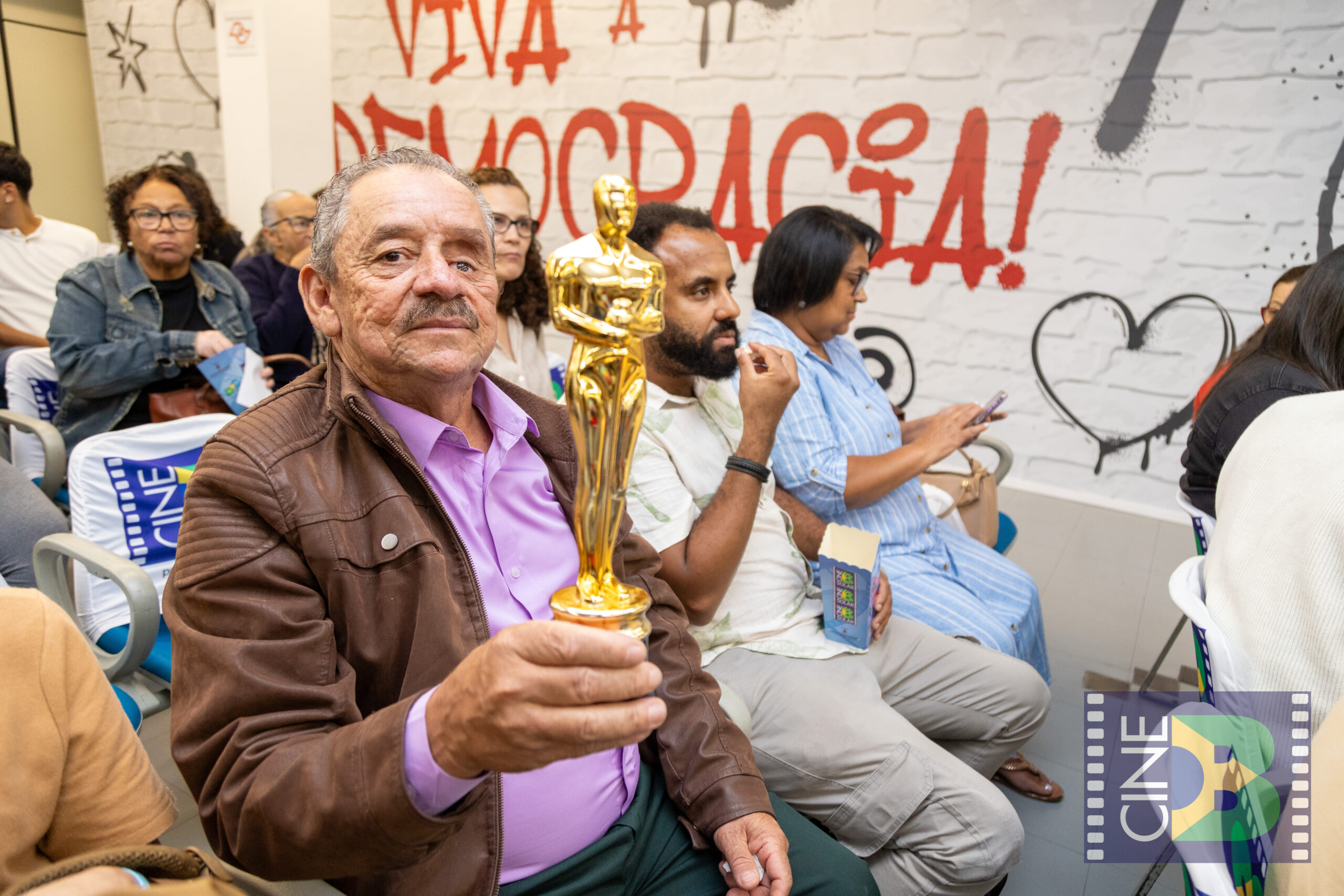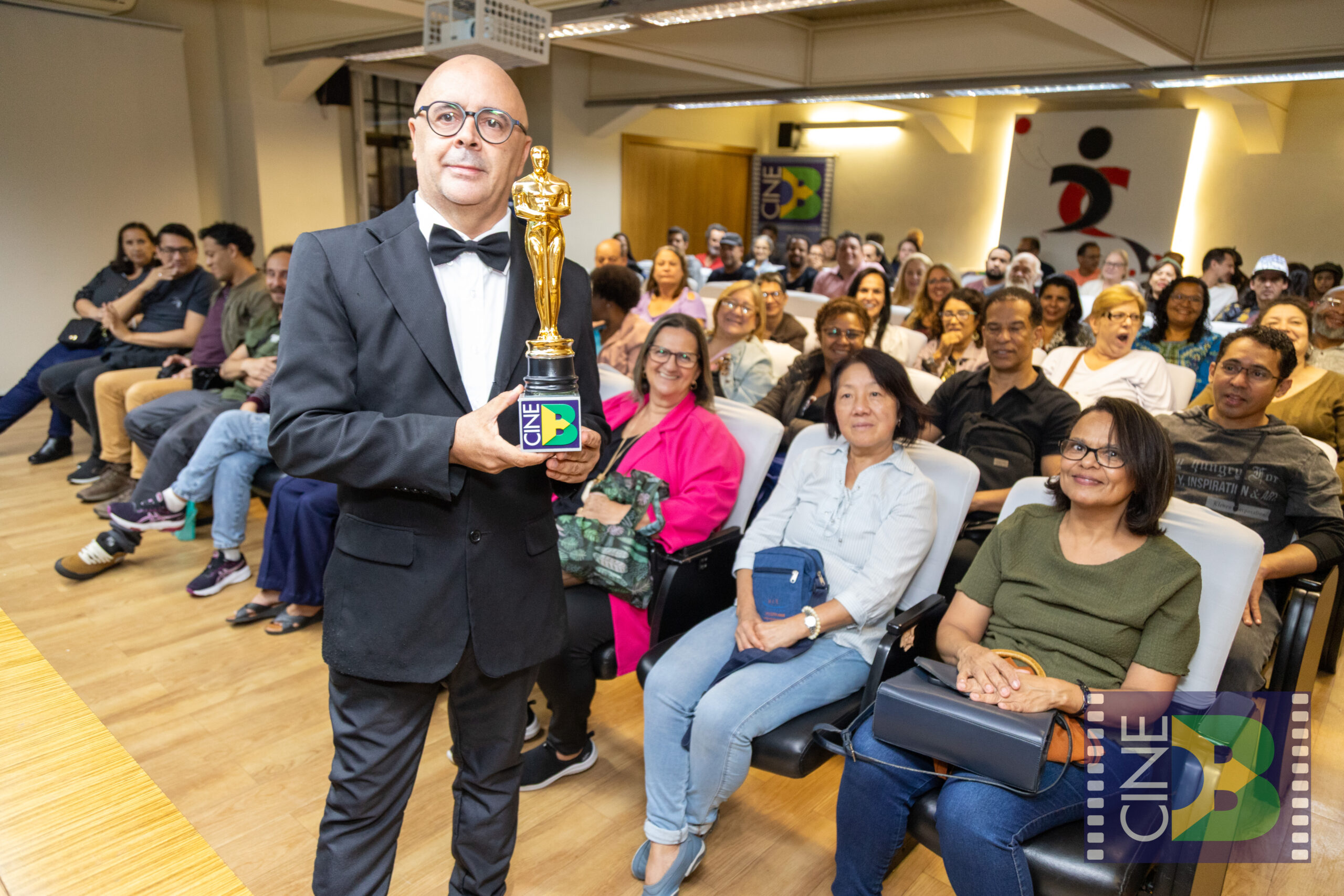 A abertura das sessões foi conduzida por Cidálio Vieira Santos, coordenador do CineB, que destacou a trajetória do projeto e a importância de levar o cinema brasileiro para diferentes públicos. Em clima da semana do Oscar, representantes das escolas participaram simbolicamente da abertura segurando uma estatueta comemorativa, celebrando o momento de destaque do cinema nacional no cenário internacional.
