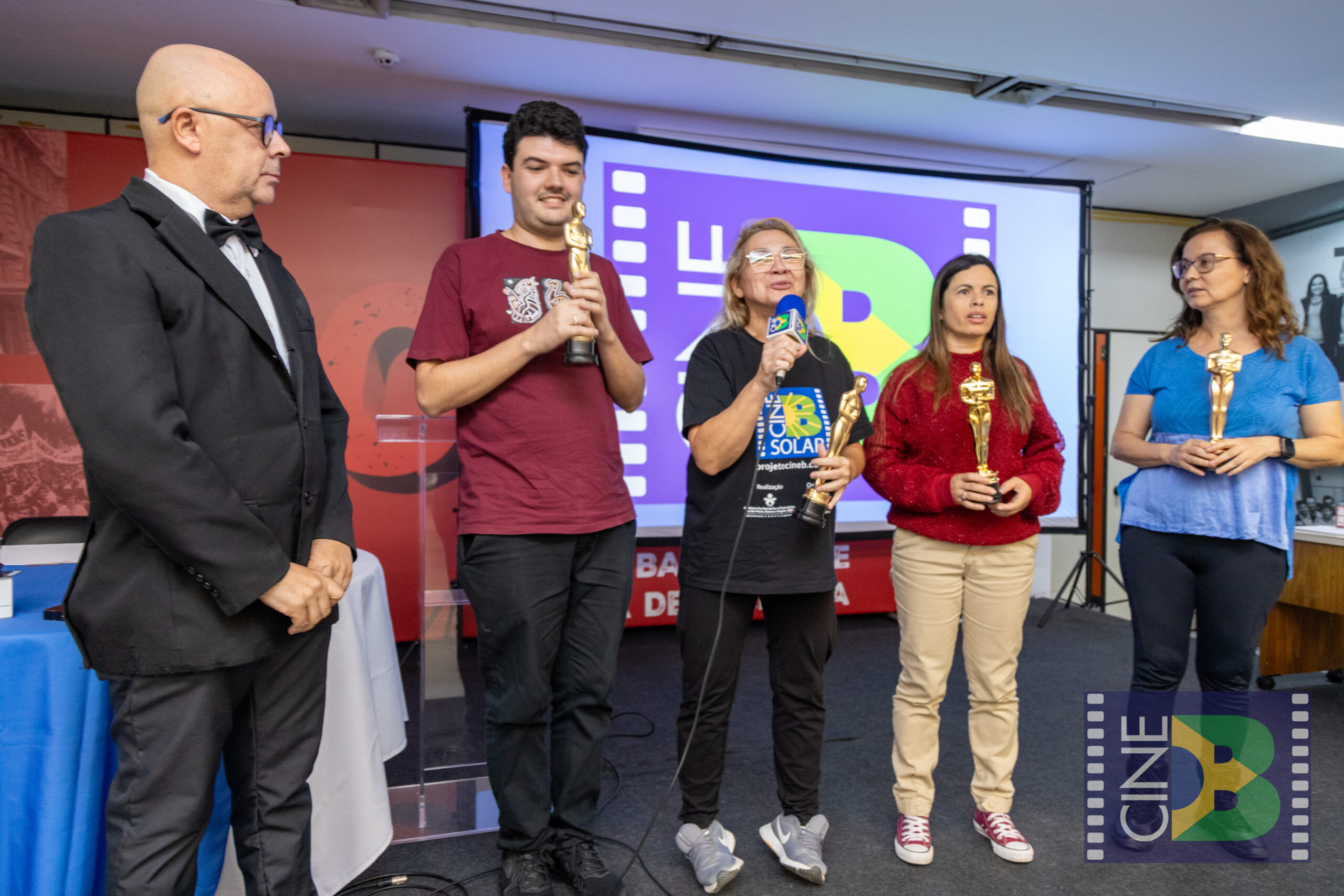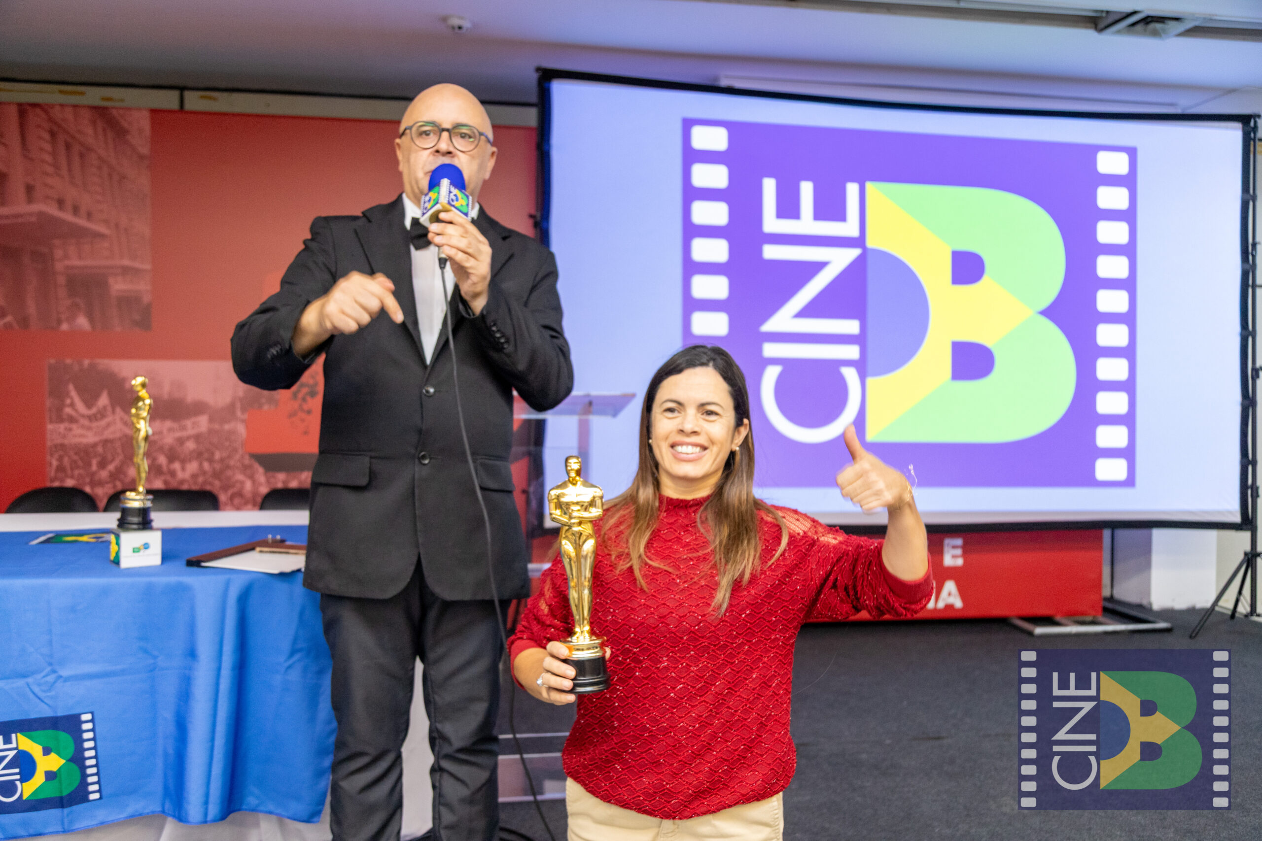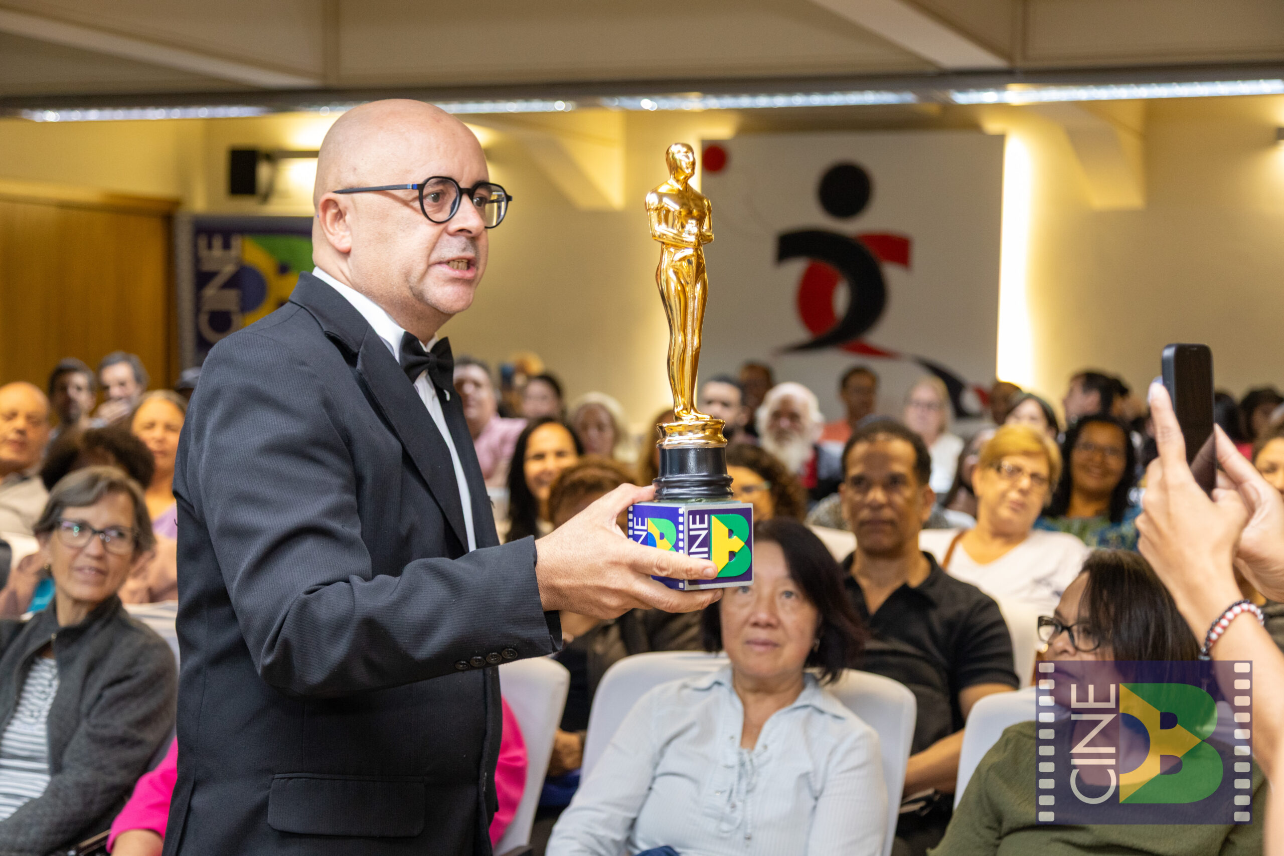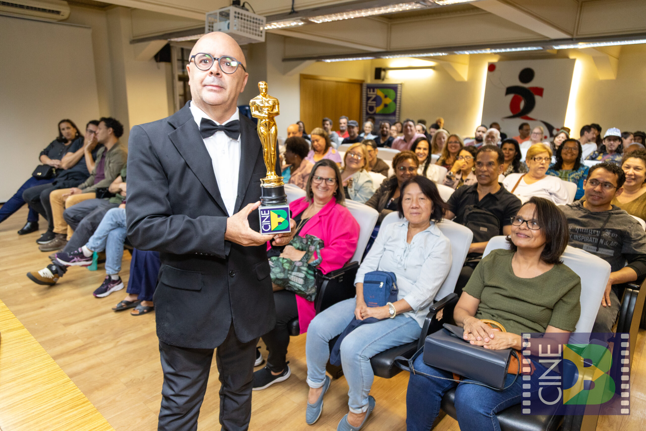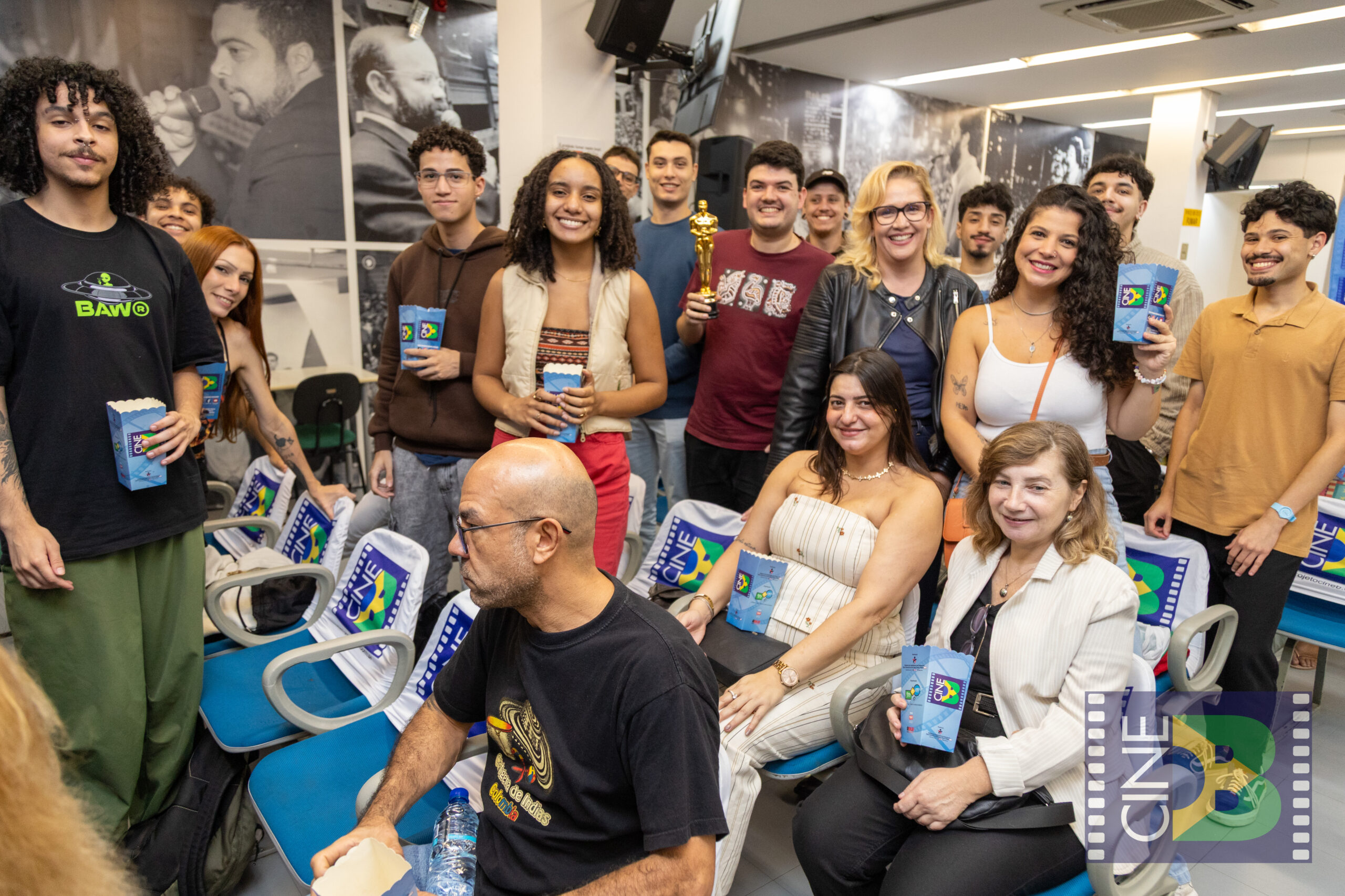 A abertura das sessões foi conduzida por Cidálio Vieira Santos, coordenador do CineB, que destacou a trajetória do projeto e a importância de levar o cinema brasileiro para diferentes públicos. Em clima da semana do Oscar, representantes das escolas participaram simbolicamente da abertura segurando uma estatueta comemorativa, celebrando o momento de destaque do cinema nacional no cenário internacional.