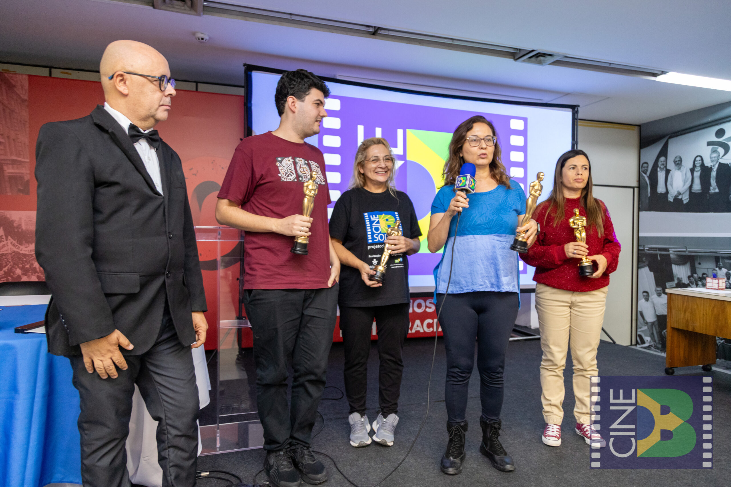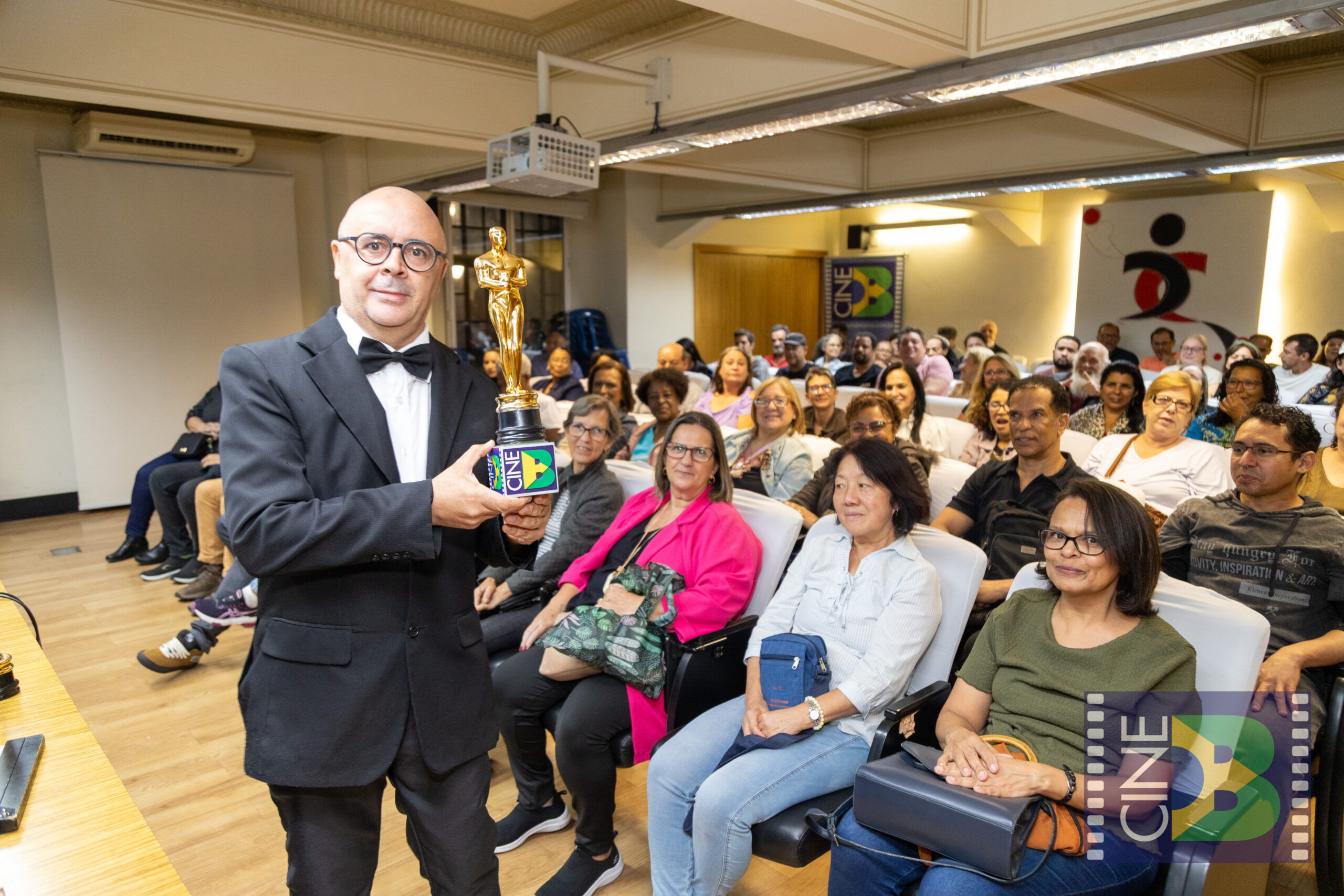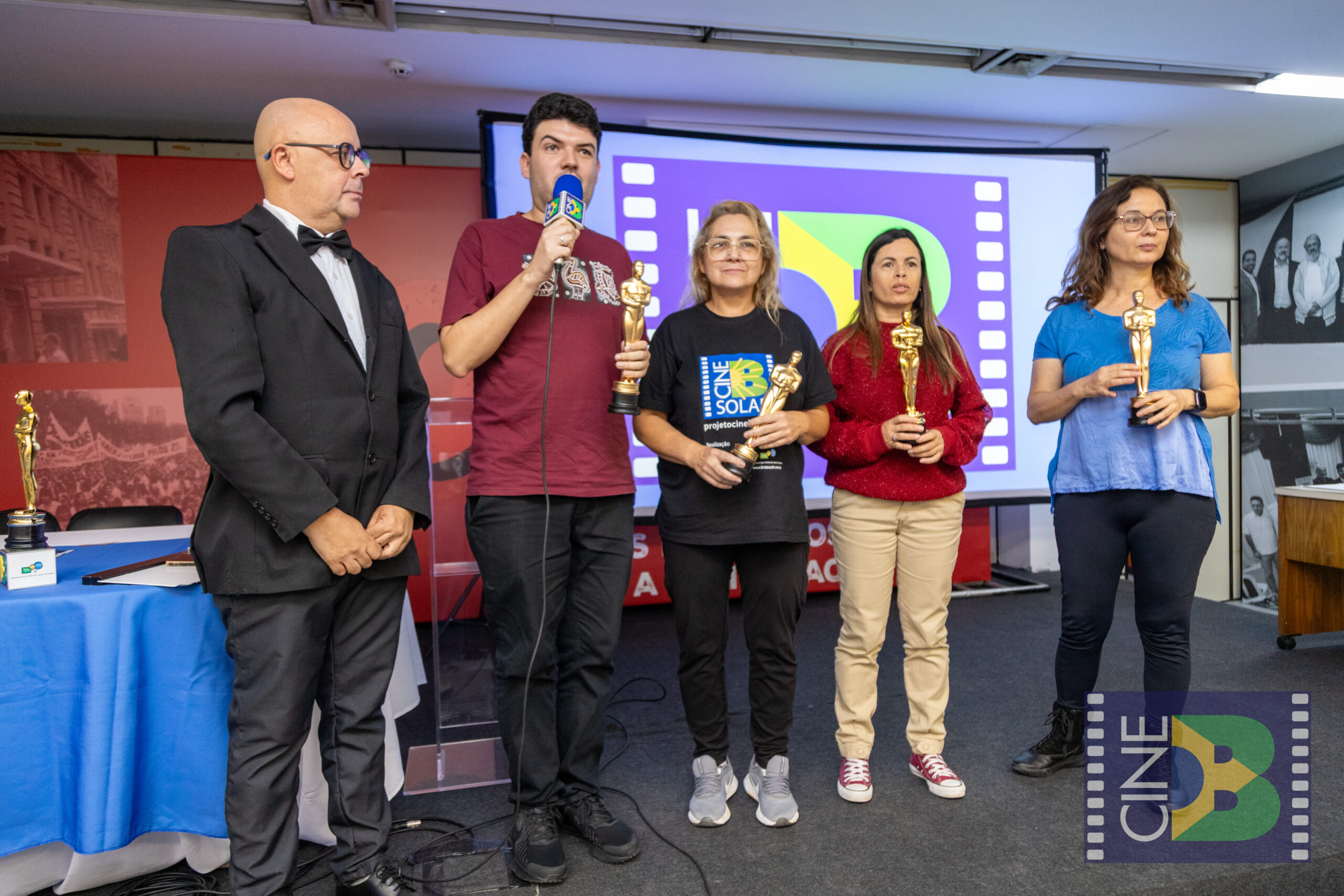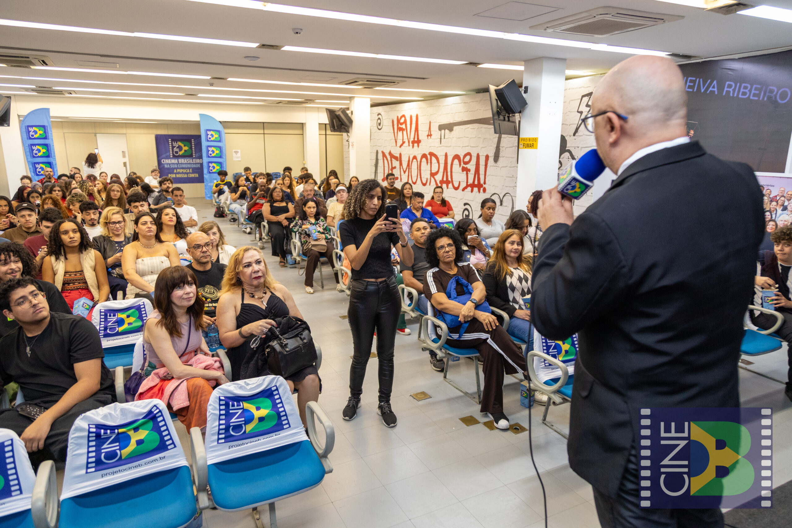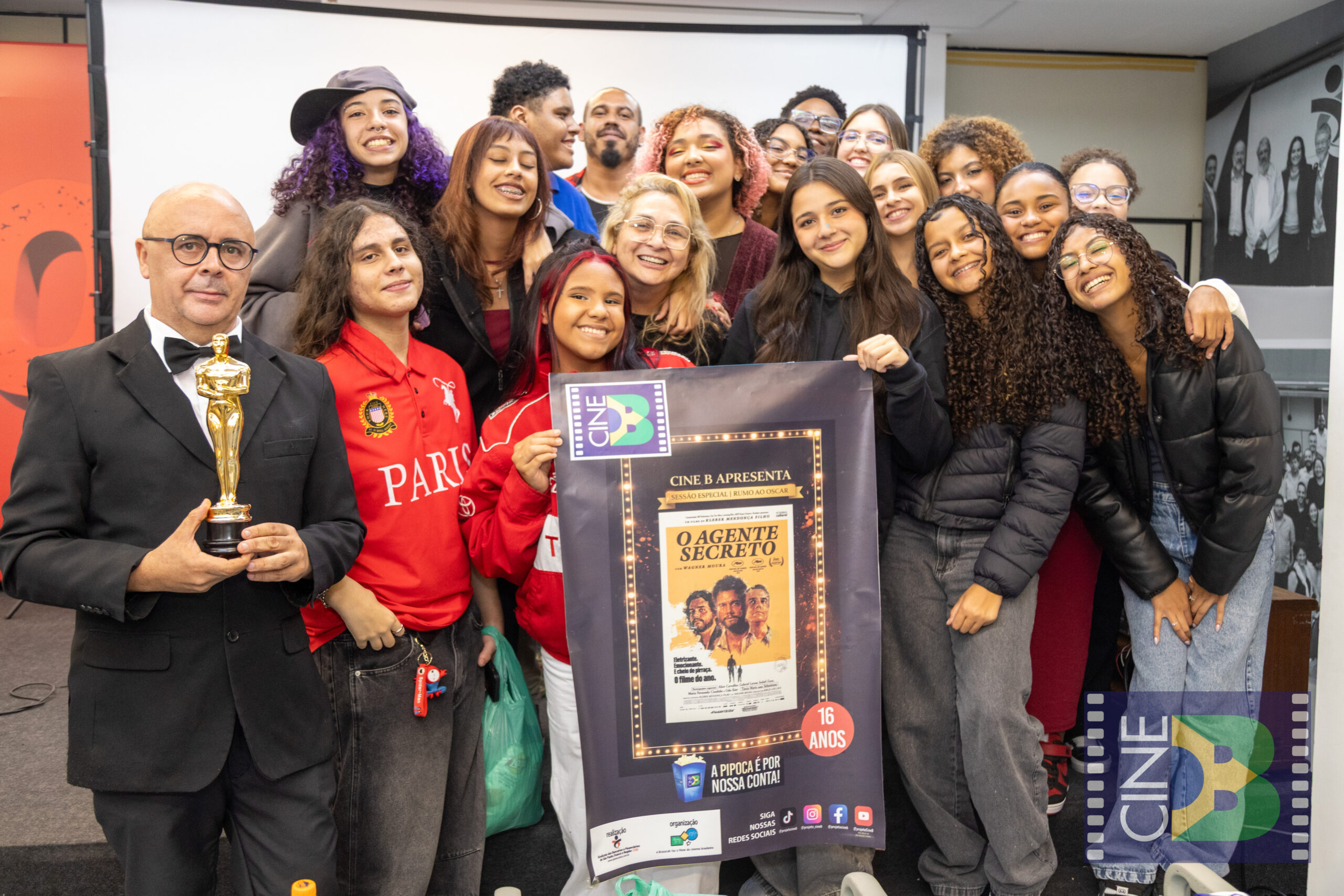 A abertura das sessões foi conduzida por Cidálio Vieira Santos, coordenador do CineB, que destacou a trajetória do projeto e a importância de levar o cinema brasileiro para diferentes públicos. Em clima da semana do Oscar, representantes das escolas participaram simbolicamente da abertura segurando uma estatueta comemorativa, celebrando o momento de destaque do cinema nacional no cenário internacional.