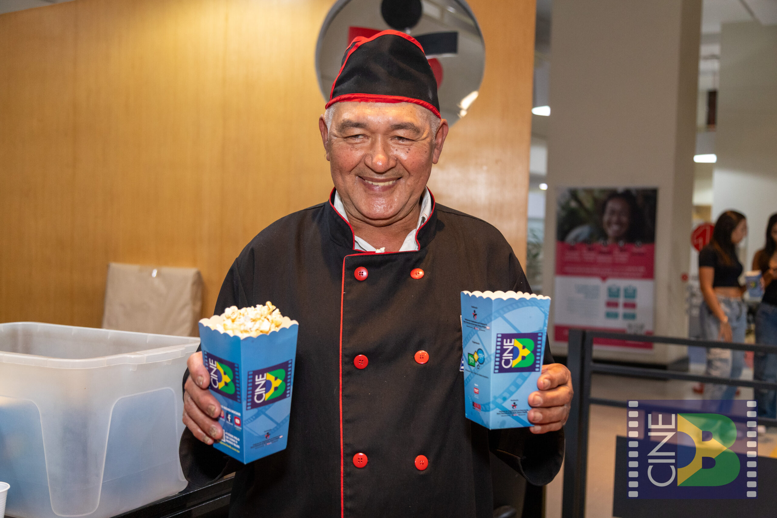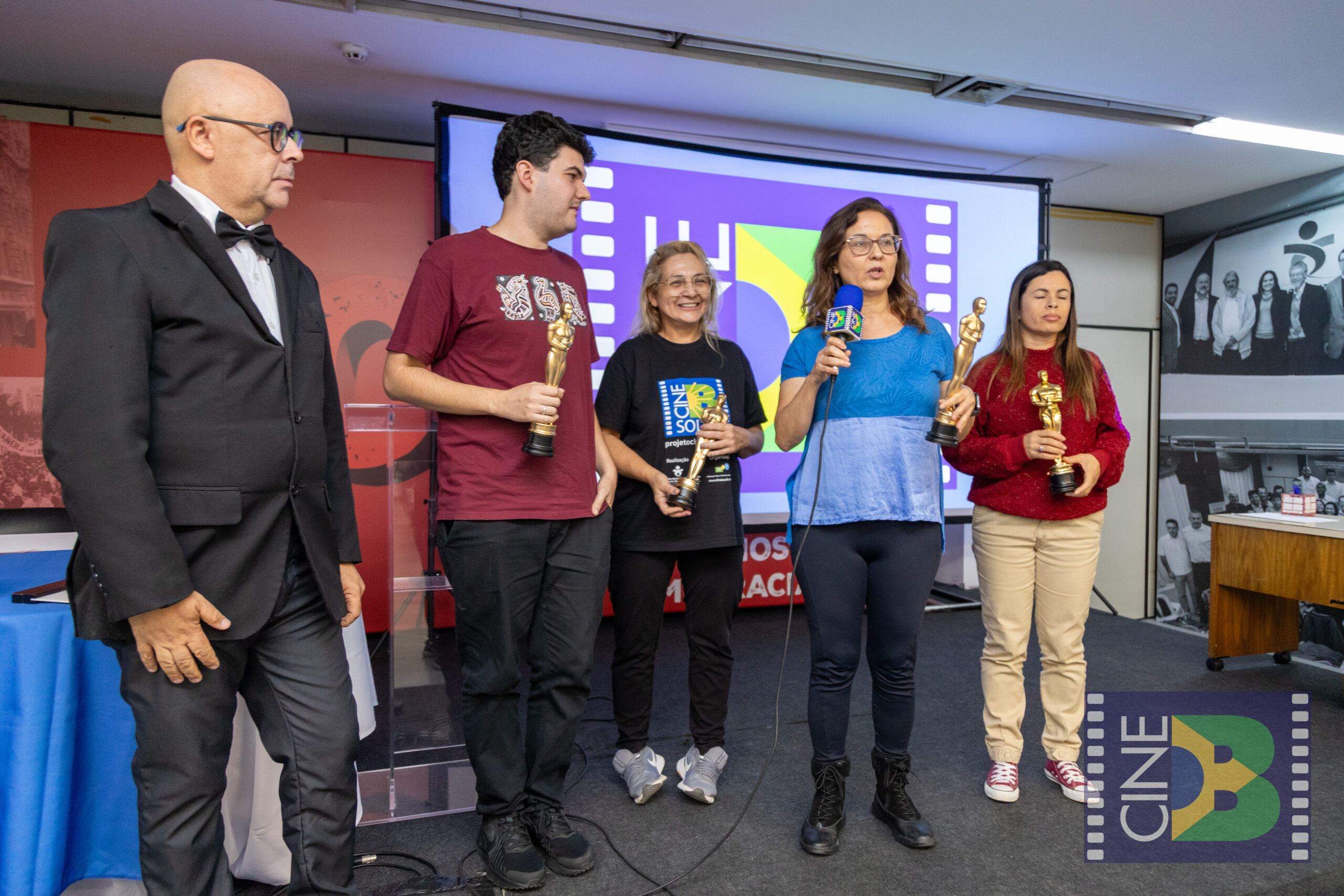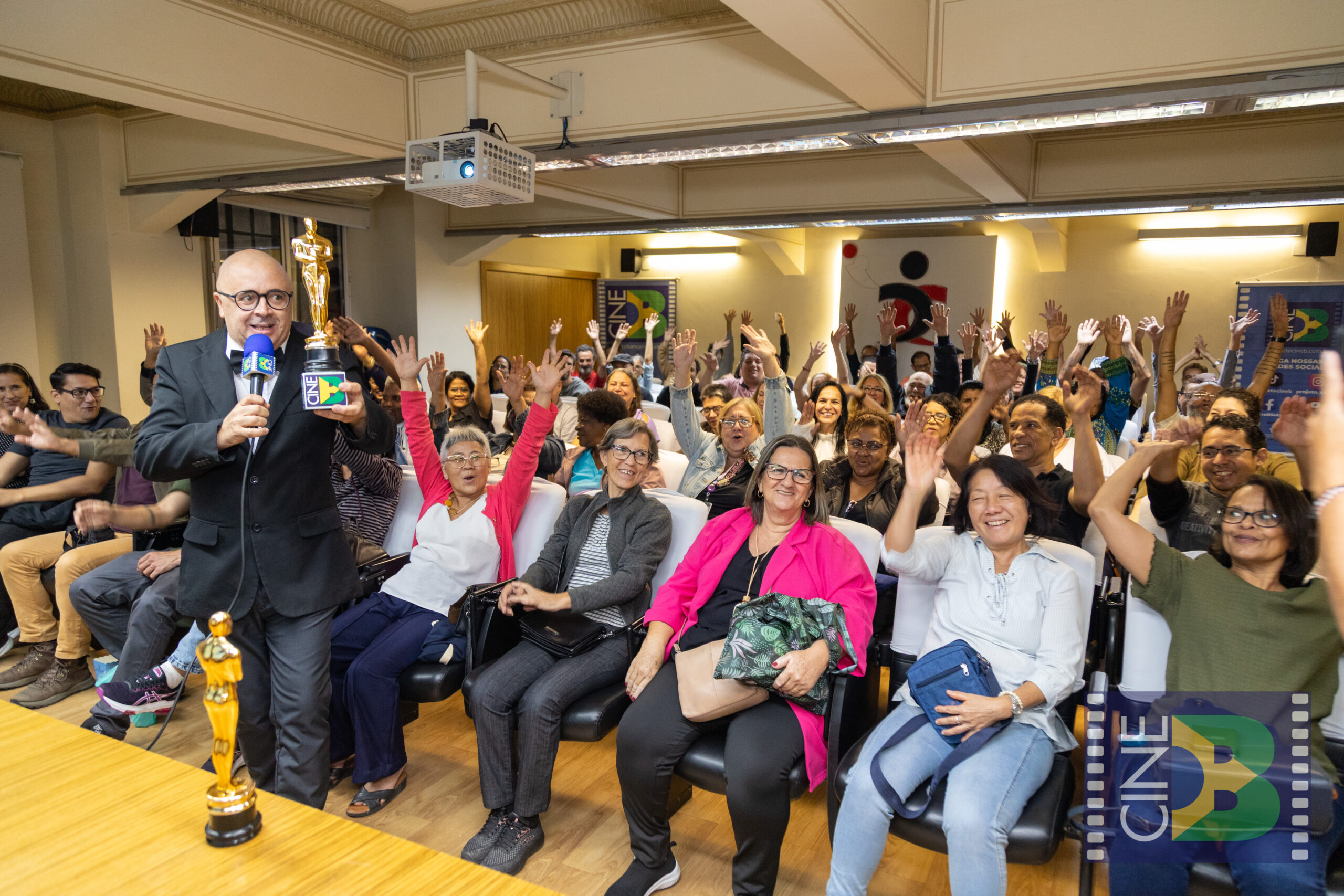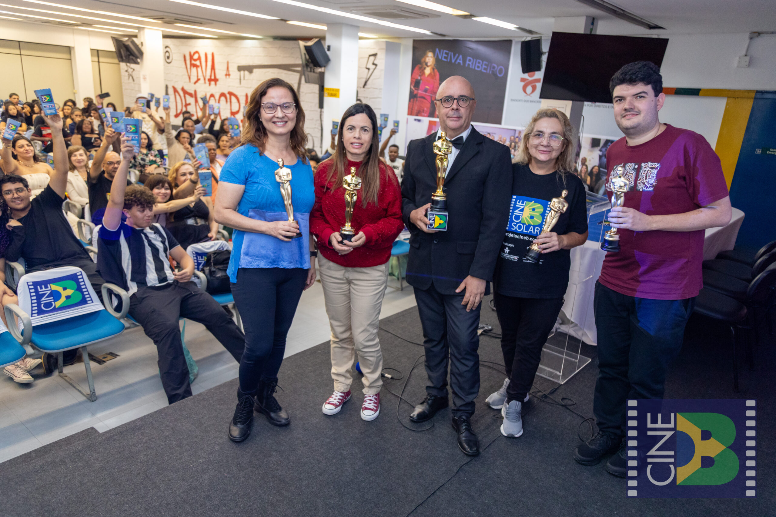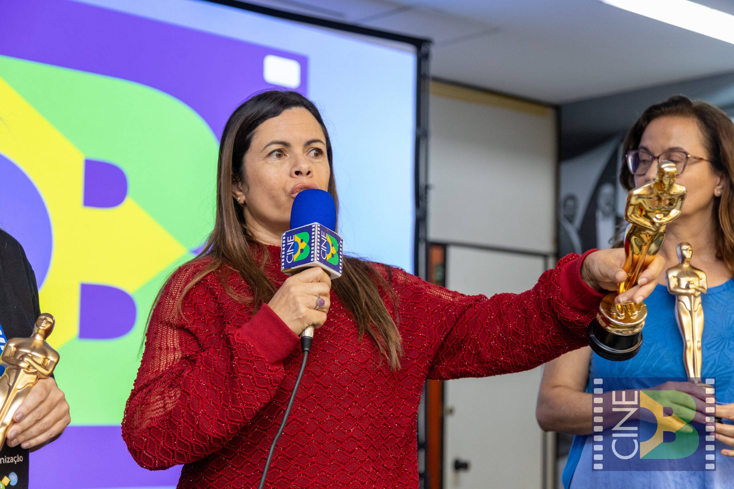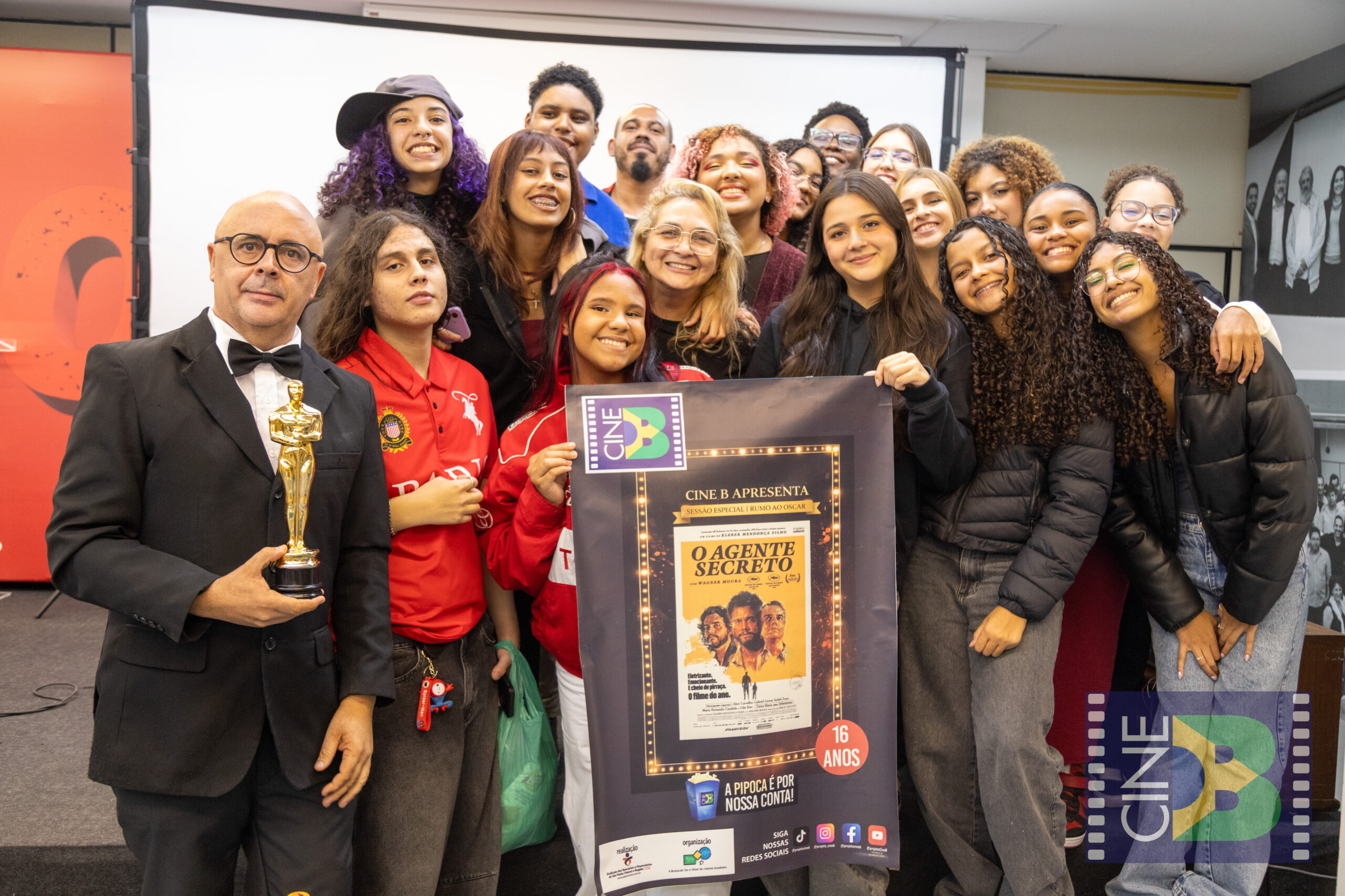 A abertura das sessões foi conduzida por Cidálio Vieira Santos, coordenador do CineB, que destacou a trajetória do projeto e a importância de levar o cinema brasileiro para diferentes públicos. Em clima da semana do Oscar, representantes das escolas participaram simbolicamente da abertura segurando uma estatueta comemorativa, celebrando o momento de destaque do cinema nacional no cenário internacional.