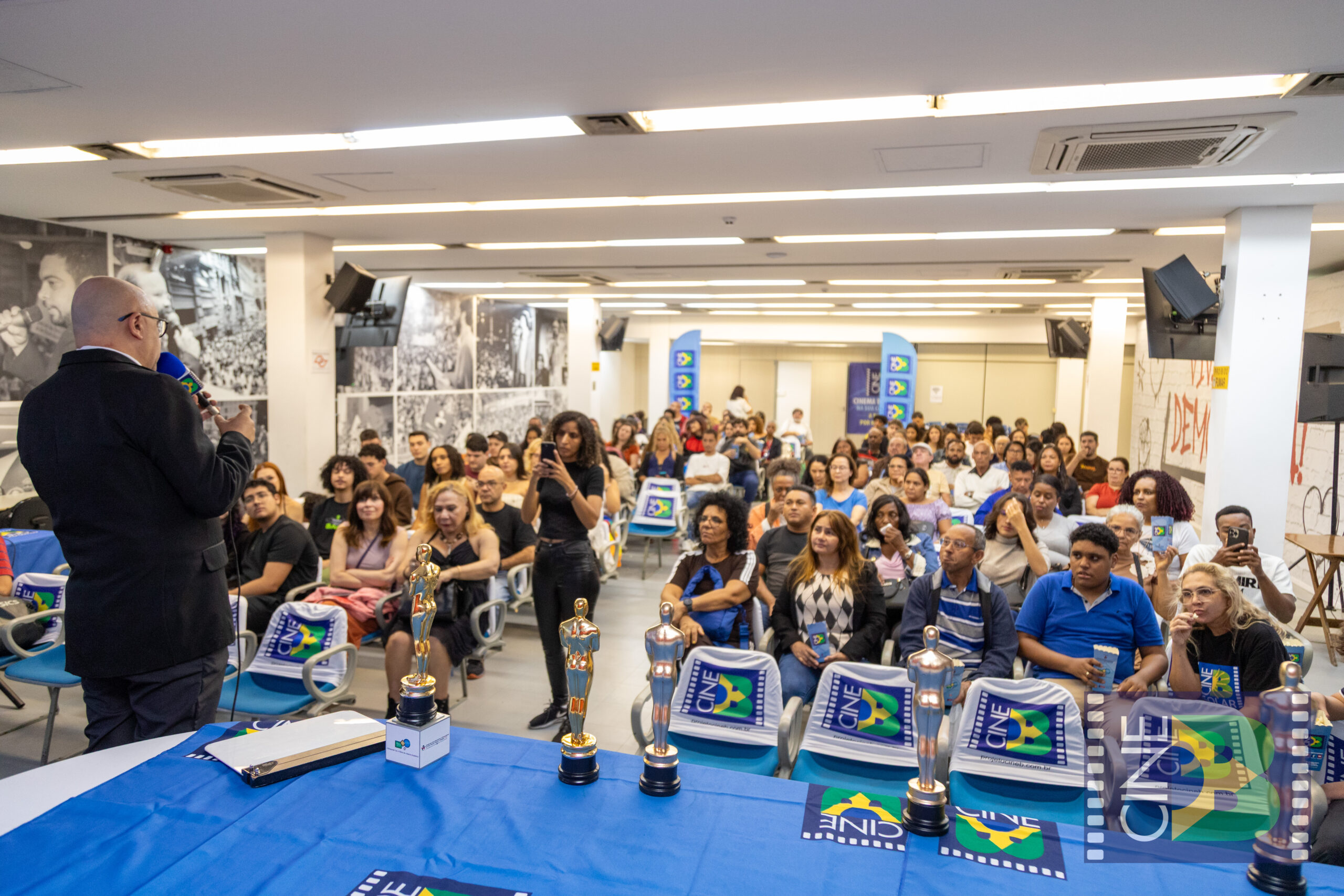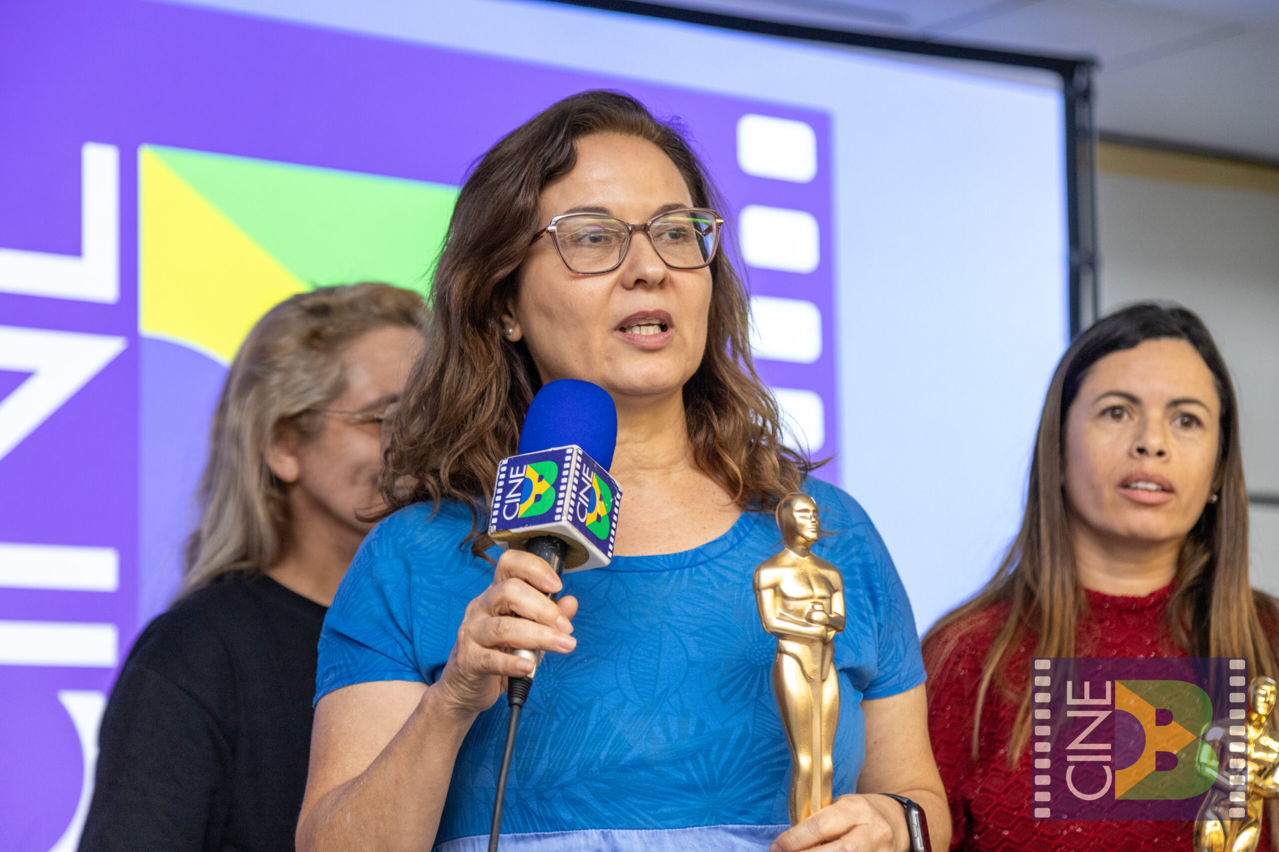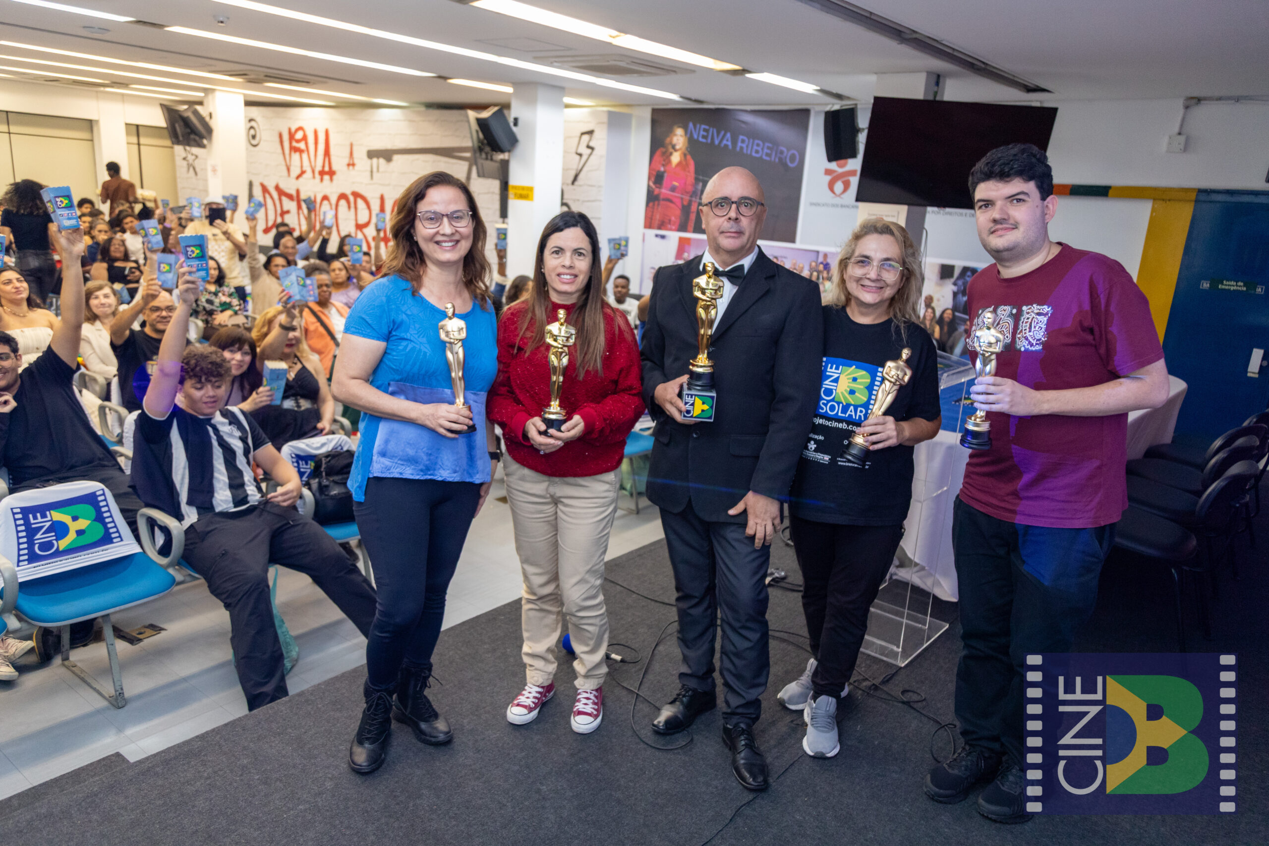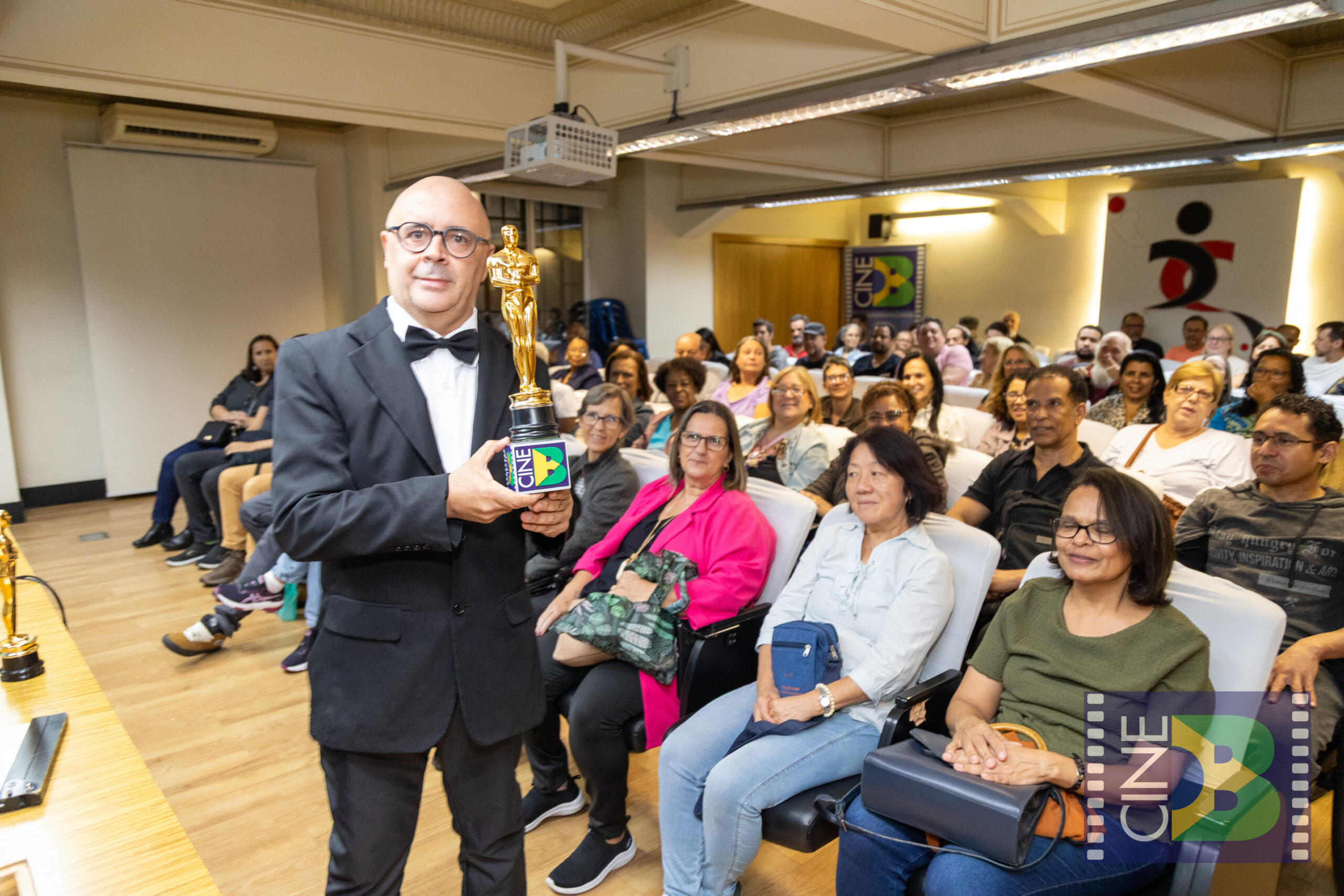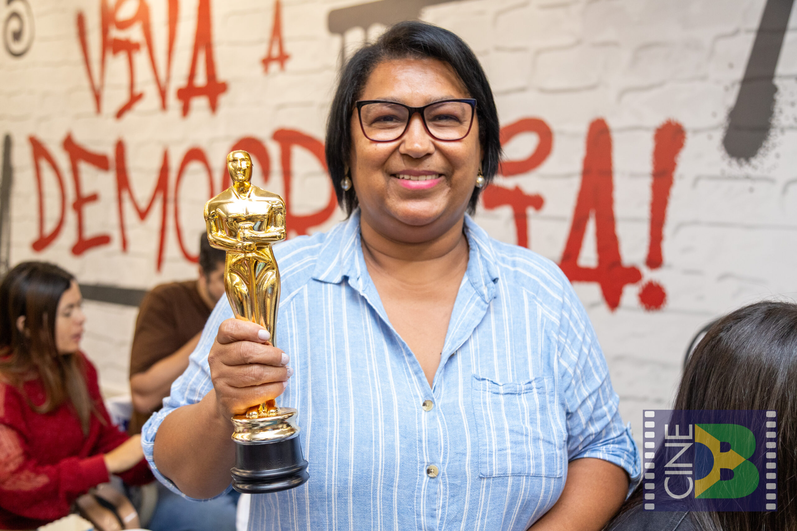 A abertura das sessões foi conduzida por Cidálio Vieira Santos, coordenador do CineB, que destacou a trajetória do projeto e a importância de levar o cinema brasileiro para diferentes públicos. Em clima da semana do Oscar, representantes das escolas participaram simbolicamente da abertura segurando uma estatueta comemorativa, celebrando o momento de destaque do cinema nacional no cenário internacional.