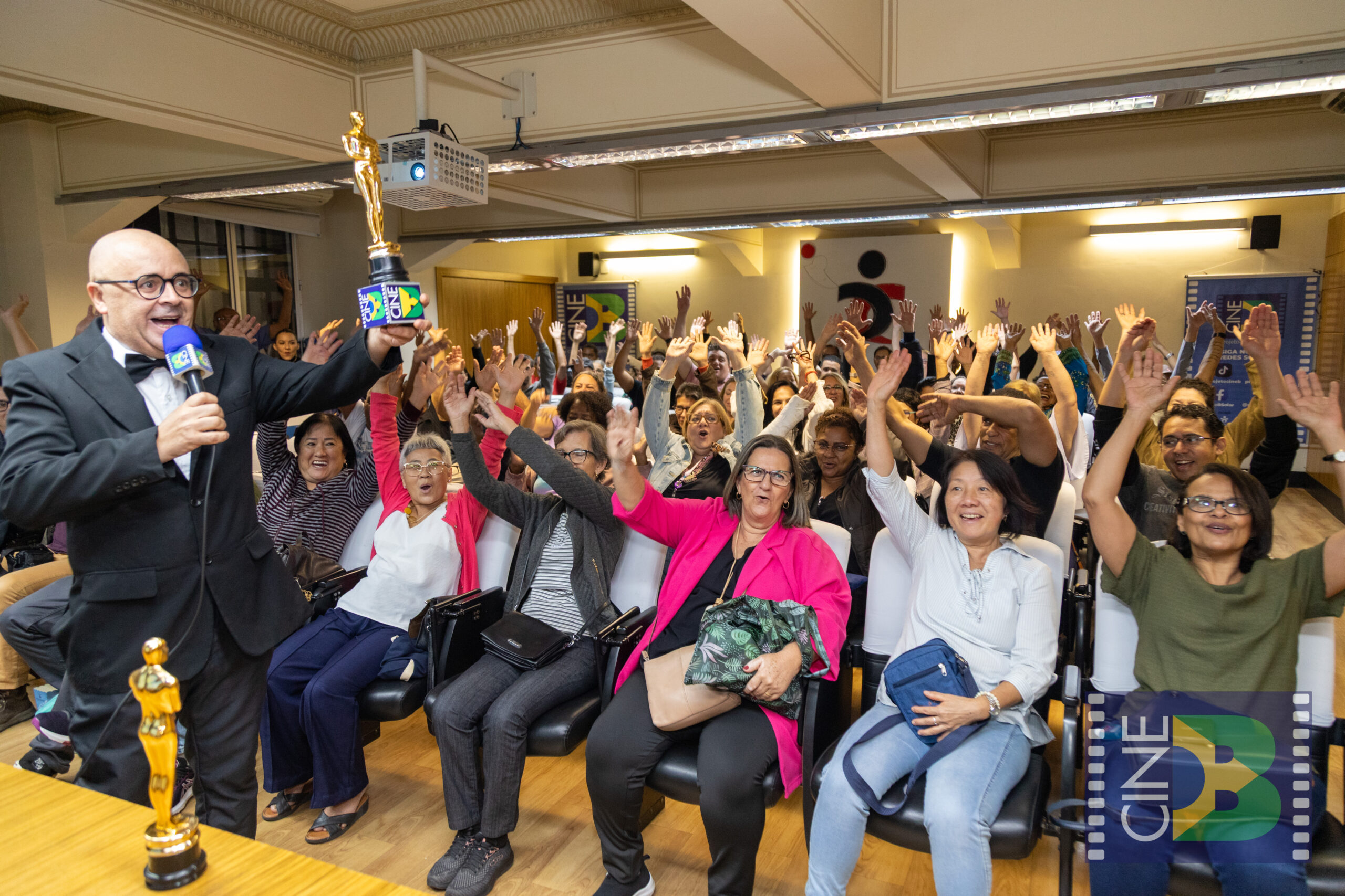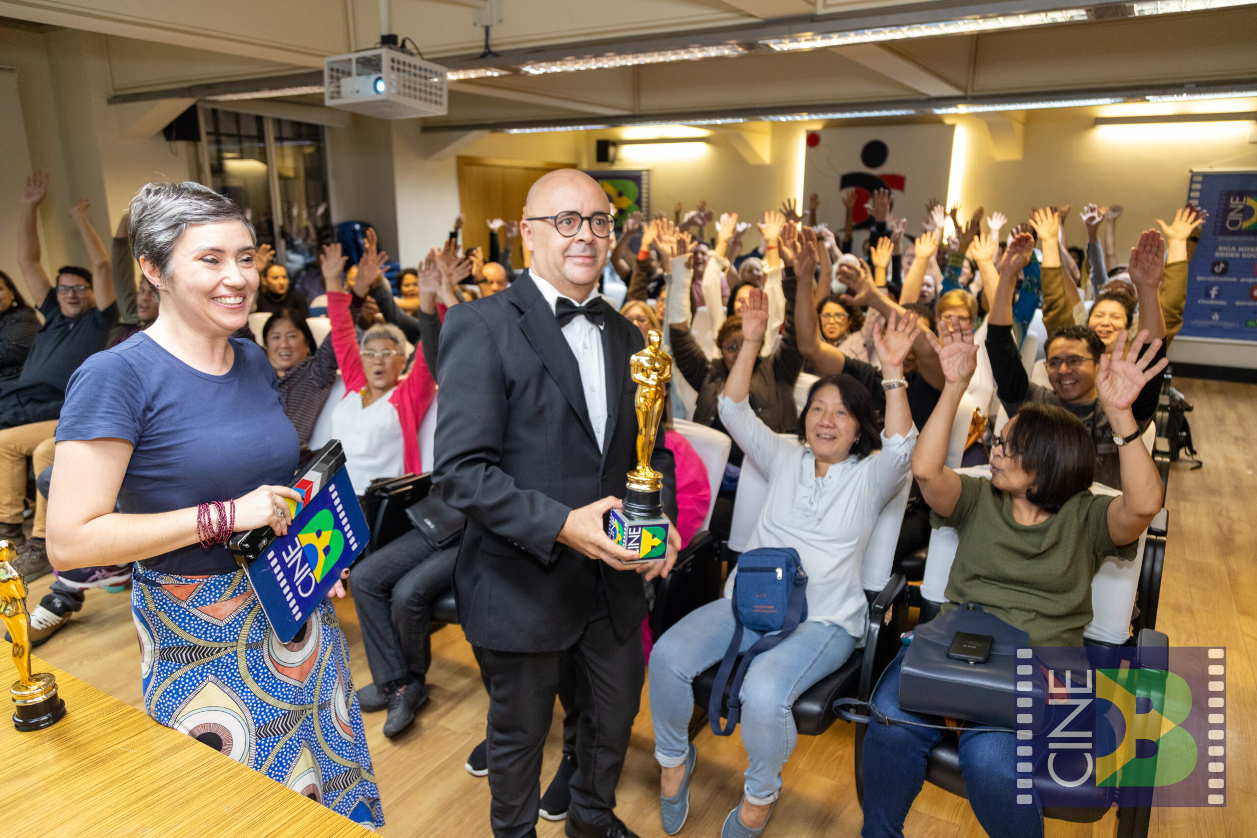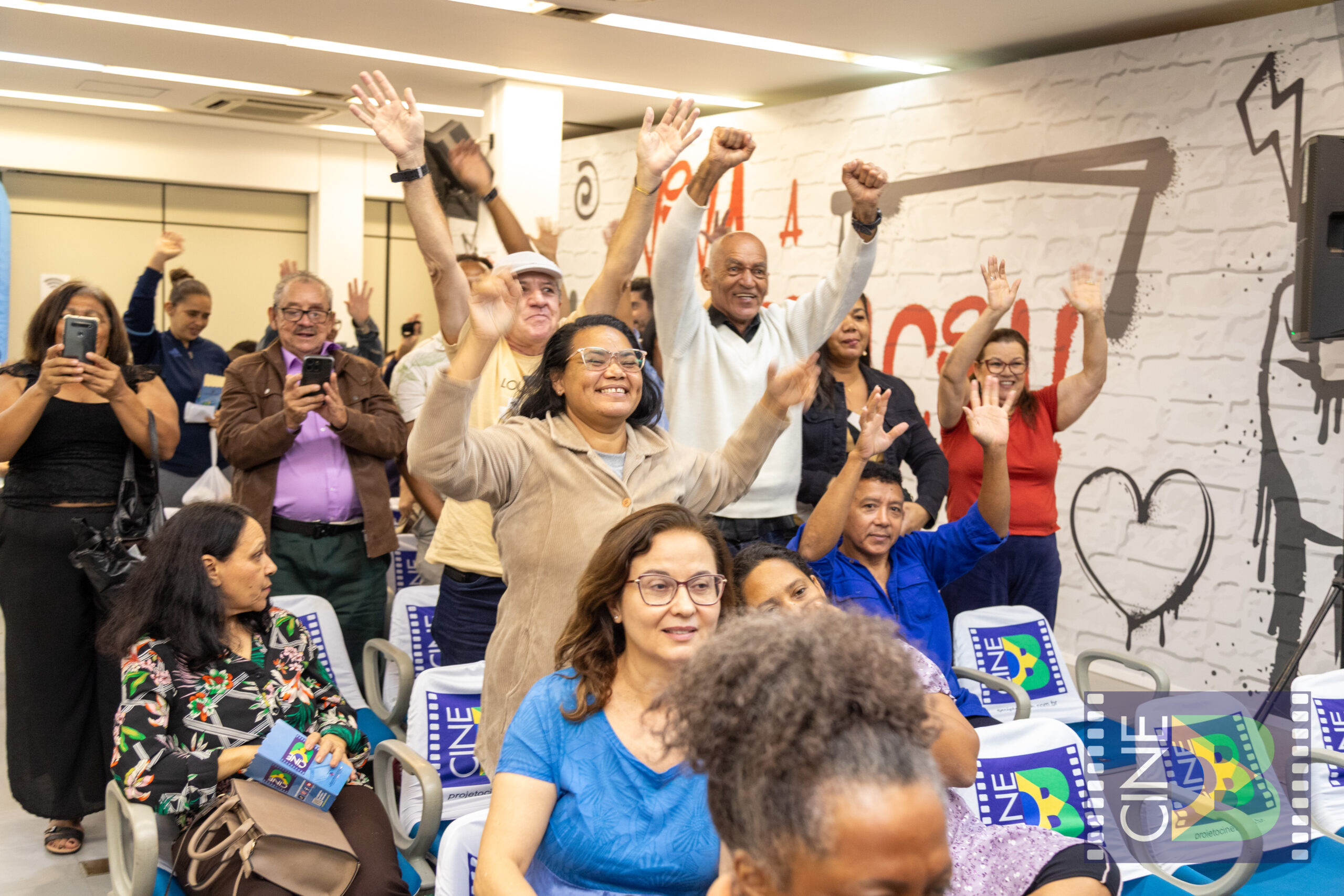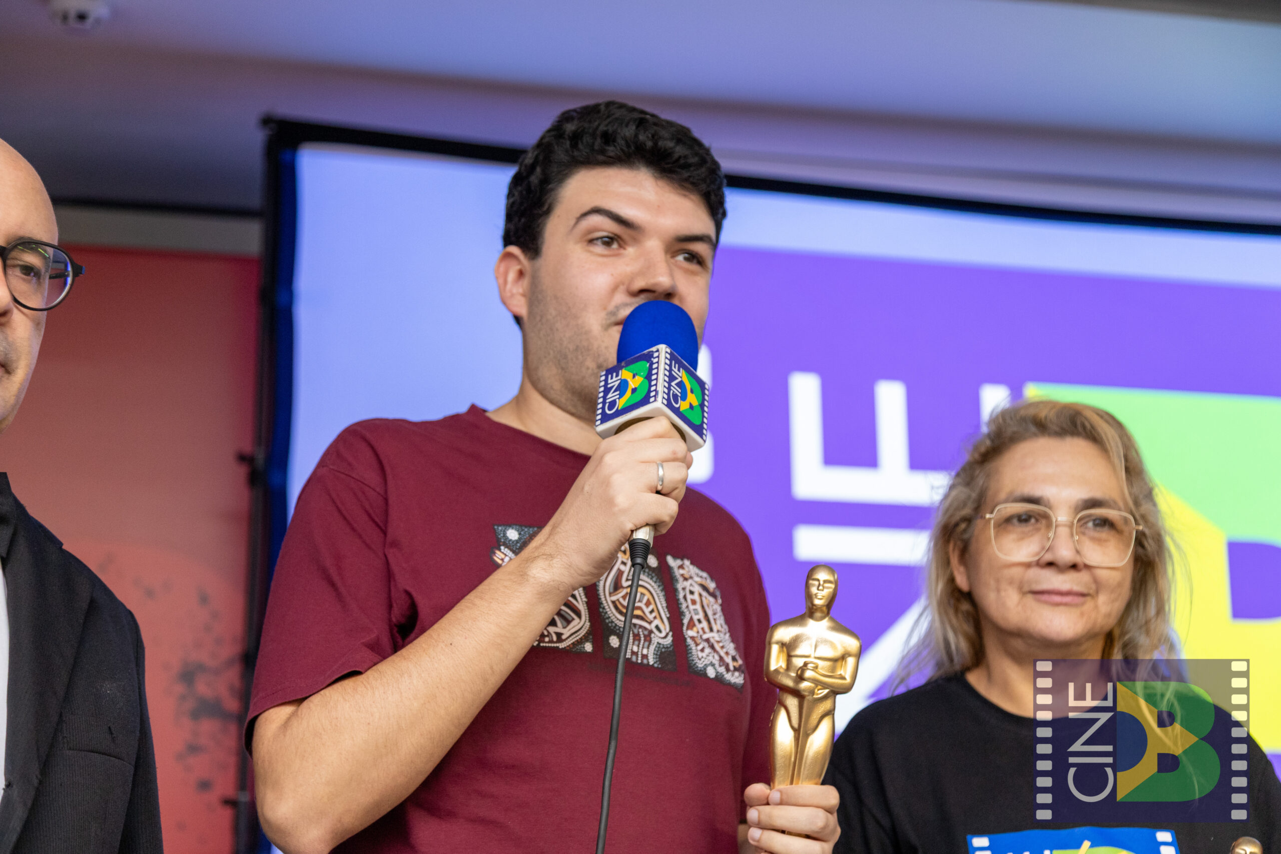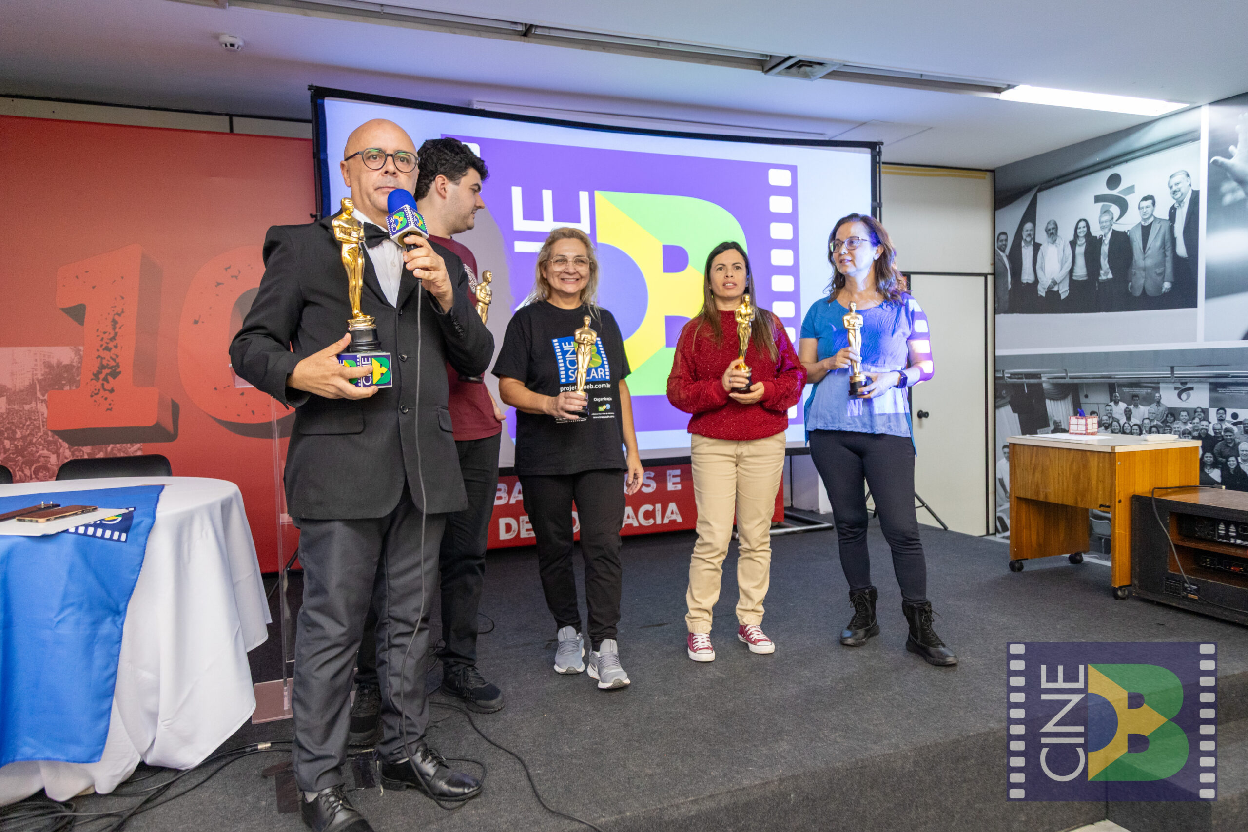 A abertura das sessões foi conduzida por Cidálio Vieira Santos, coordenador do CineB, que destacou a trajetória do projeto e a importância de levar o cinema brasileiro para diferentes públicos. Em clima da semana do Oscar, representantes das escolas participaram simbolicamente da abertura segurando uma estatueta comemorativa, celebrando o momento de destaque do cinema nacional no cenário internacional.