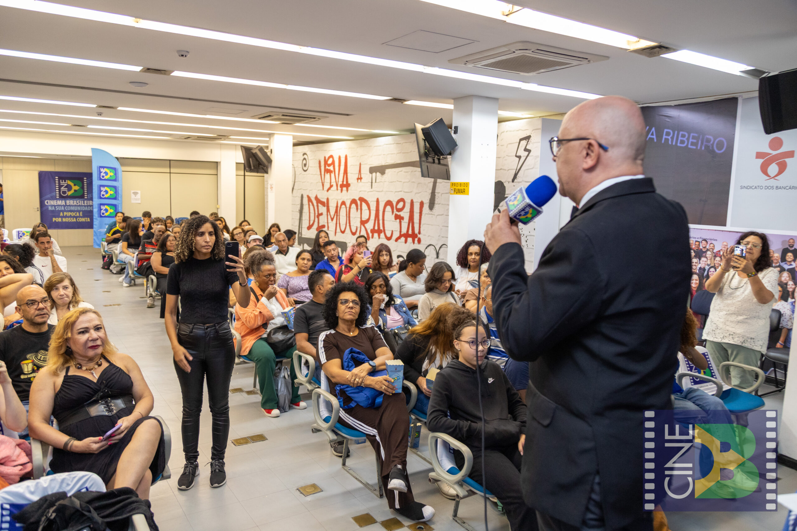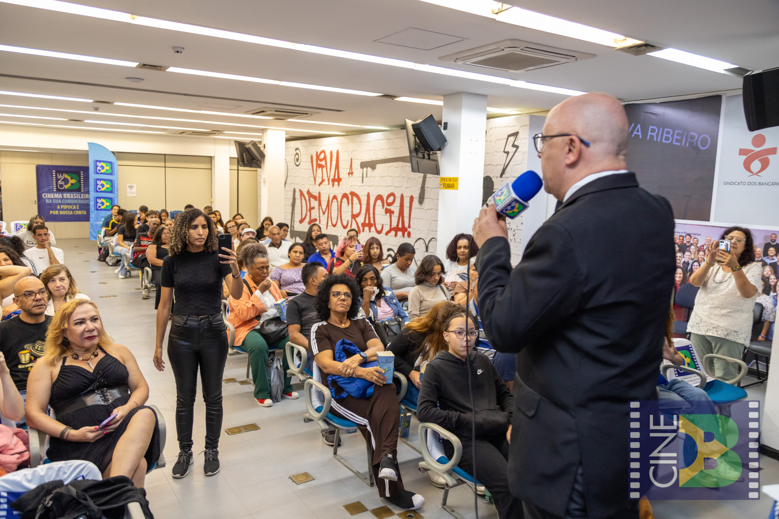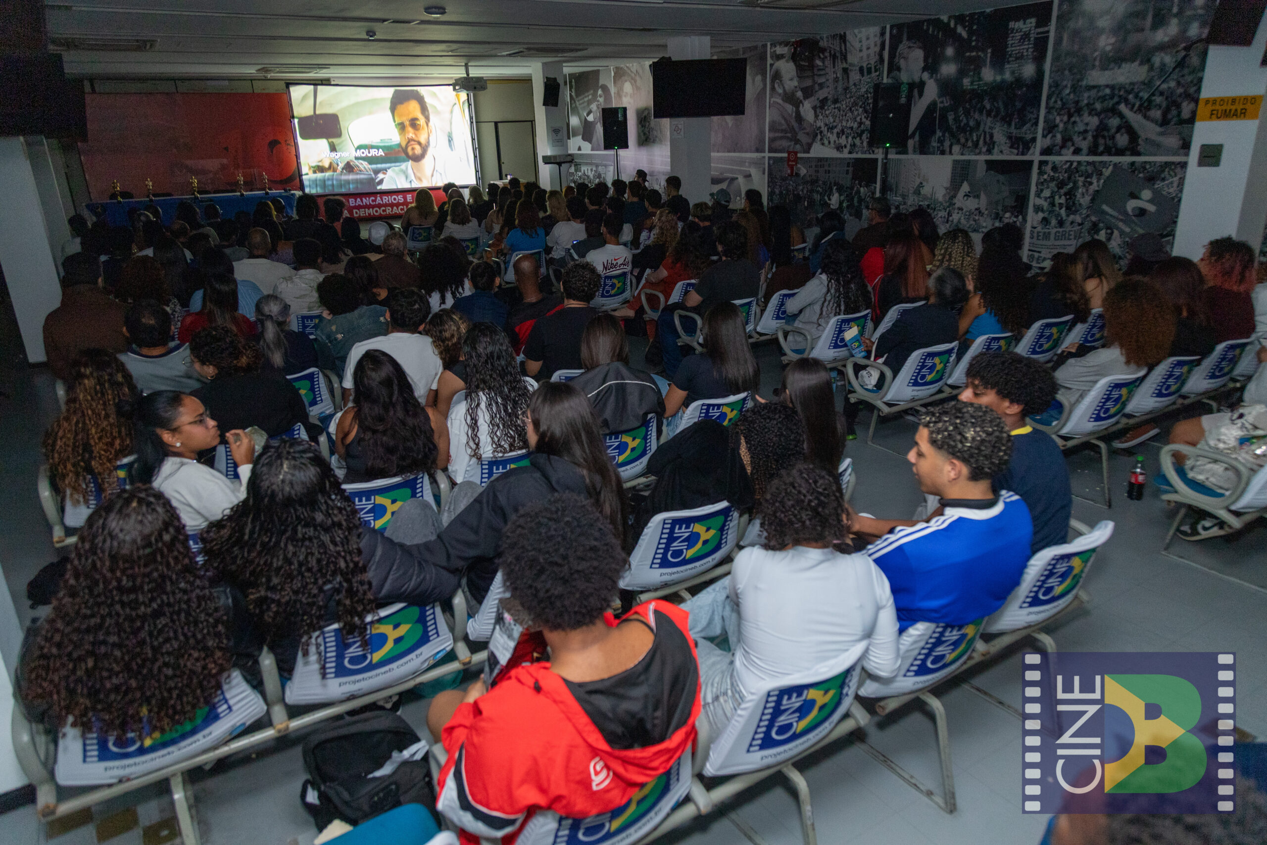 Na noite de 13 de março, o CineB realizou duas sessões simultâneas no Sindicato dos Bancários de São Paulo, Osasco e Região, reunindo mais de 250 participantes entre estudantes, professores, lideranças comunitárias, bancários e público em geral. As exibições aconteceram no Auditório Amarelo e no Auditório Azul, marcando uma noite especial dedicada ao cinema brasileiro na semana da premiação do Oscar.