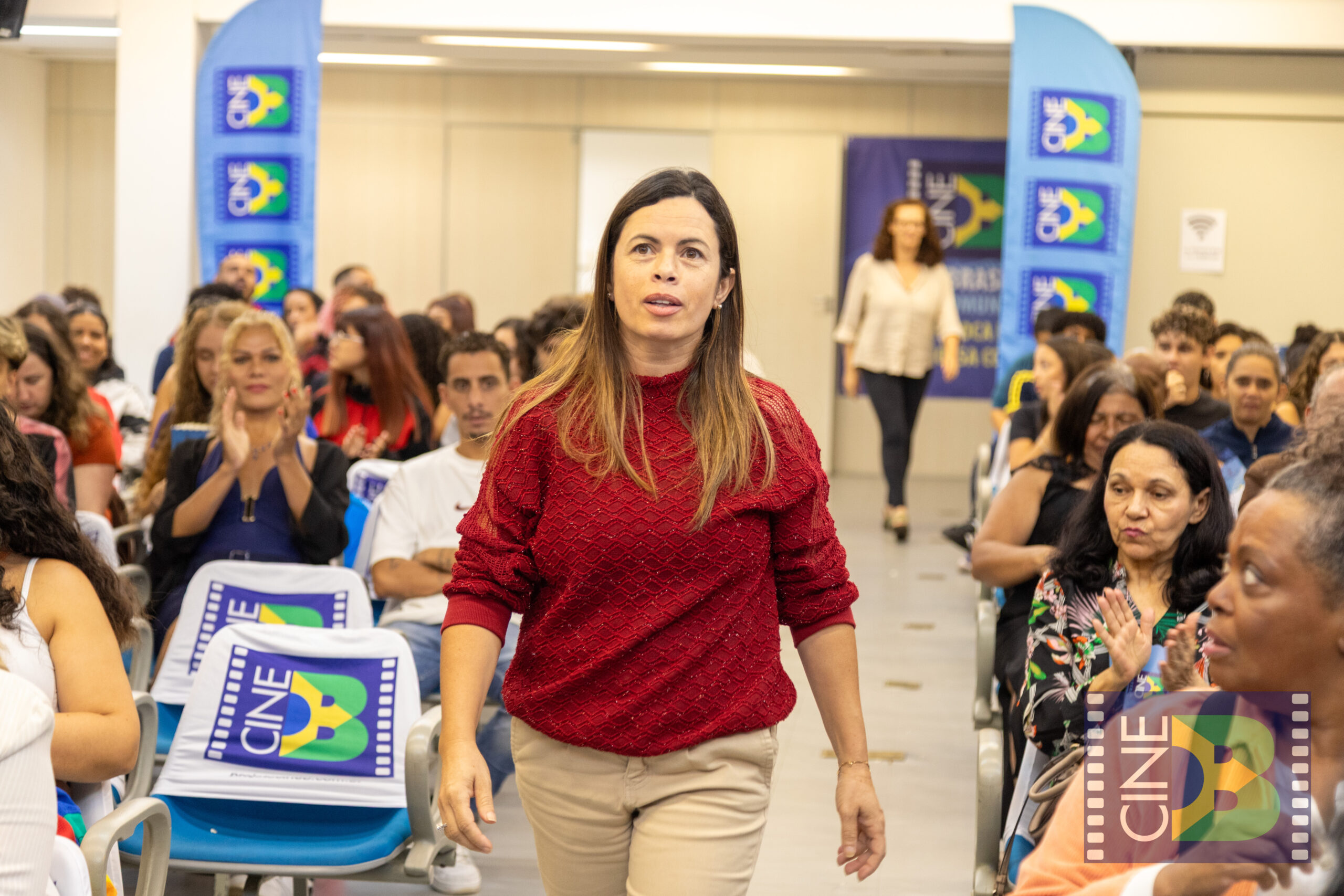 A vice-diretora Elizângela Nunes de Araújo, da Escola Estadual Leopoldo Santana, ressaltou o valor pedagógico do cinema ao abordar temas históricos sensíveis.