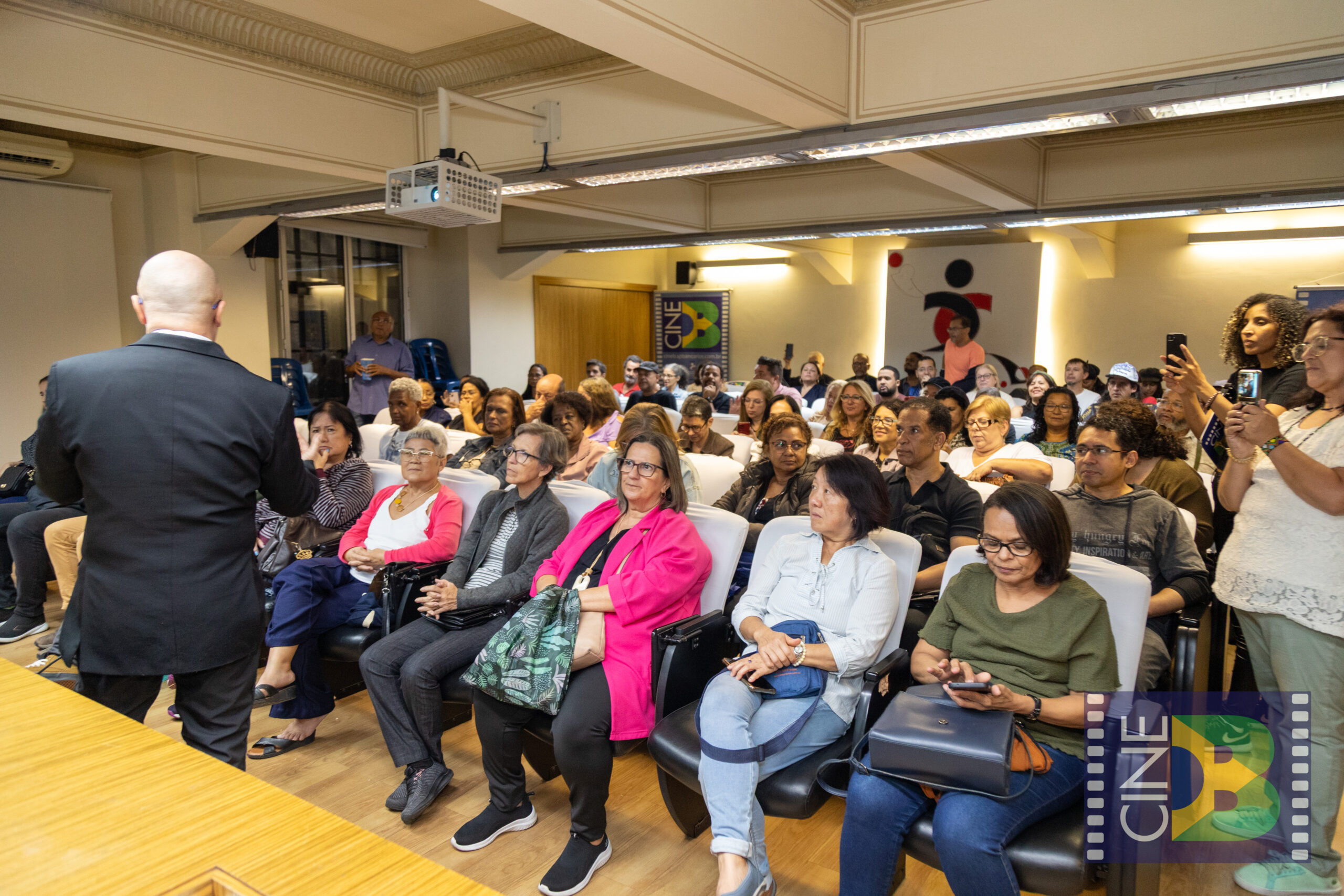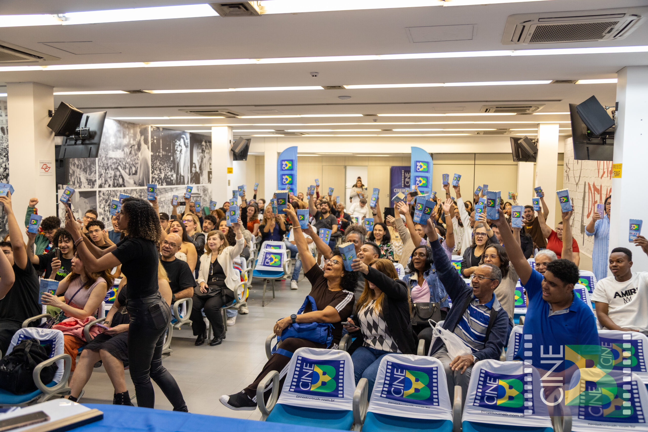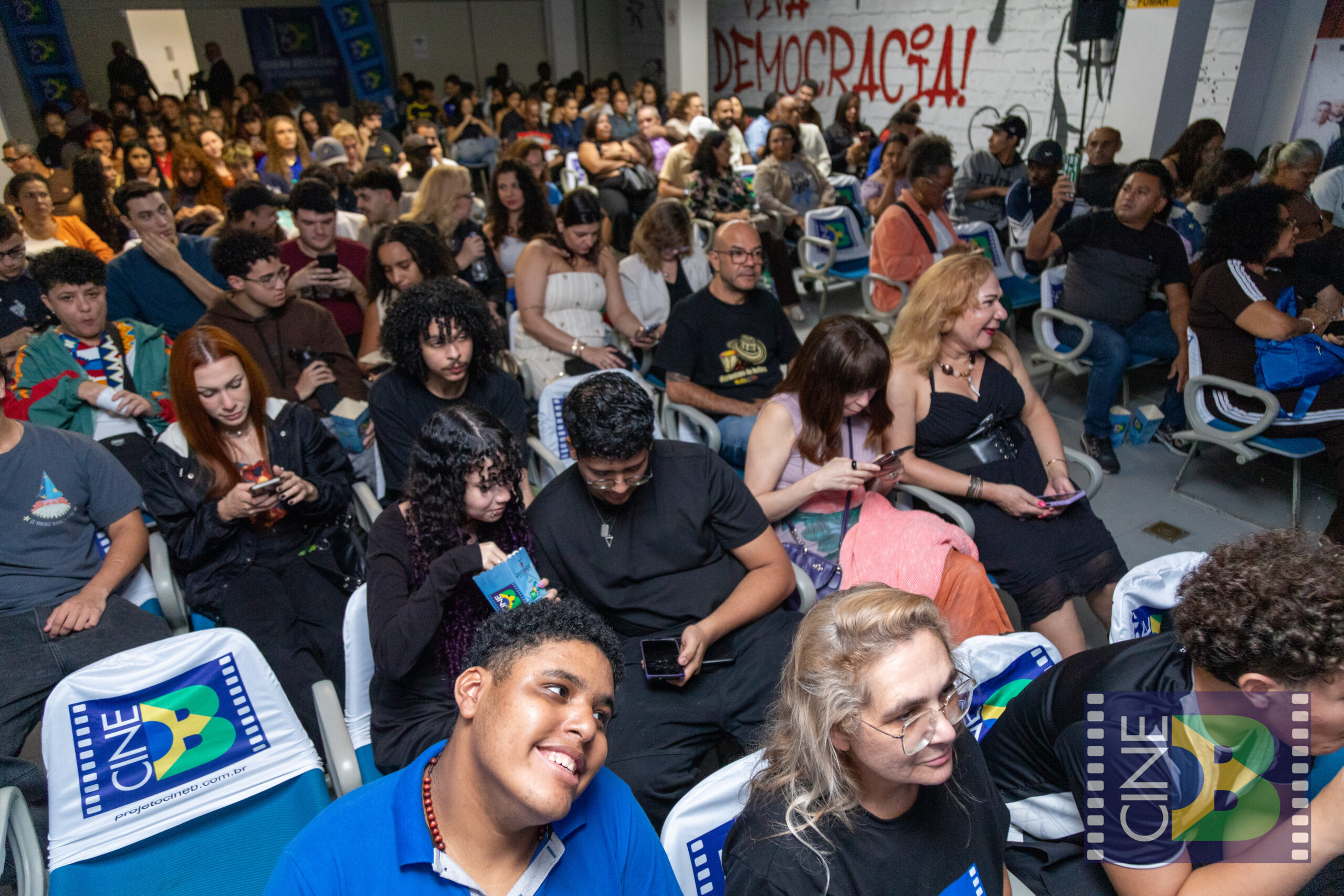 Já no Auditório Azul, 170 pessoas participaram da sessão, com forte presença de estudantes e professores de escolas públicas e instituições de ensino. Estiveram presentes representantes da Escola Estadual Leopoldo Santana, do Capão Redondo, acompanhados pela professora Lili; do CIEJA Brasilândia, com a professora Elaine; da EMEF Duque de Caxias (EJA), com a professora Regina; e da Faculdade das Américas (FAM), com o professor Cristiano Calleari.