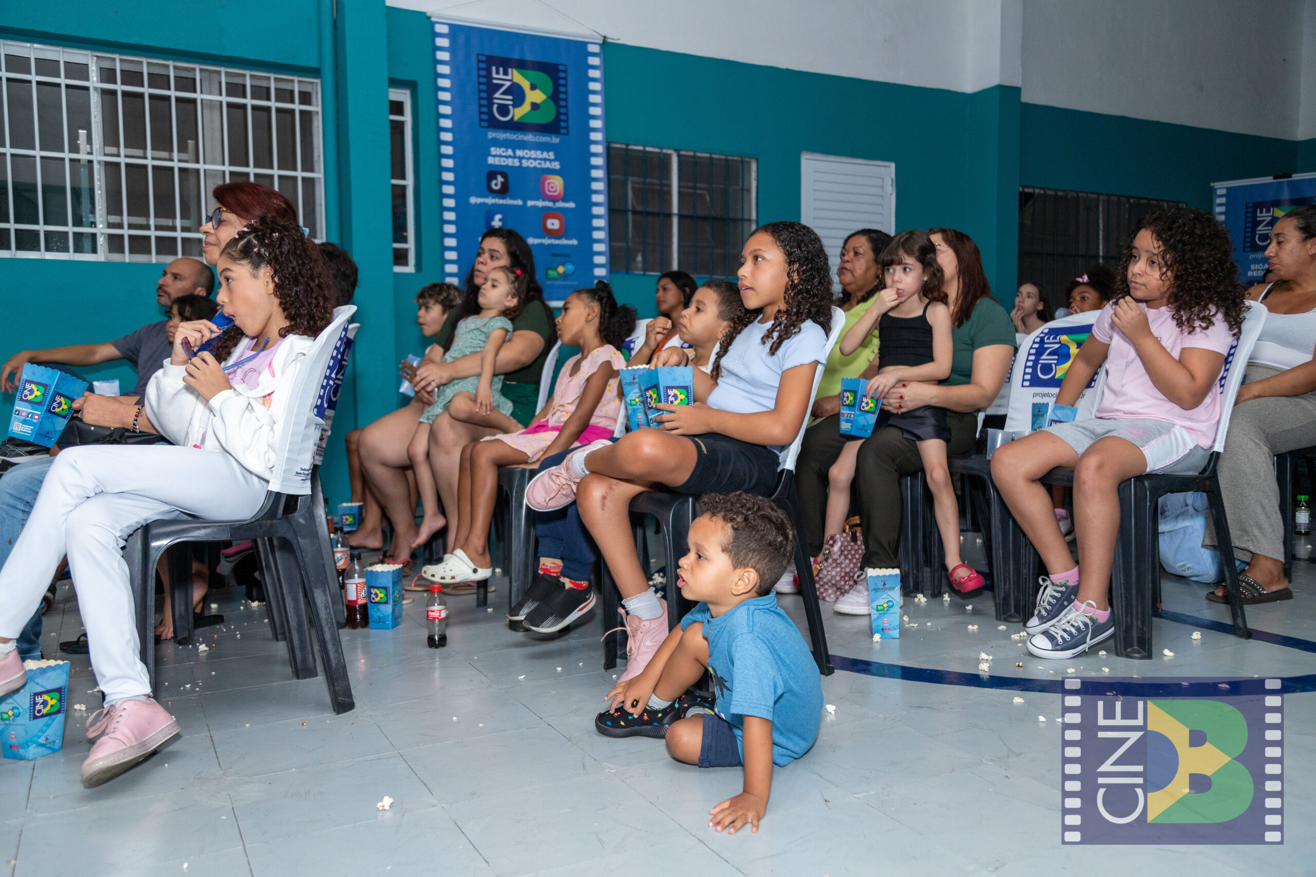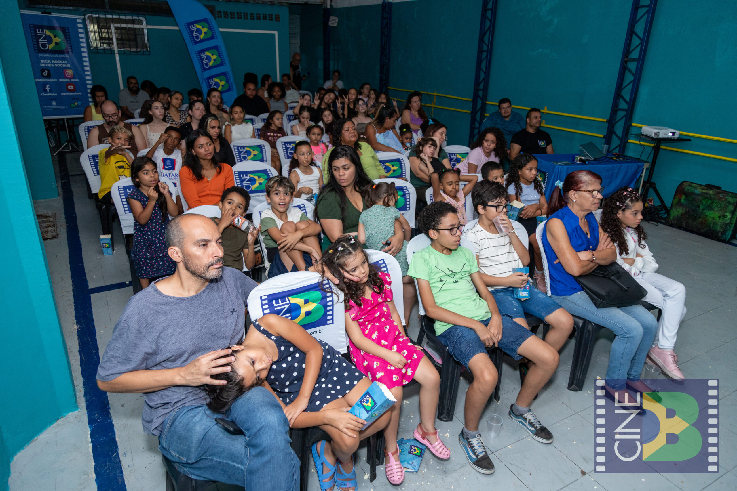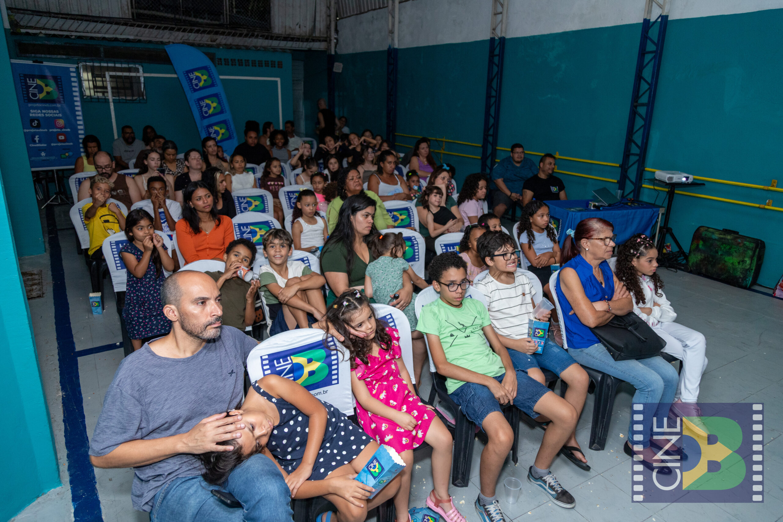 No sábado, 21 de março, o CineB realizou sua primeira sessão no Jaraguá, zona noroeste de São Paulo, levando o cinema brasileiro ao Instituto Ikigai. A exibição aconteceu em uma quadra coberta do espaço e reuniu crianças, famílias e moradores da região, com casa cheia, pipoca quentinha e grande envolvimento do público.
