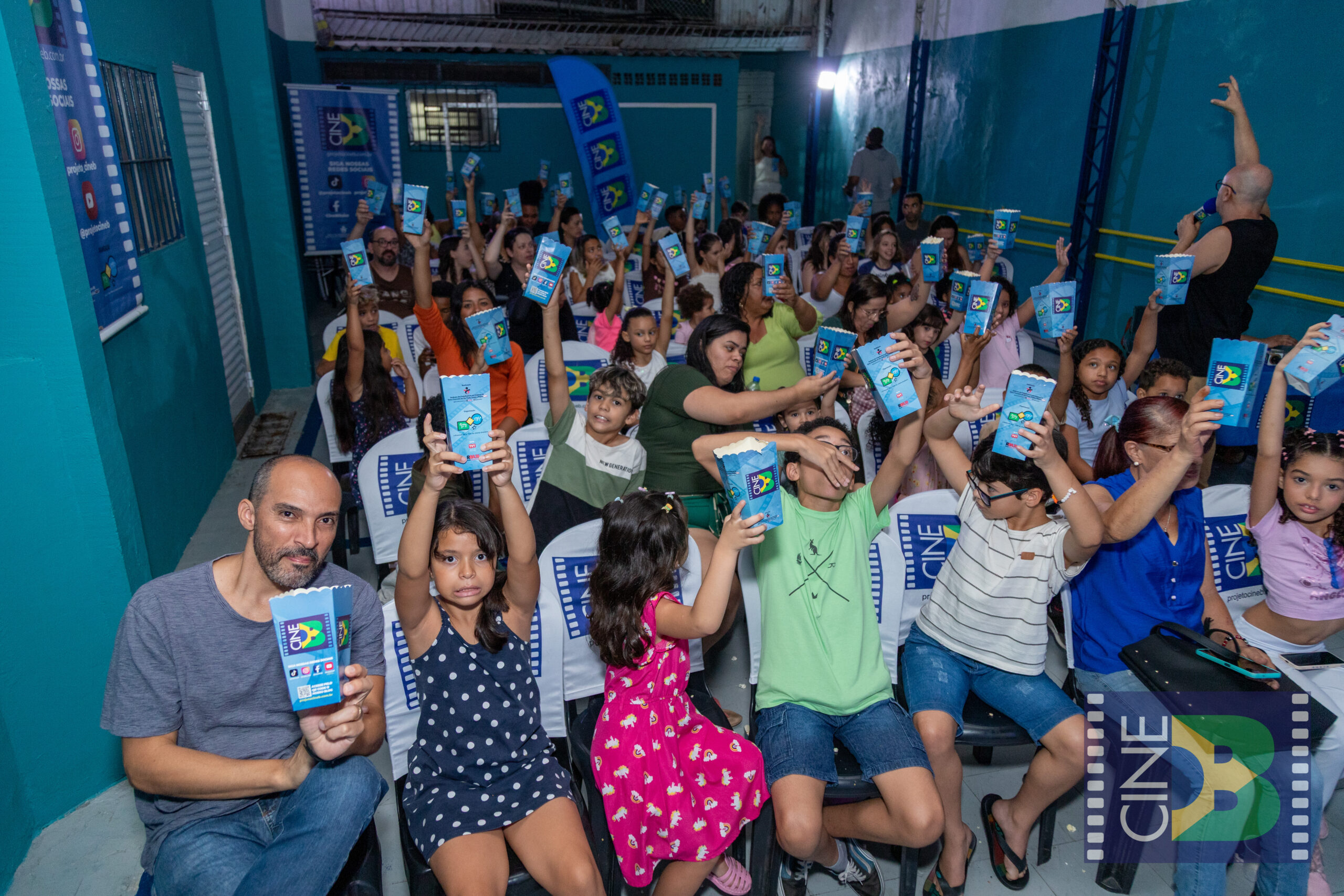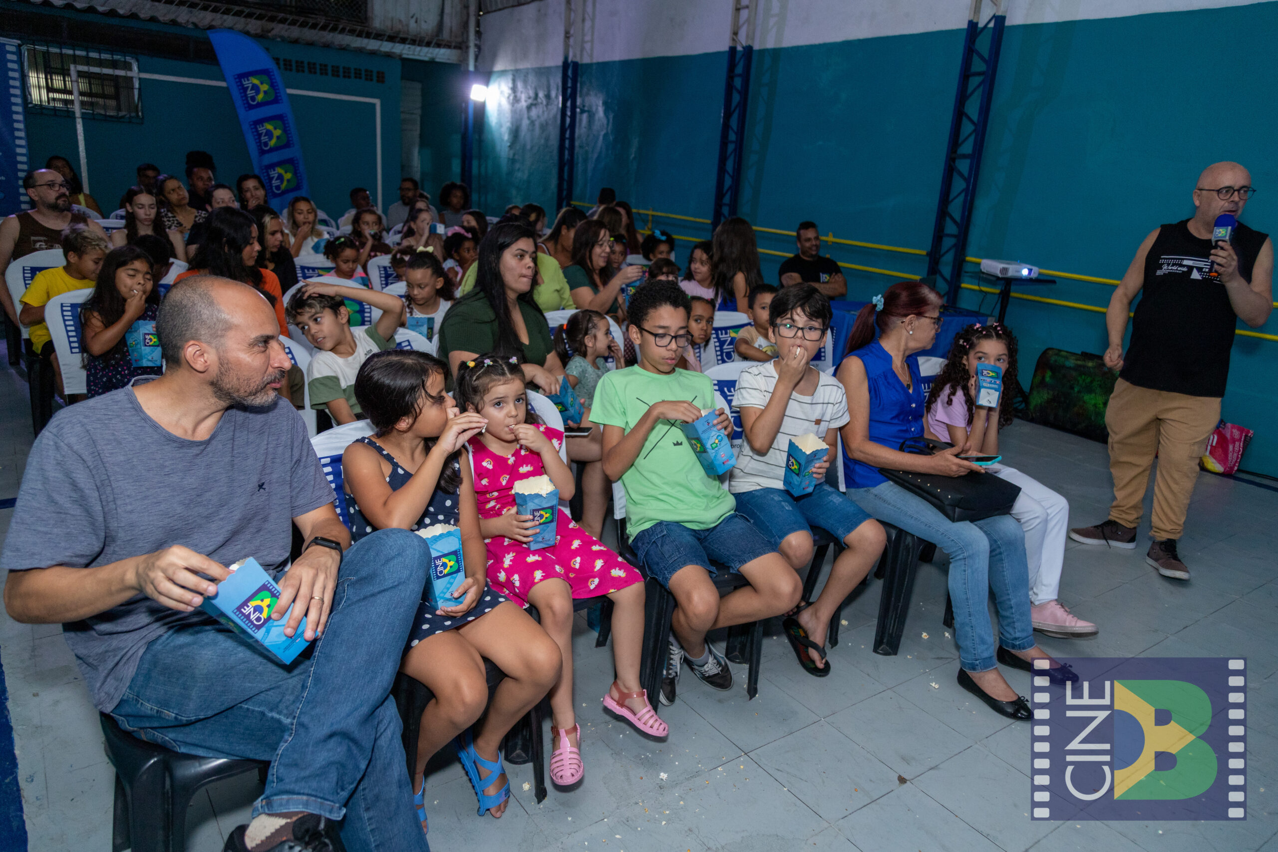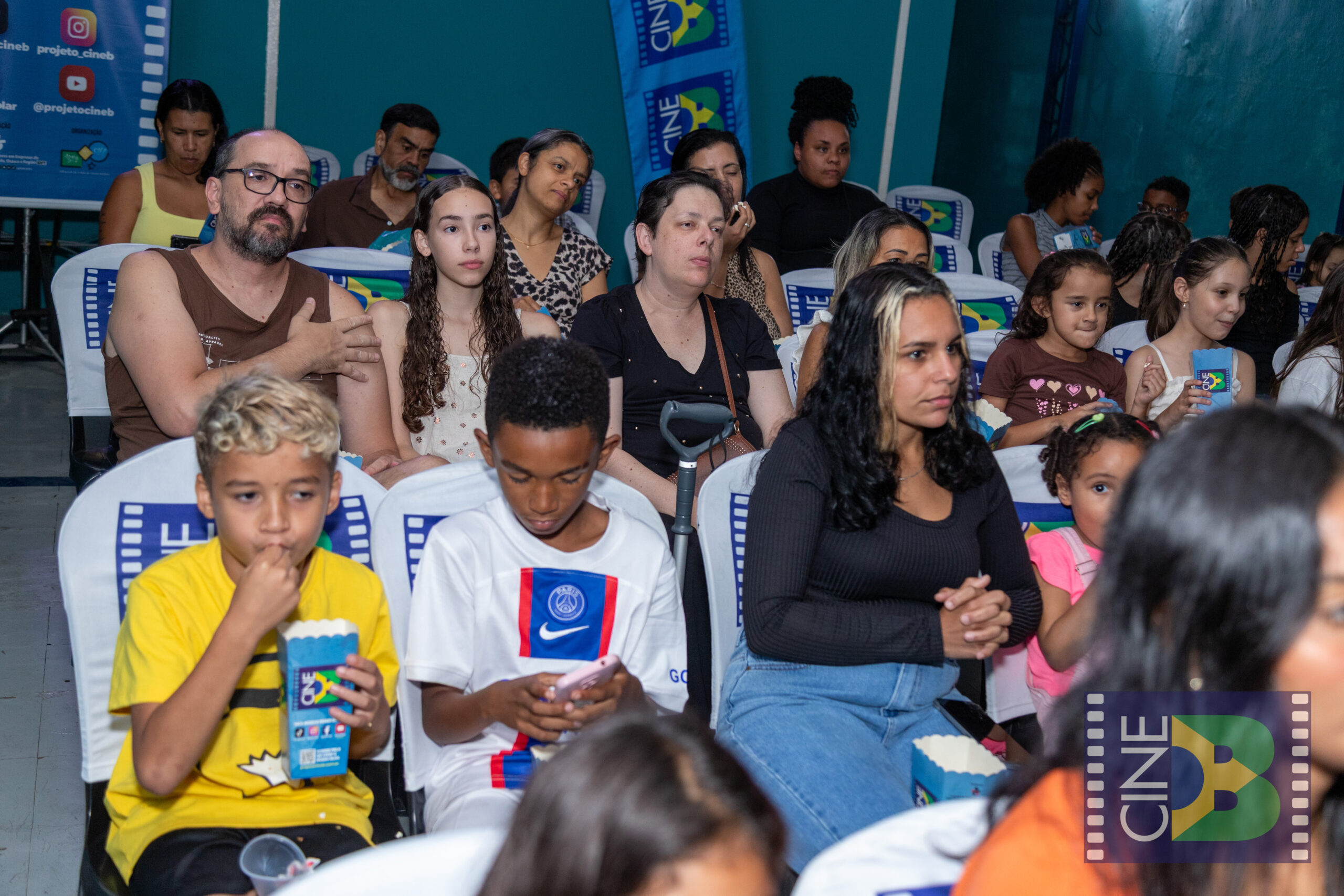 No sábado, 21 de março, o CineB realizou sua primeira sessão no Jaraguá, zona noroeste de São Paulo, levando o cinema brasileiro ao Instituto Ikigai. A exibição aconteceu em uma quadra coberta do espaço e reuniu crianças, famílias e moradores da região, com casa cheia, pipoca quentinha e grande envolvimento do público.