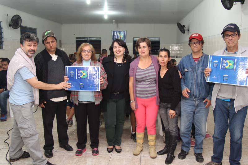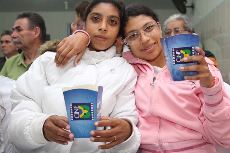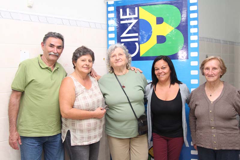 “Hoje eu queria vir aqui no cinema para sair de casa, me distrair, fazer algo diferente”, disse dona Maria Bazzili, de 75 anos, que nunca tinha ido ao cinema. Após ficar viúva, ela resolveu voltar a estudar e, no EJA da EMEF Roquete Pinto. Outras7 pessoas, também alunas do EJA, nunca tinham ido a uma sala de cinema na vida.