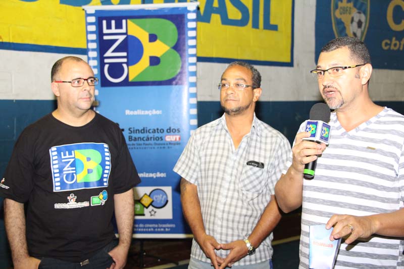 Silverina de Lima, 53 ANOS; Jonas Souza, 21 anos e Taina Gomes, 18 anos, nunca foram ao cinema na vidaJosé Marcelo da Silva, coord. social da AÇÃO, falou sobre o CINEB: "Este projeto roda a periferia de São Paulo e também do interior. Embora a renda do trabalhador tenha melhorado muito nos últimos 12 anos, ainda muitas pessoas não tem condições de irem ao cinema". Ao lado dele , Evangelista do Santos, vice-presidente da AÇÃORepresentantes da AÇÃO COMUNITÁRIA NOVA HELIÓPOLIS,Severina Ferreira e Marigilda Rocha, donas de casa: "Muito bom ver o filme aqui hoje porque a gente sai de casa e distrai a cabeça", disse dona Severina"Achei ótimo ver vários curtas porque a gente aprende muitas coisas diferentes, como a história do Pelé e do Jegue no Nordeste" disse Fábio Silva, que levou as duas filhas ao cinemaCamisetas sorteadas para os presentes